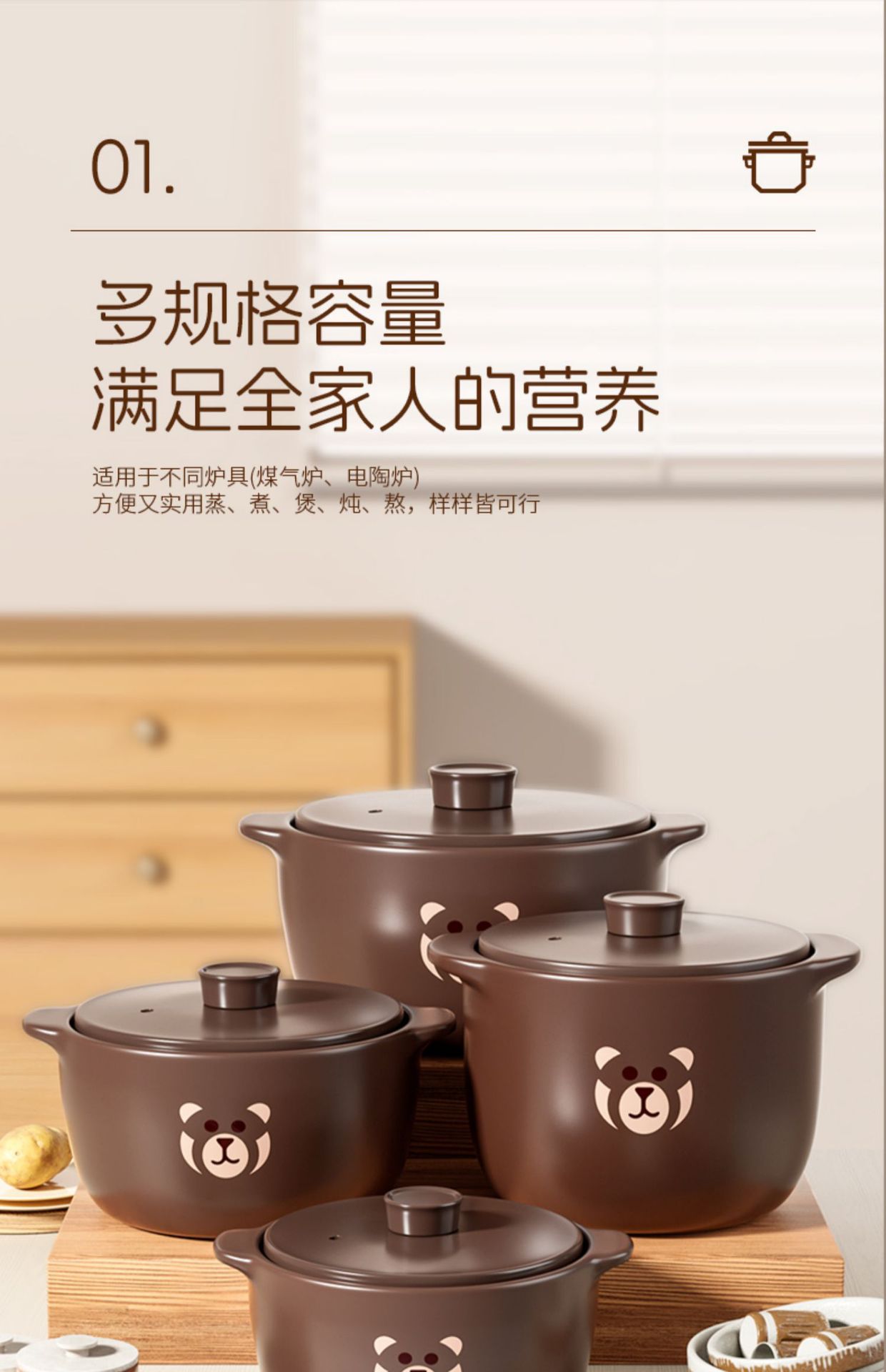 【古法细熬,汤香浓味悠长】砂锅炖锅 家用燃气小号陶瓷煲汤锅 耐高温瓦罐煤气灶专用煲仔饭沙锅-QQ