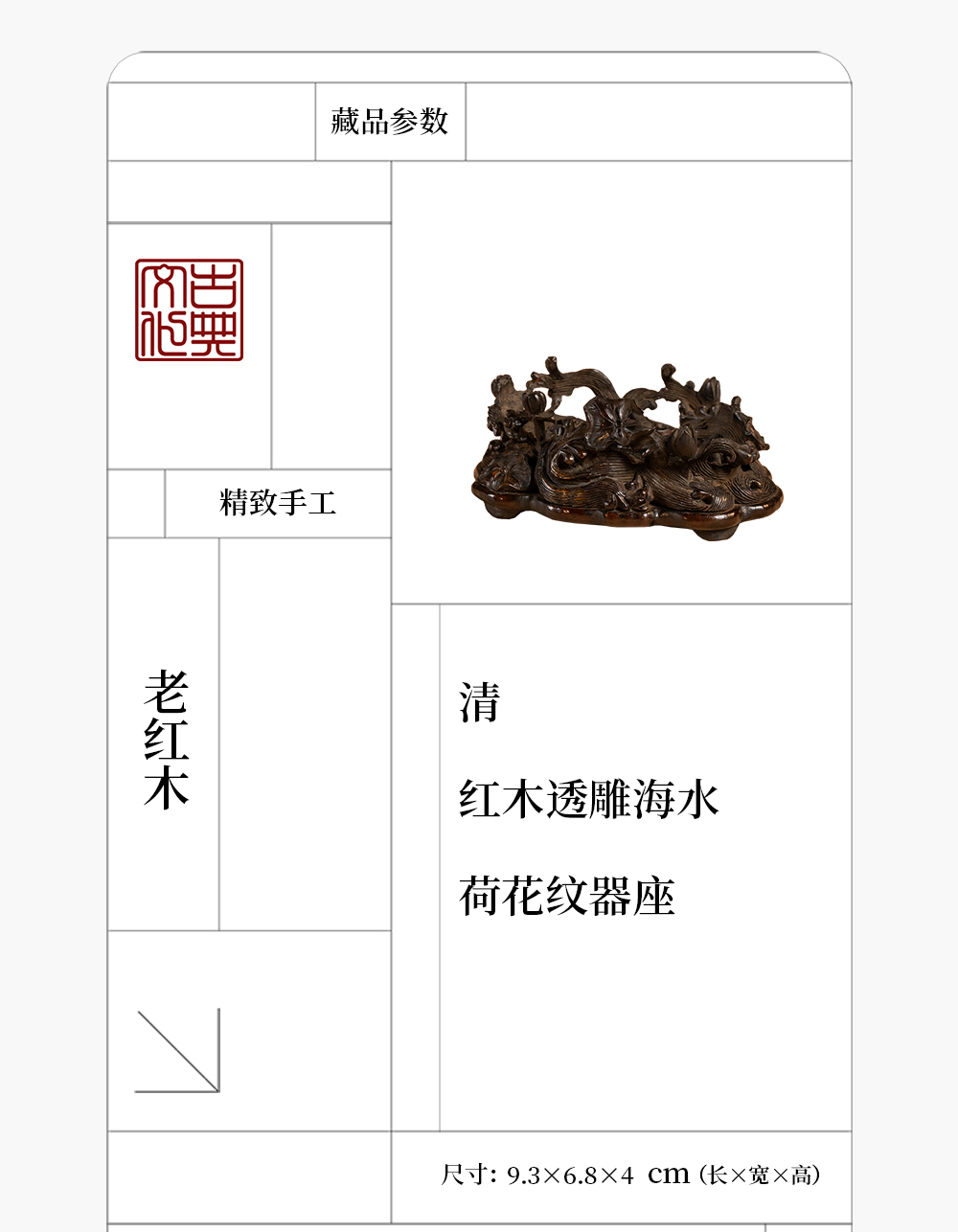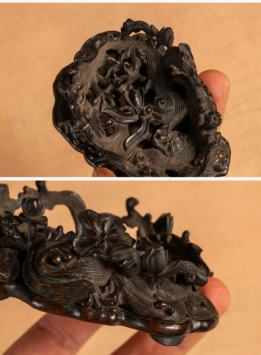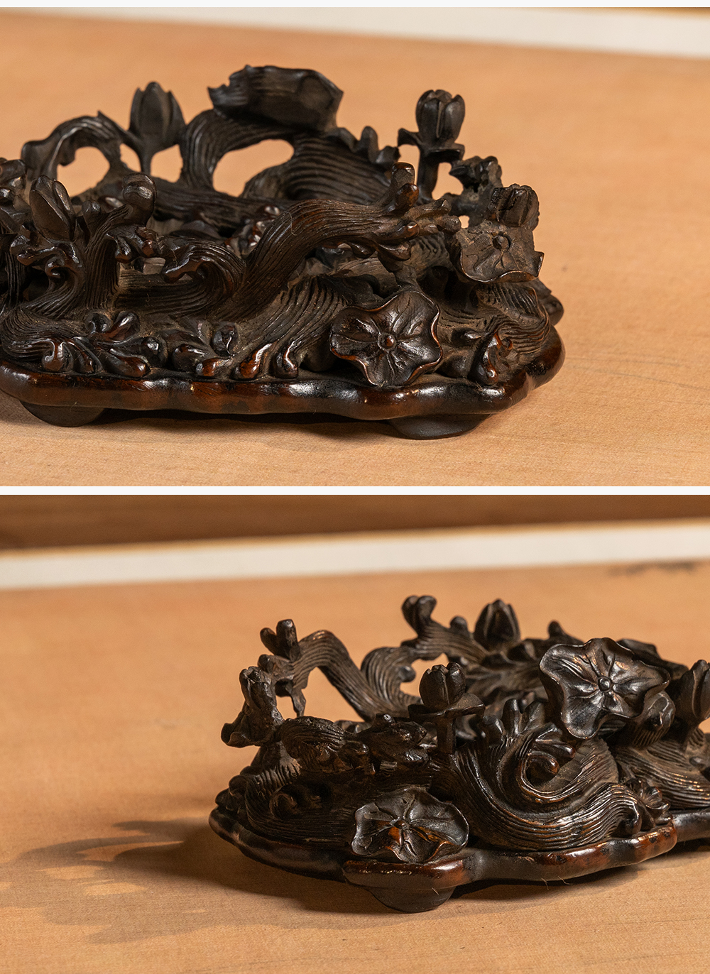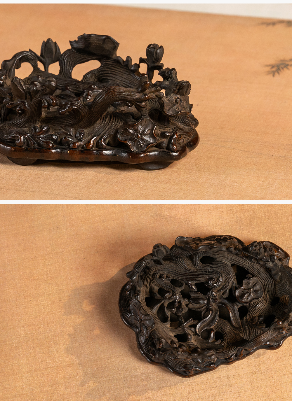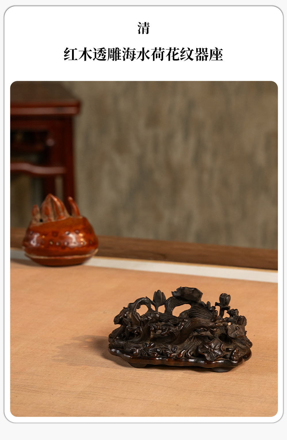 清 红木透雕海水荷花纹器座