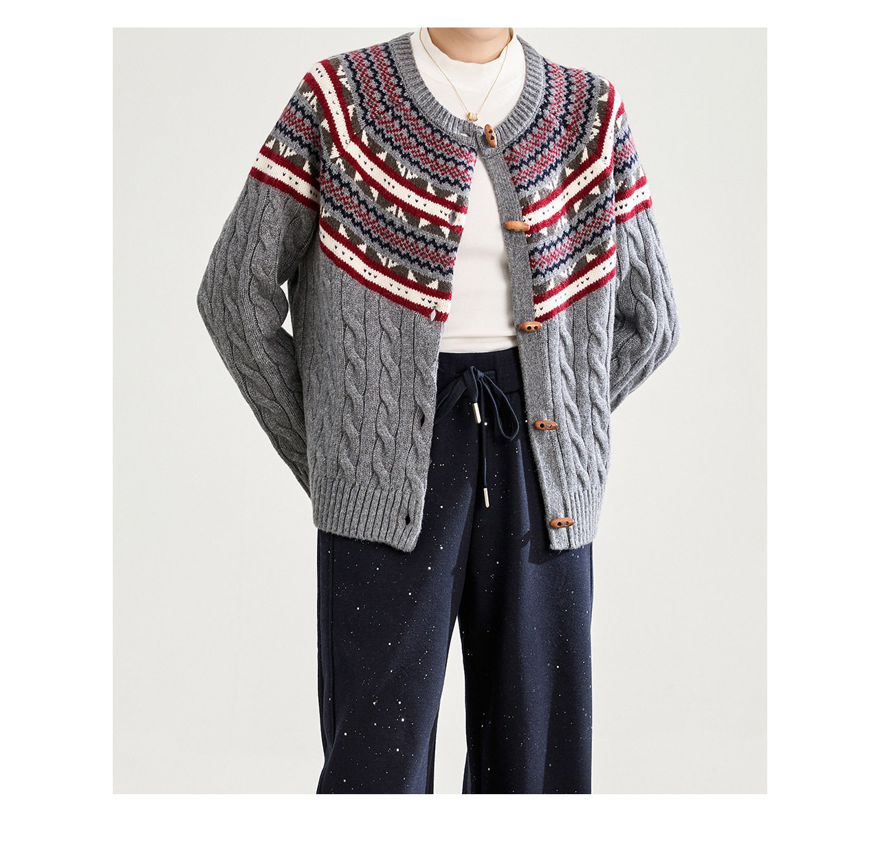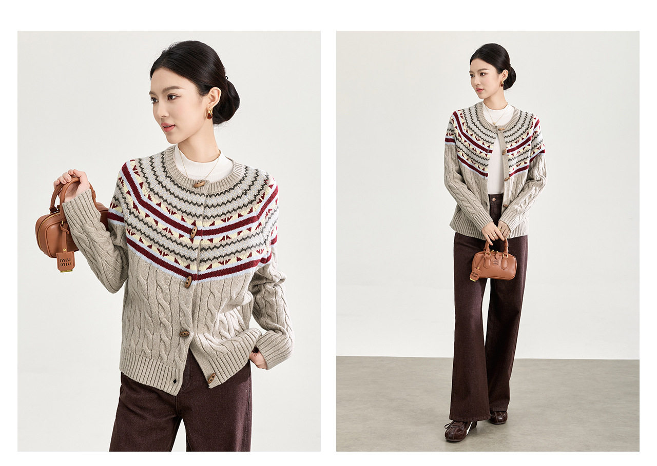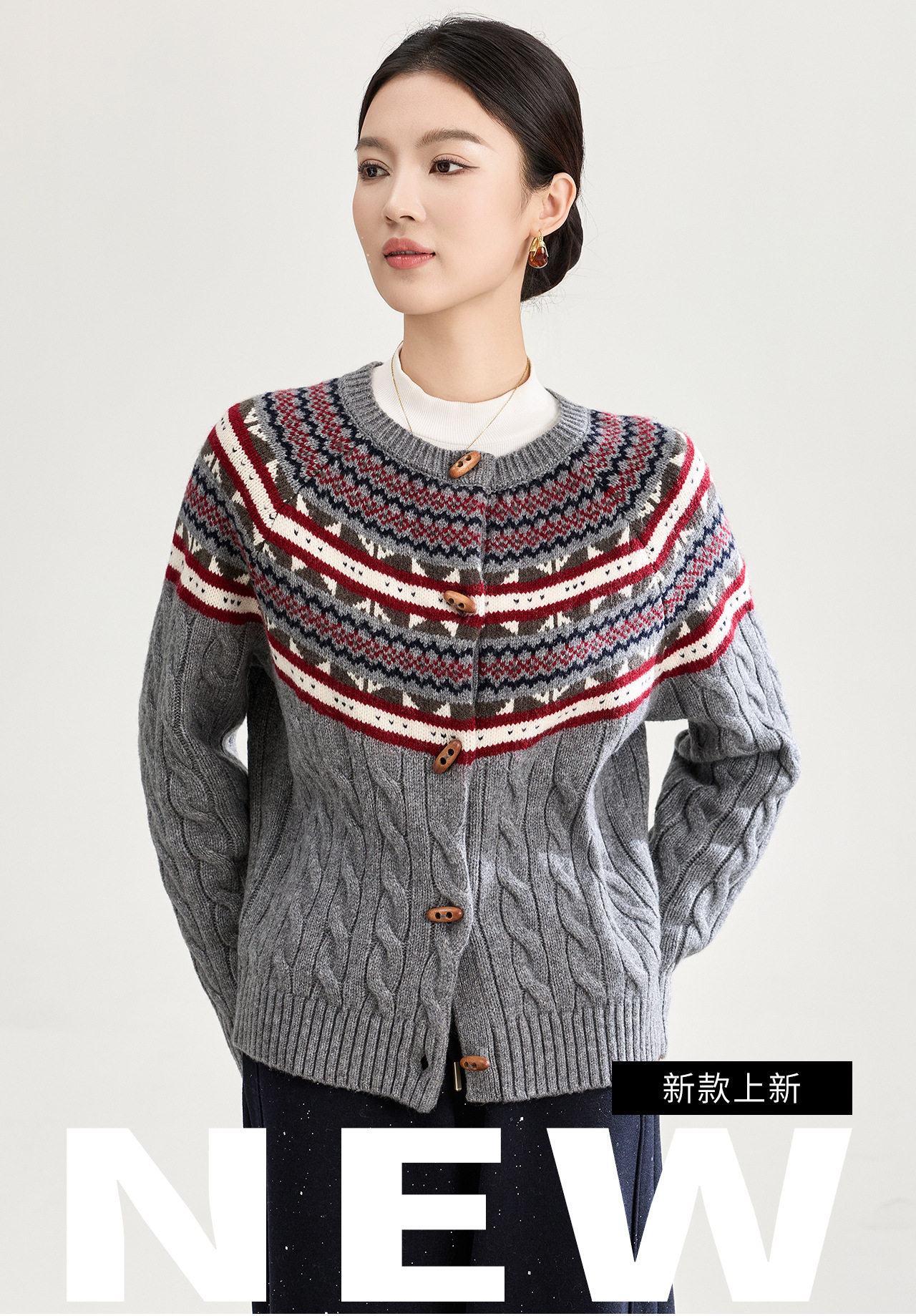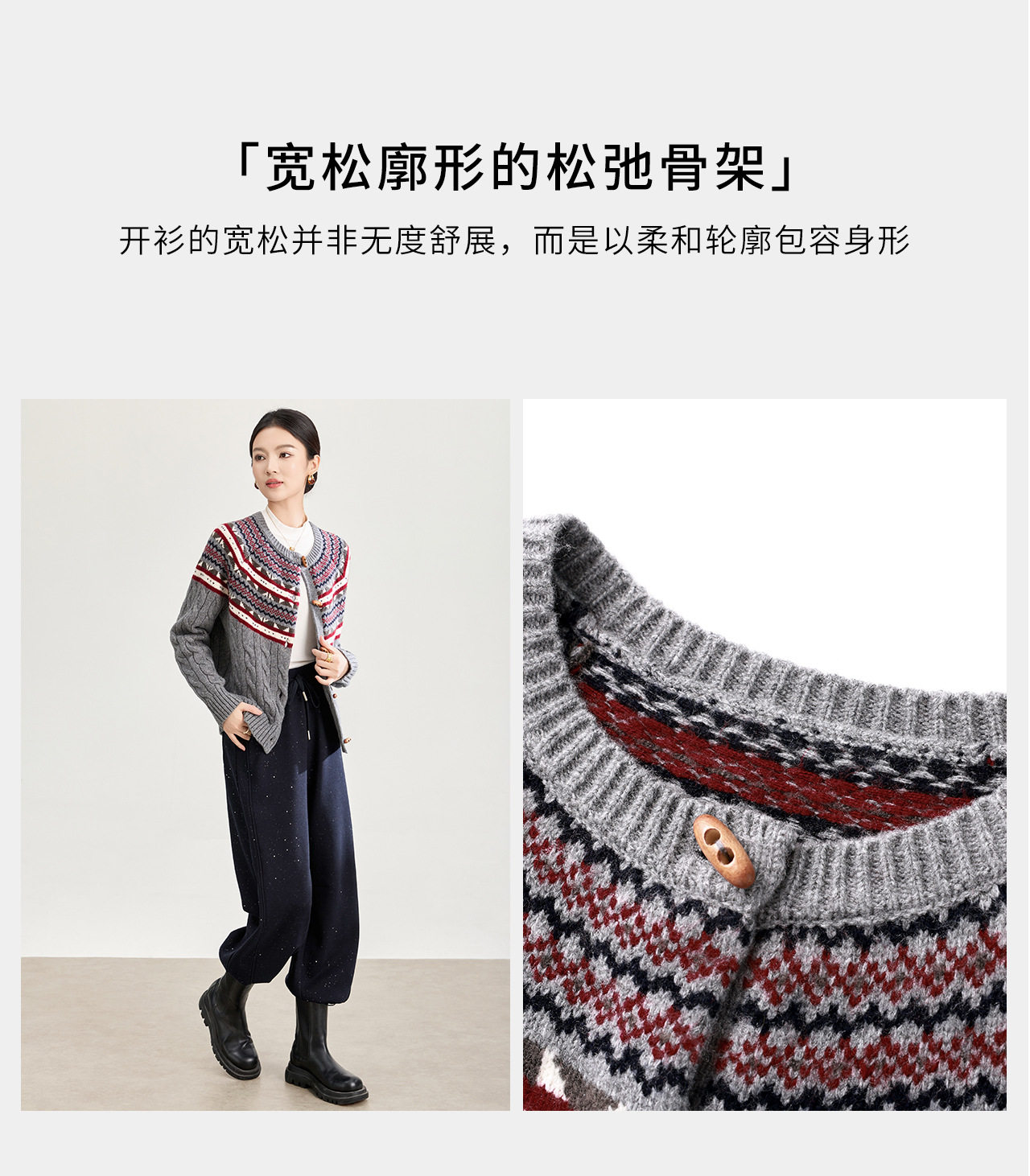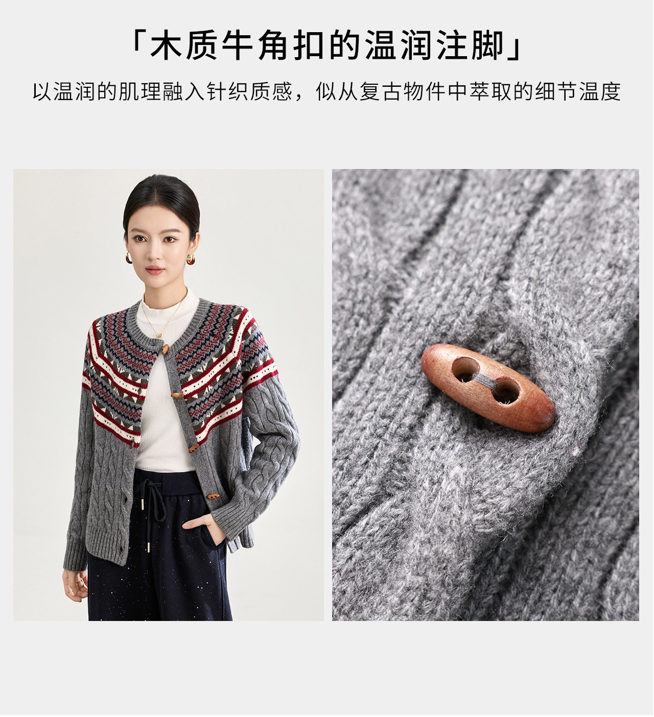 「高货wl」全新升级【铂金会员266/天猫359/差价93】(03859)洛诗琳复古立体织花羊毛开衫2025秋冬加厚针织毛衣外套女