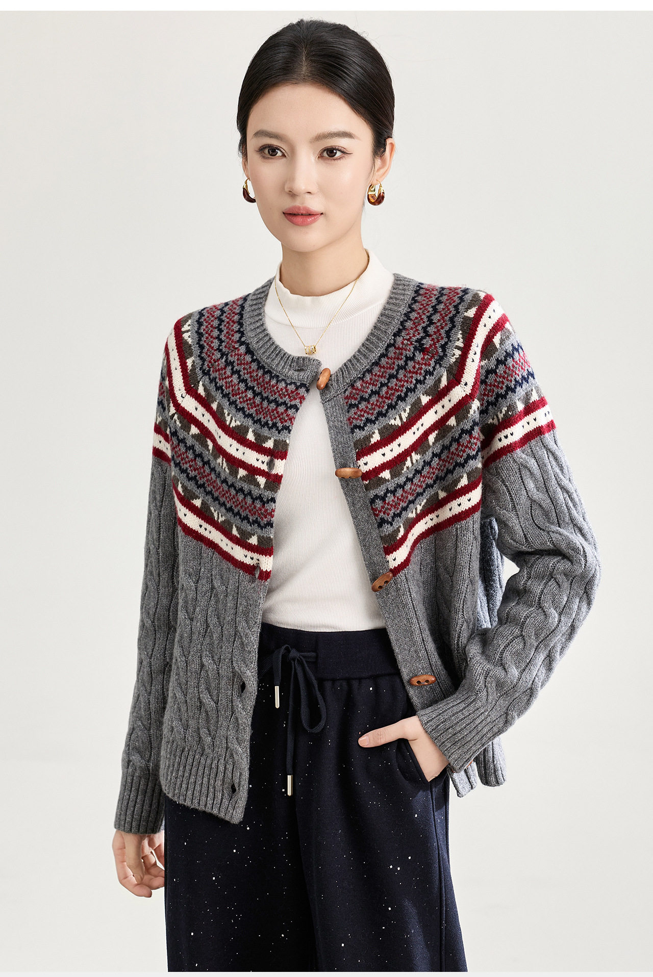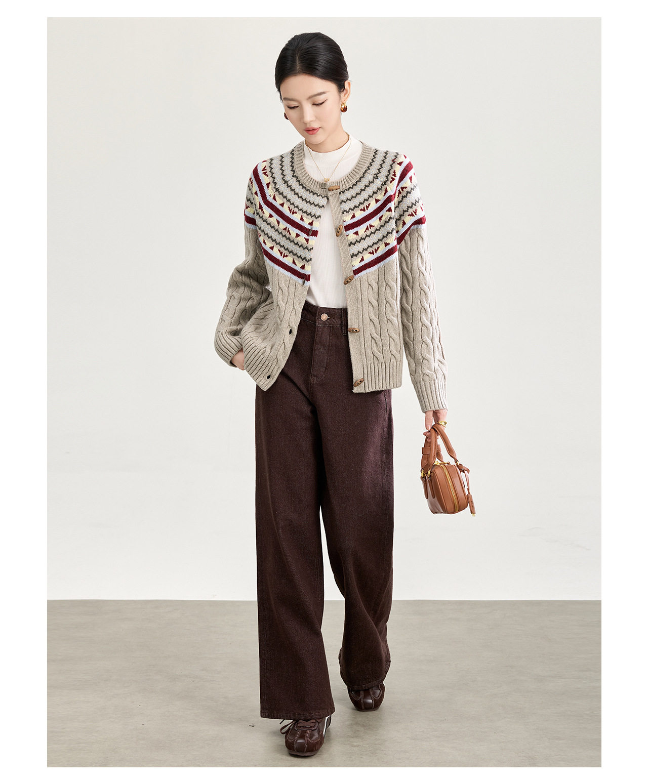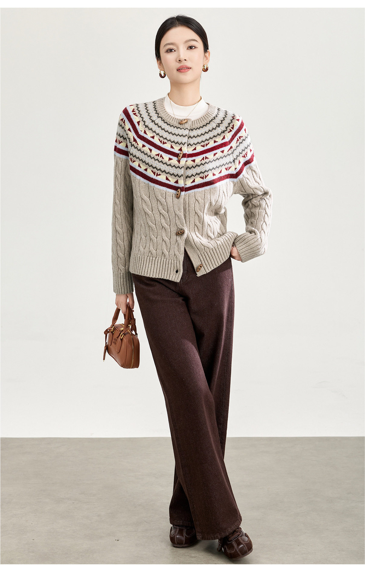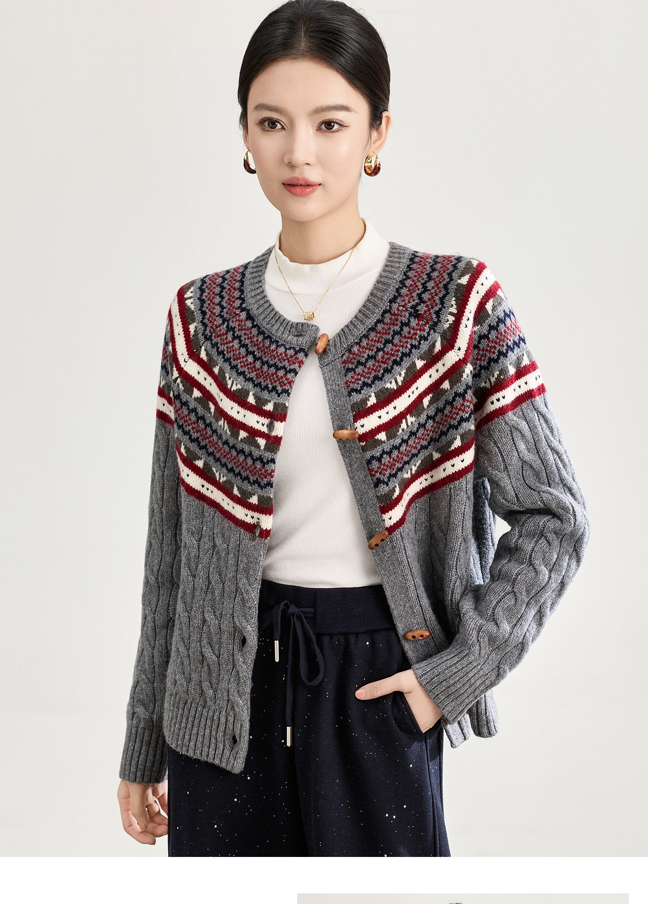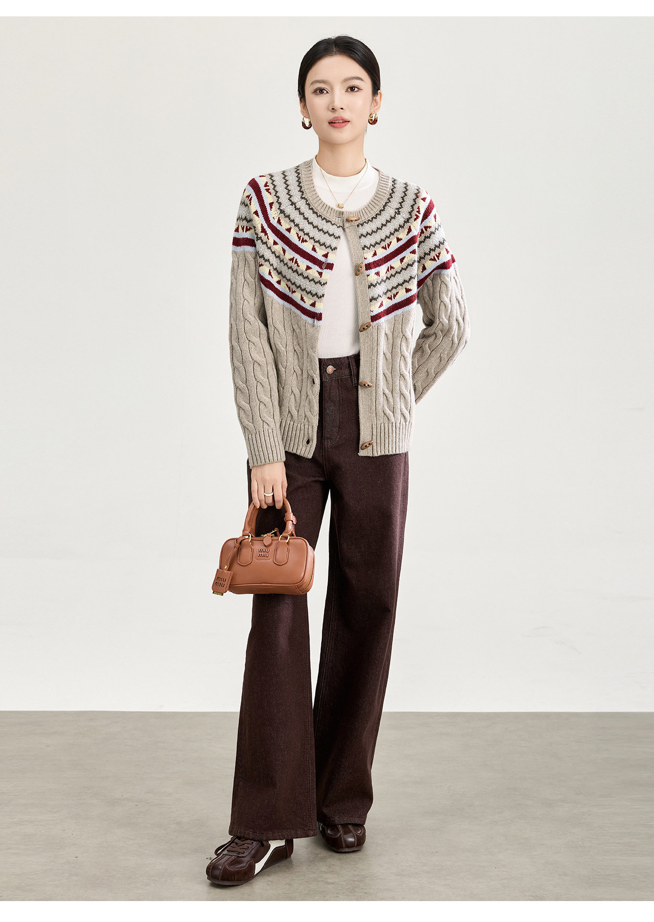 「高货wl」全新升级【铂金会员266/天猫359/差价93】(03859)洛诗琳复古立体织花羊毛开衫2025秋冬加厚针织毛衣外套女