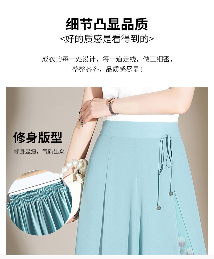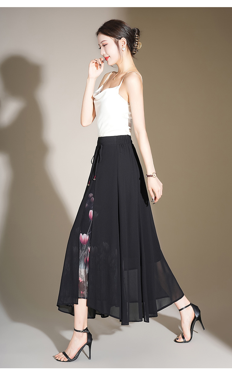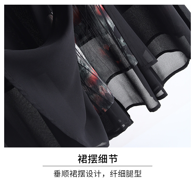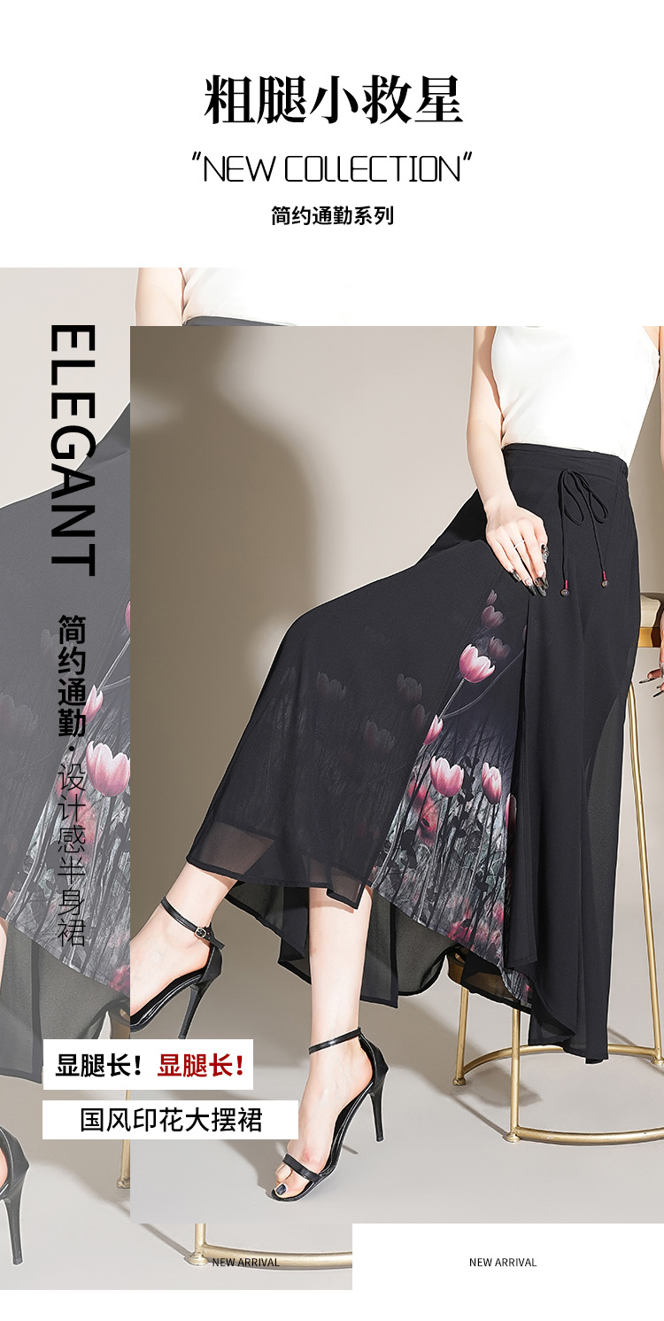 系带国风印花大摆裙,雪纺半身裙开衩裙子MYX-MTYR-2412-Y