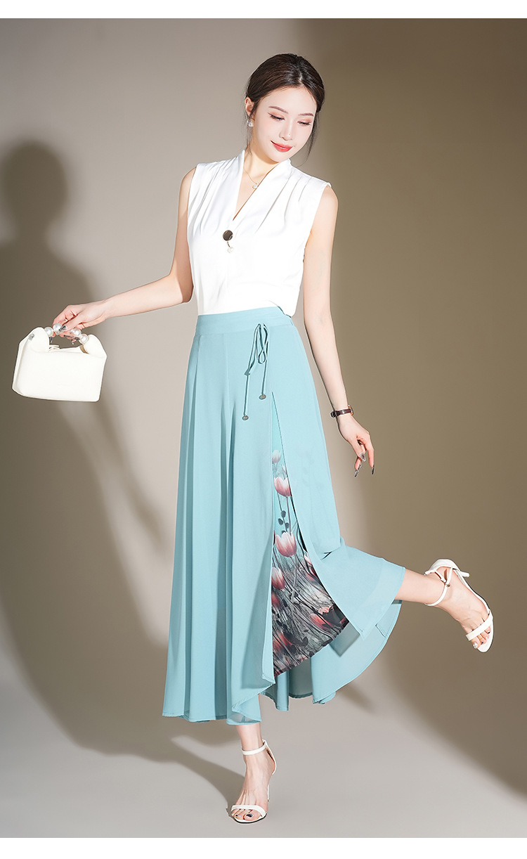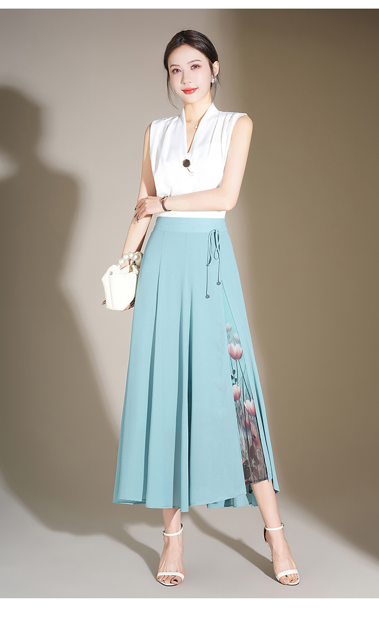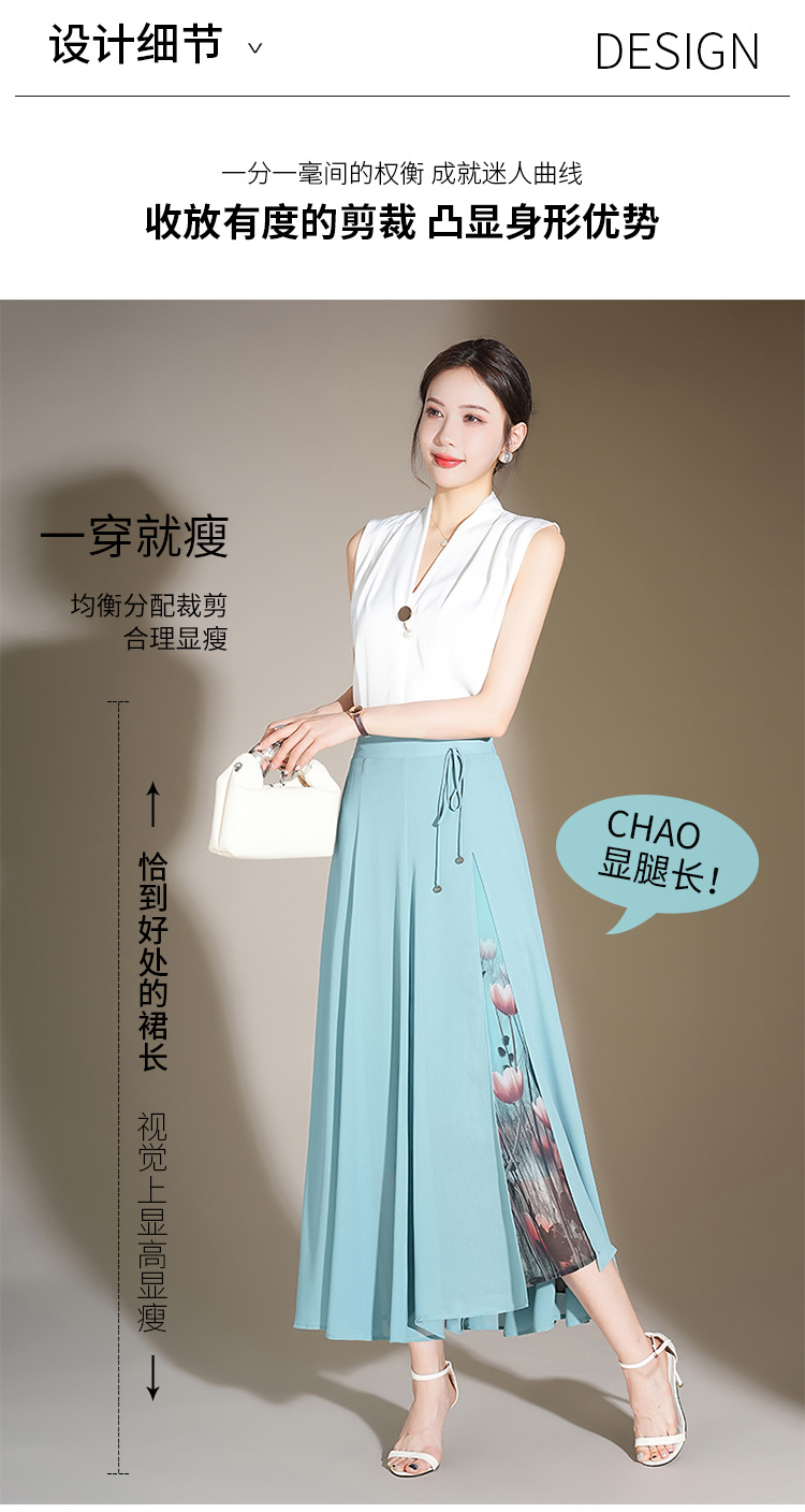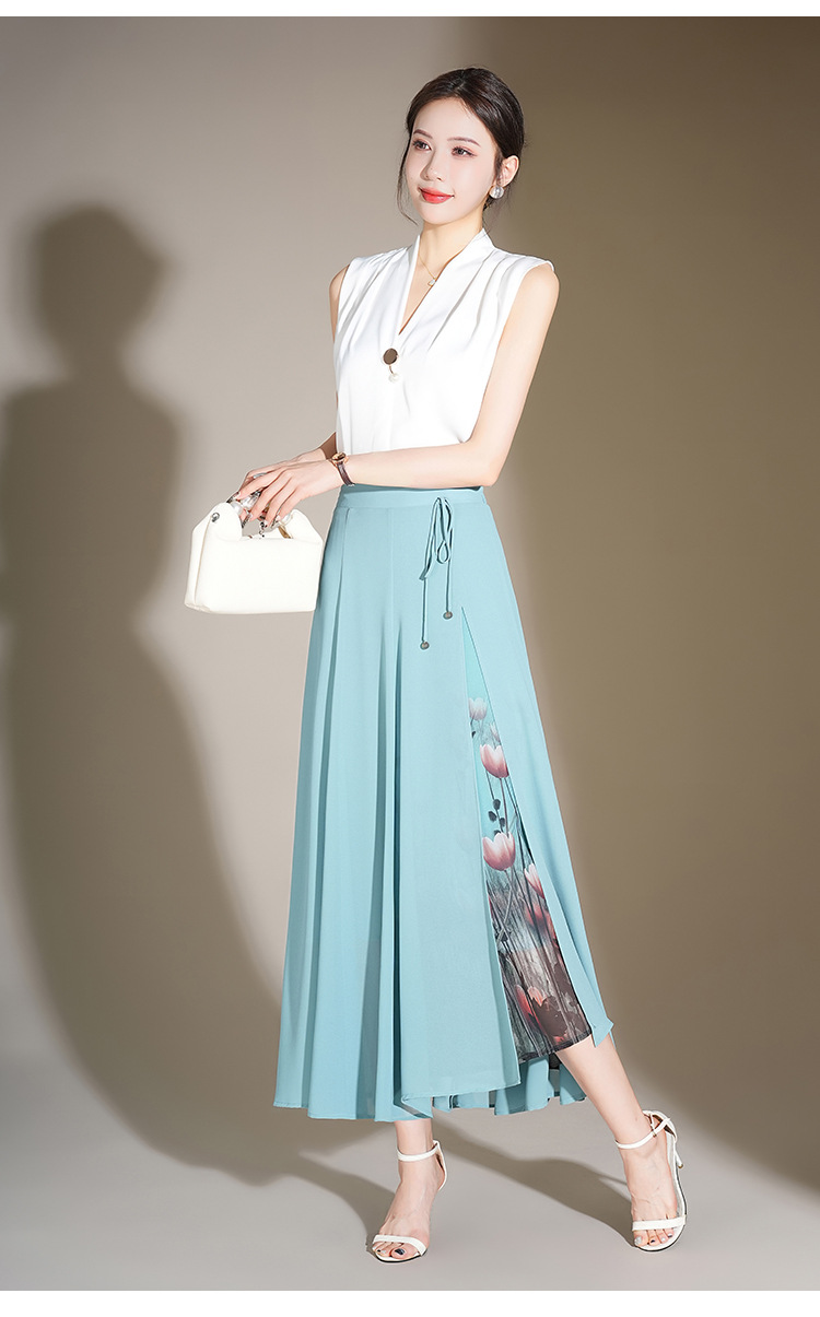 系带国风印花大摆裙,雪纺半身裙开衩裙子MYX-MTYR-2412-Y