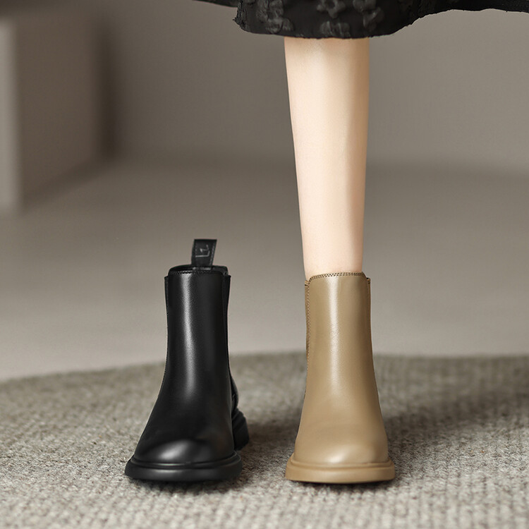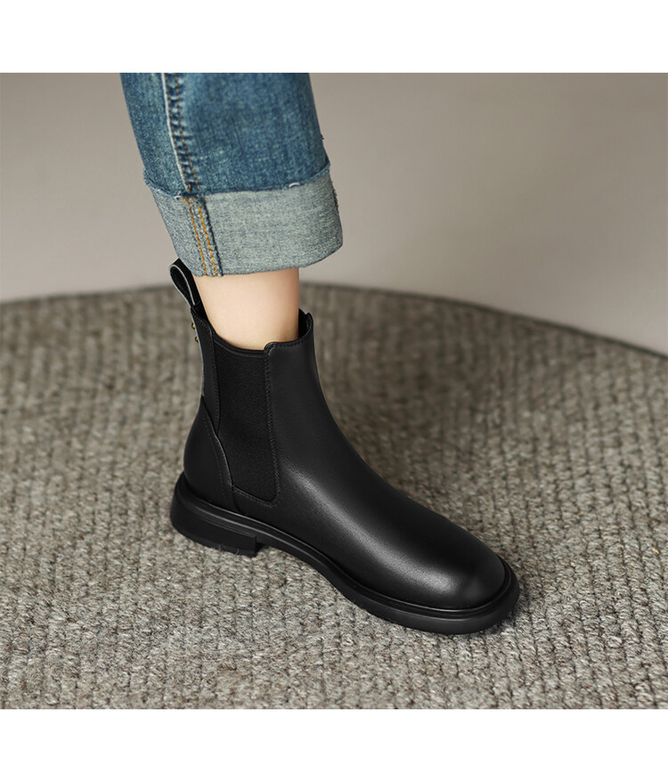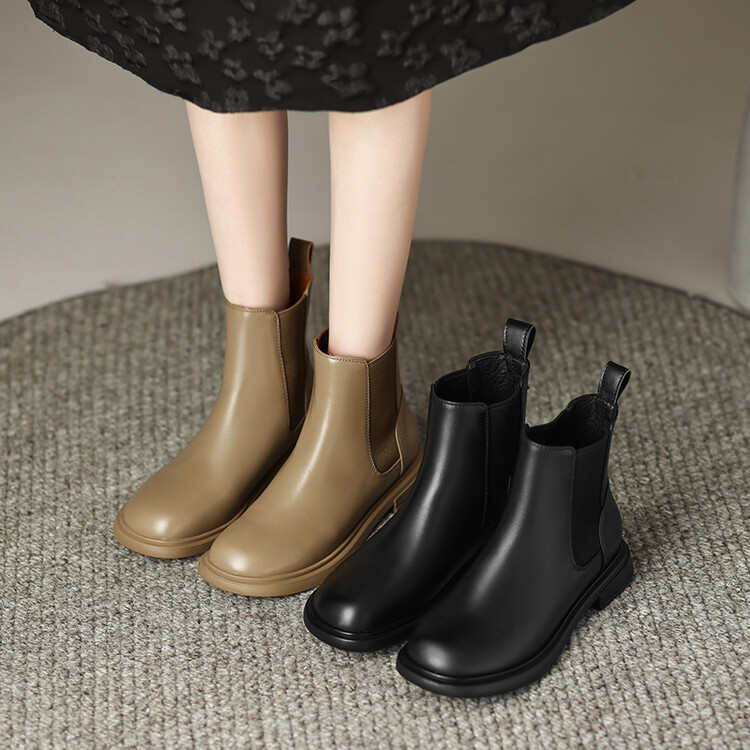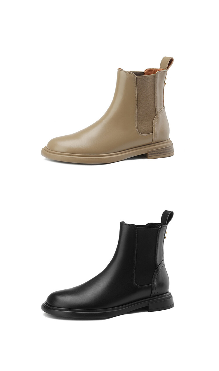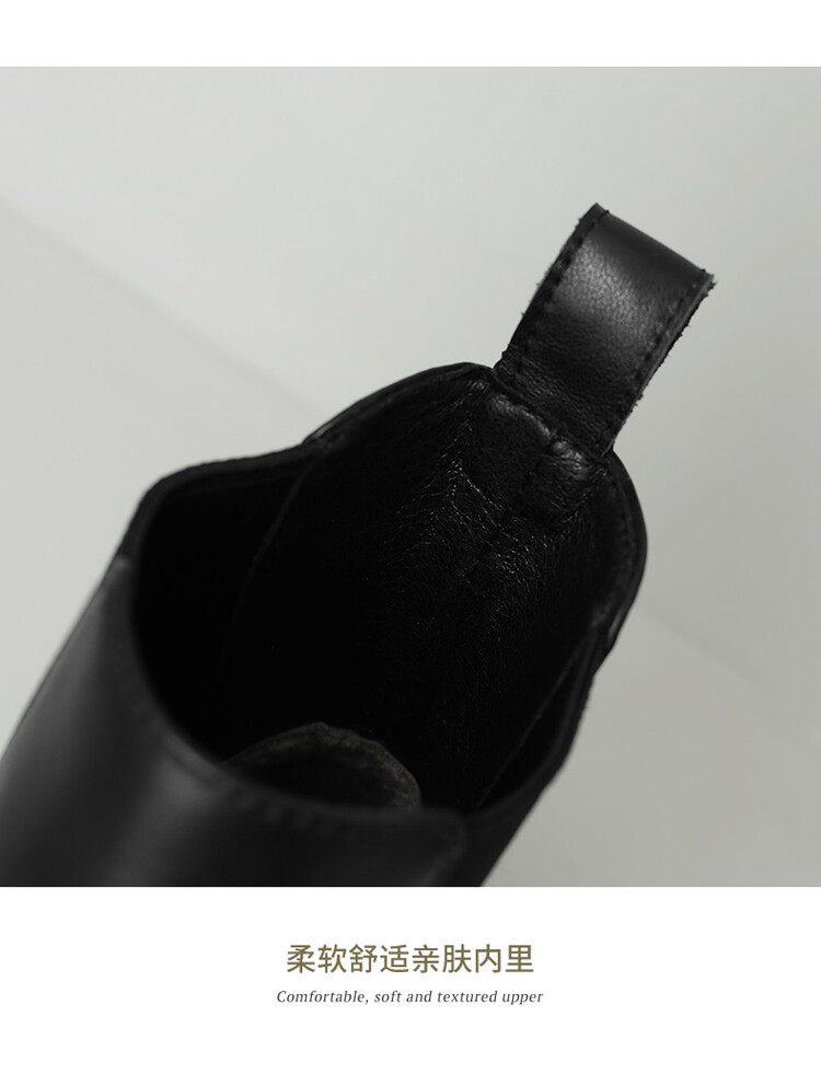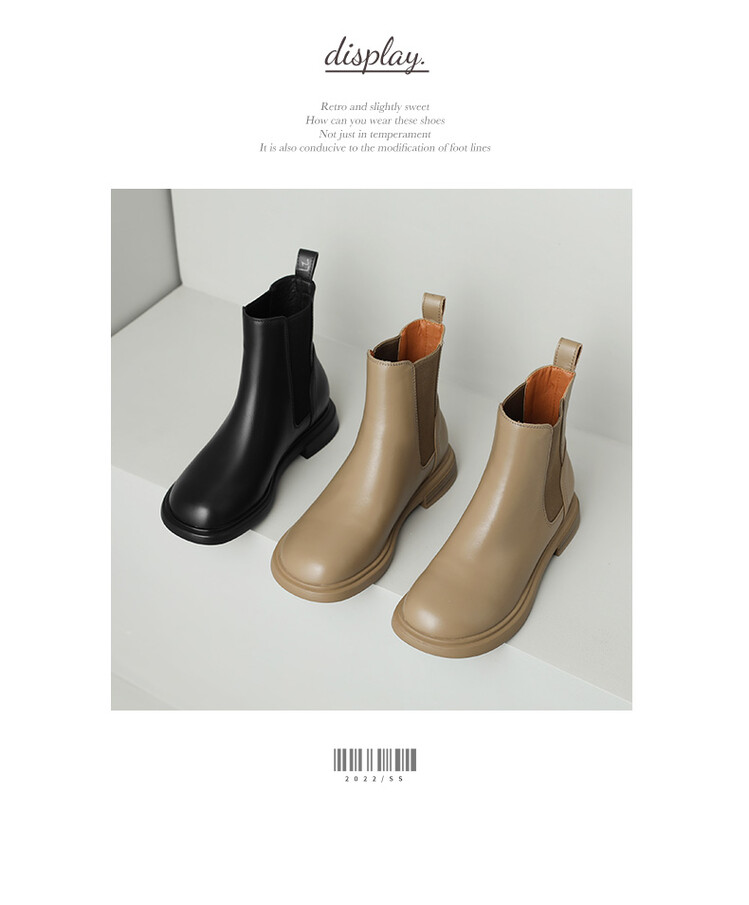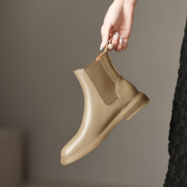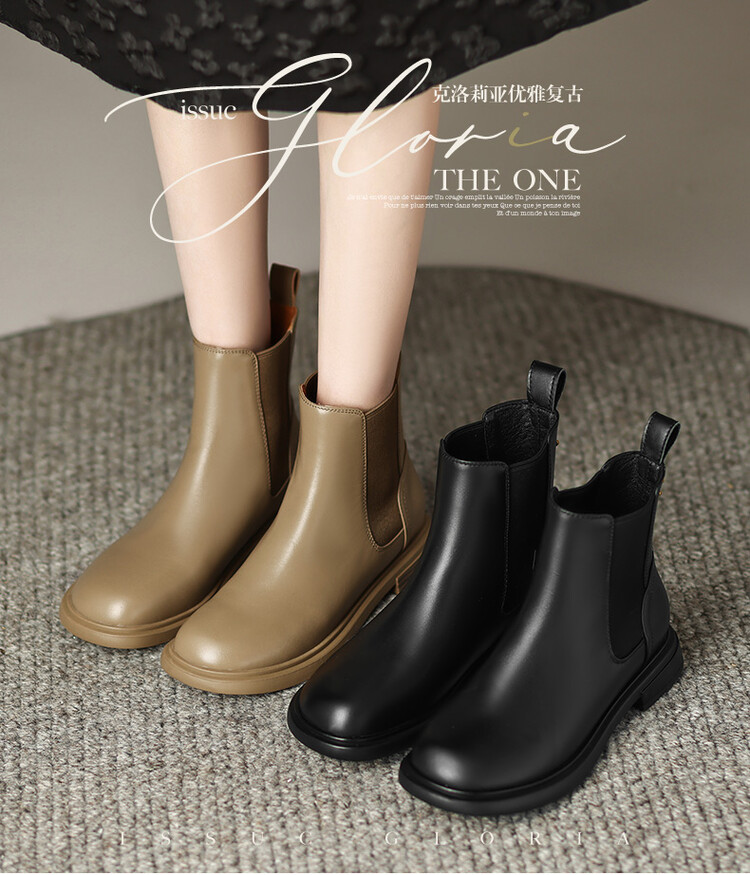 【预售5天】英伦风复古圆头低跟拼接切尔西靴冬季新款牛皮套筒简约短筒靴KYD&5730