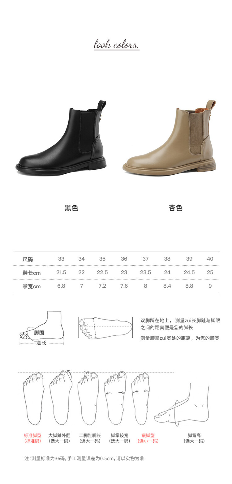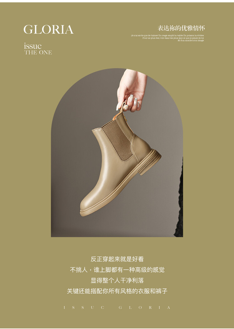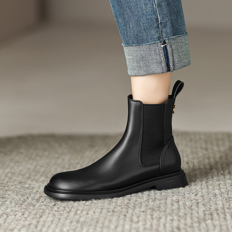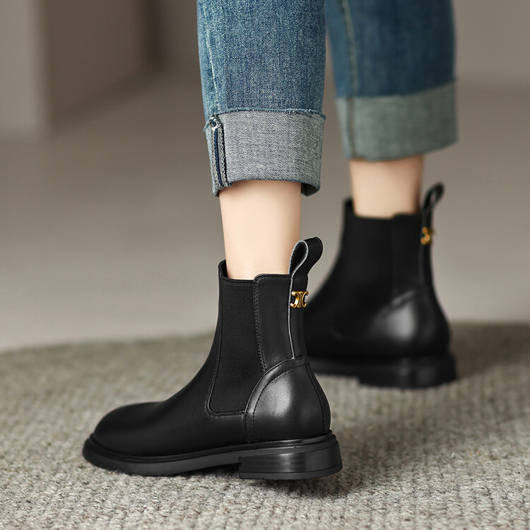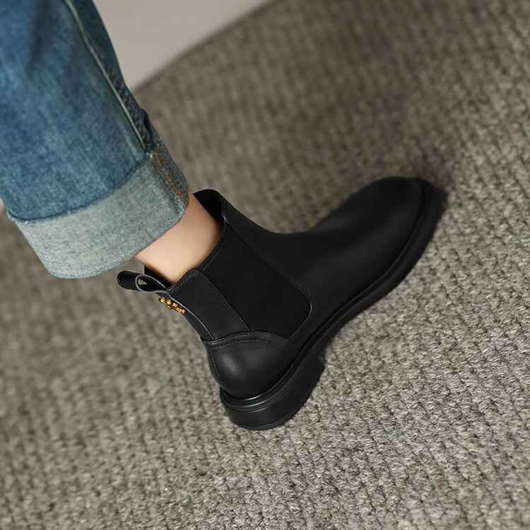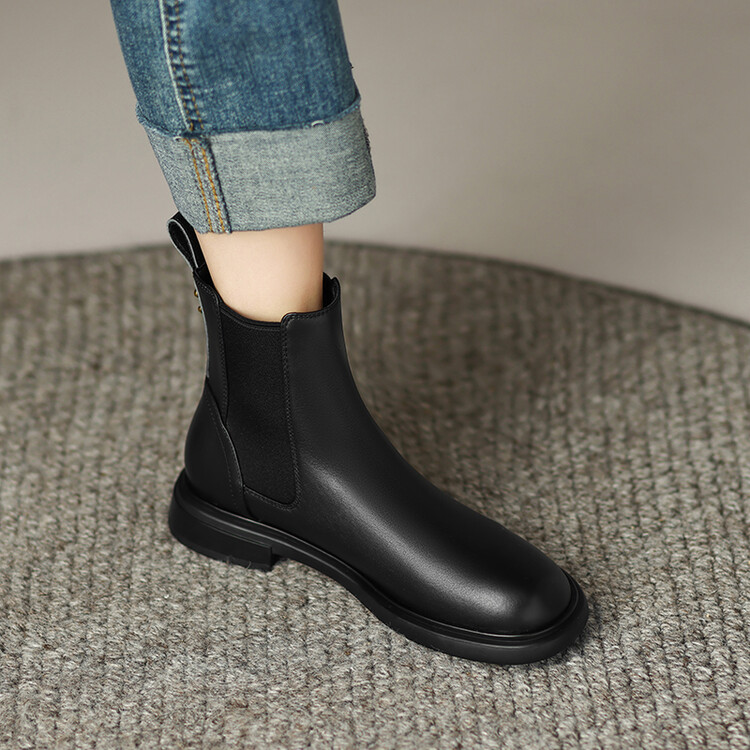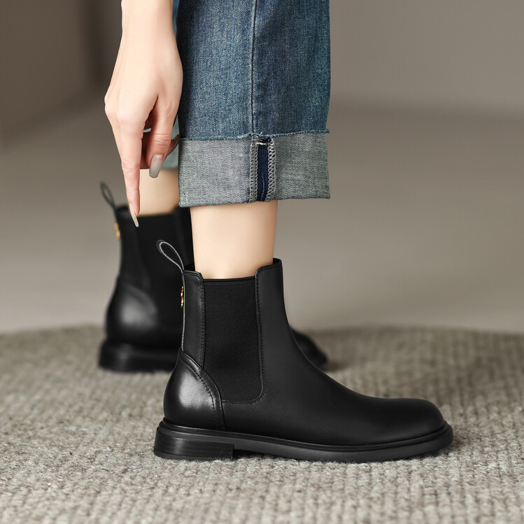 【预售5天】英伦风复古圆头低跟拼接切尔西靴冬季新款牛皮套筒简约短筒靴KYD&5730