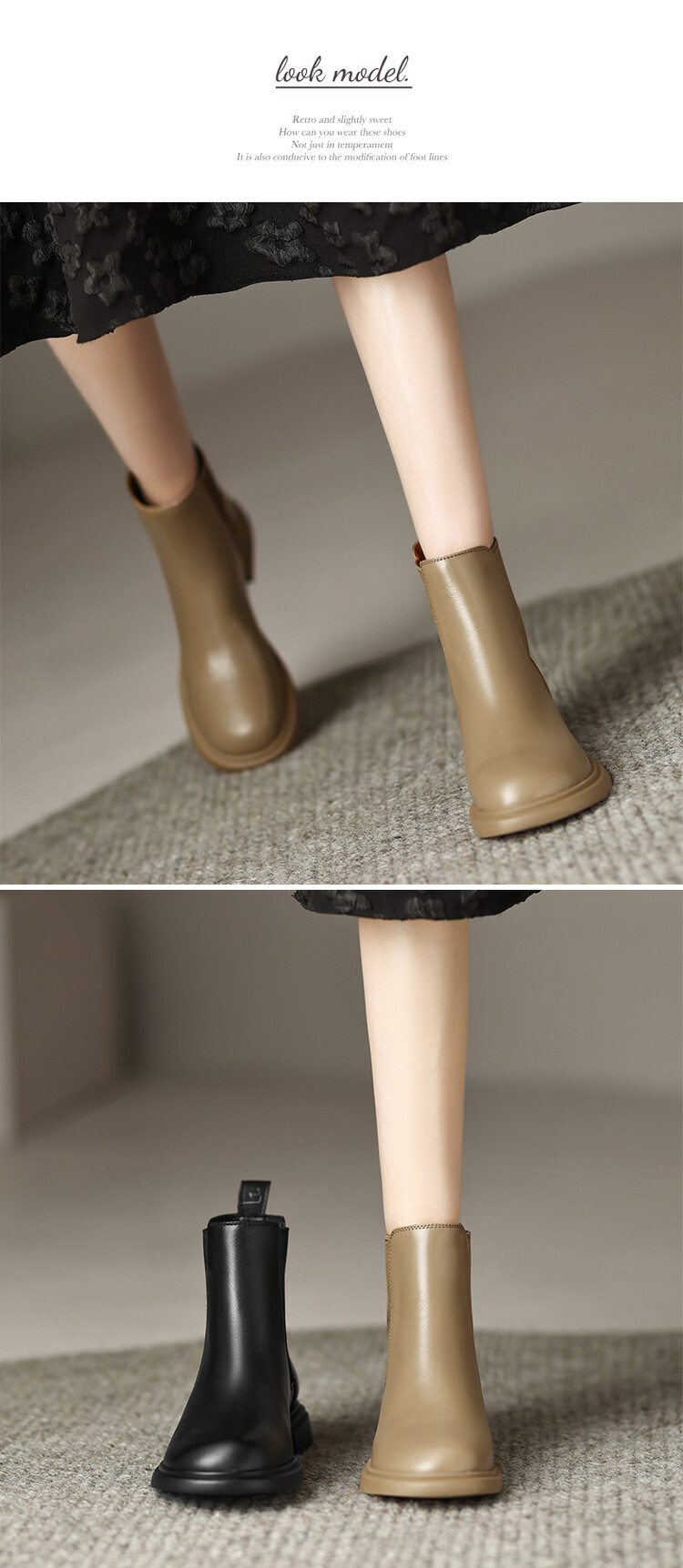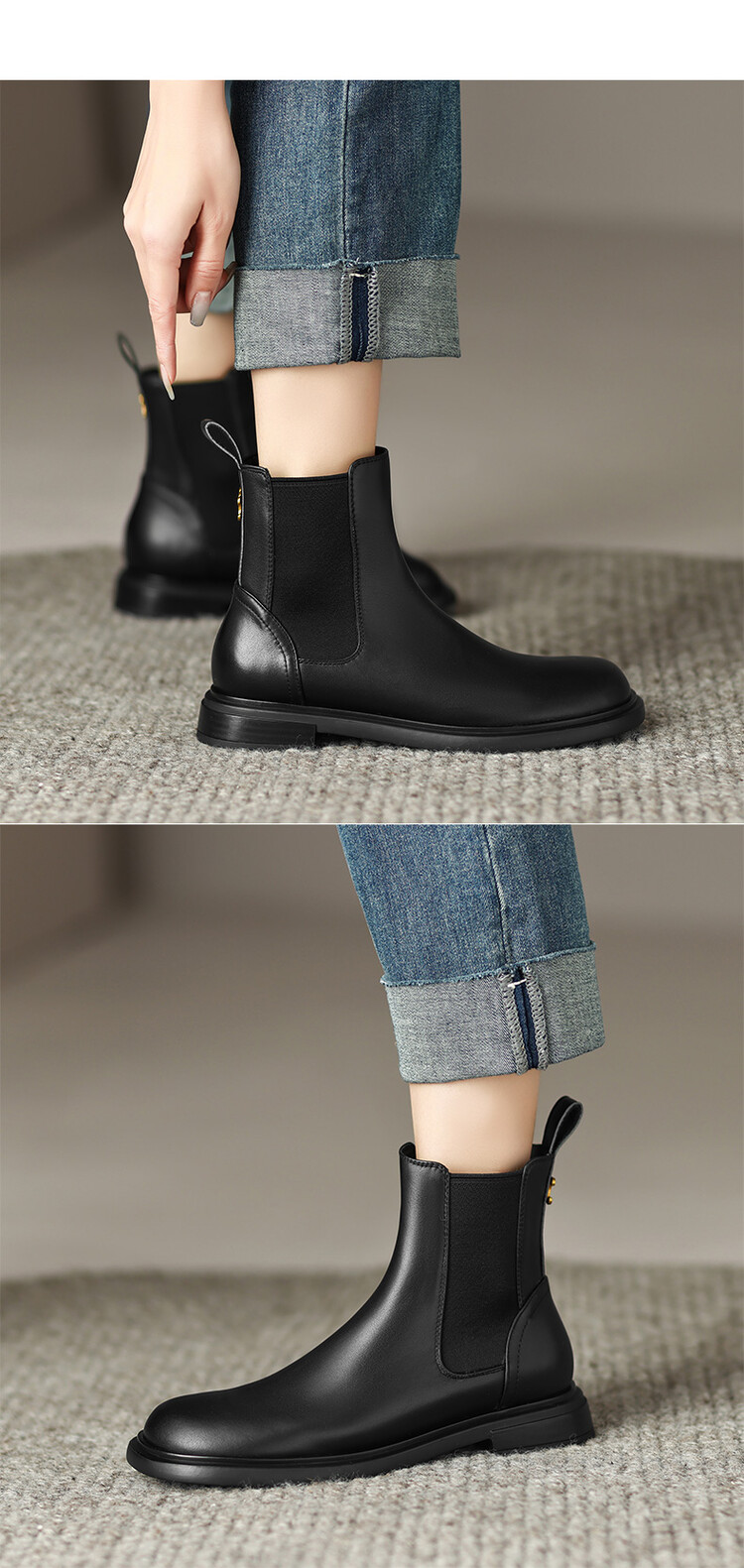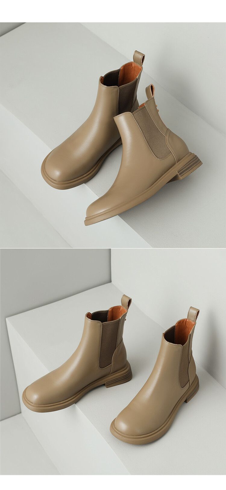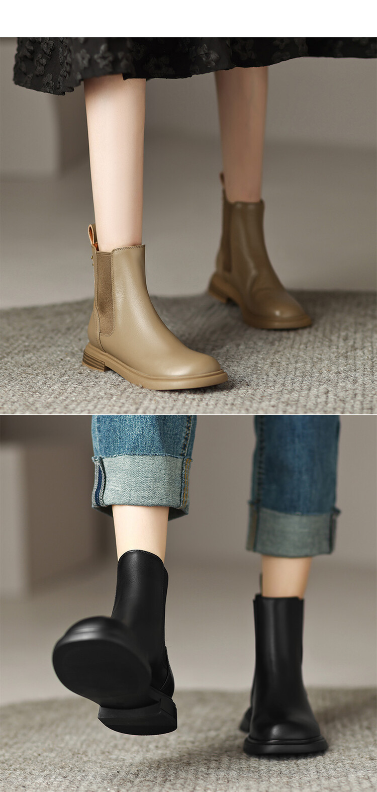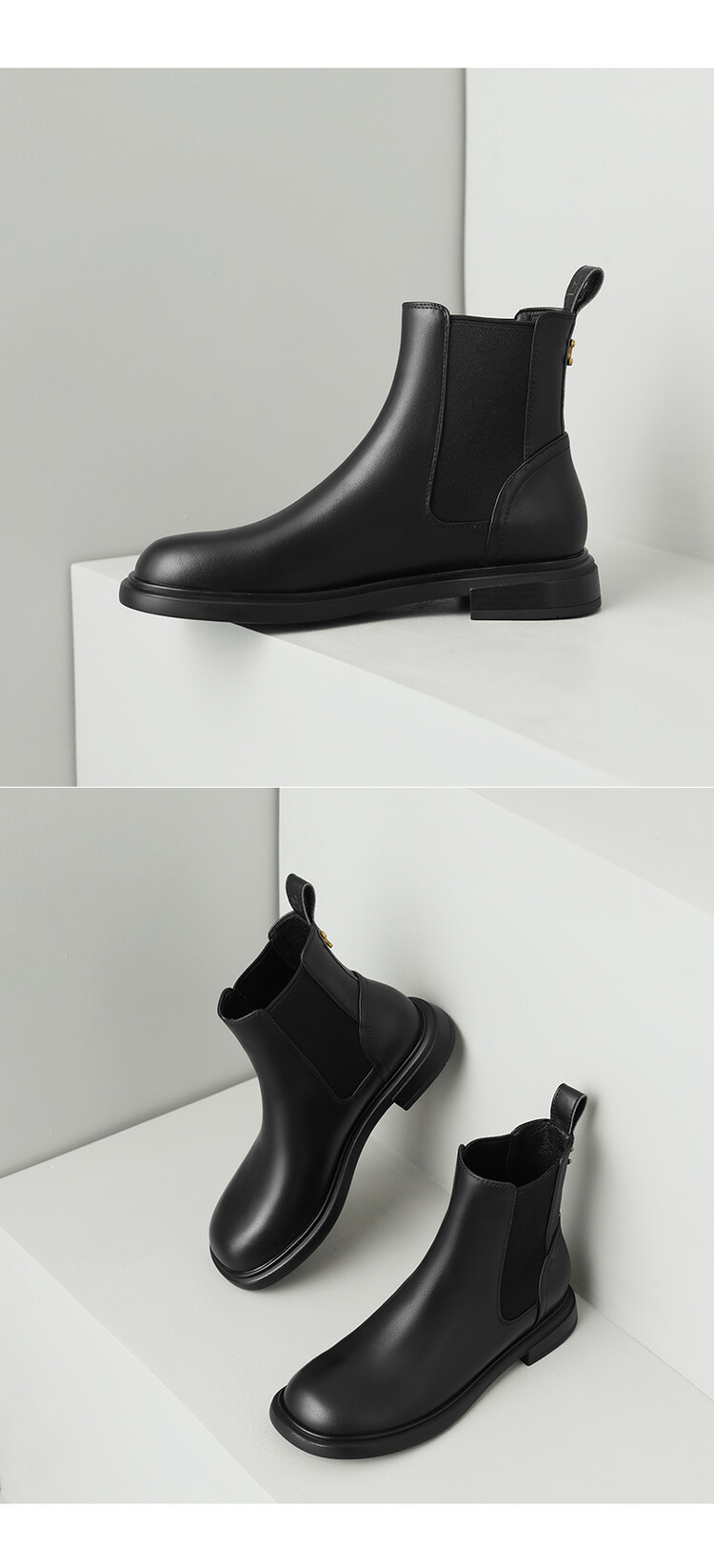 【预售5天】英伦风复古圆头低跟拼接切尔西靴冬季新款牛皮套筒简约短筒靴KYD&5730