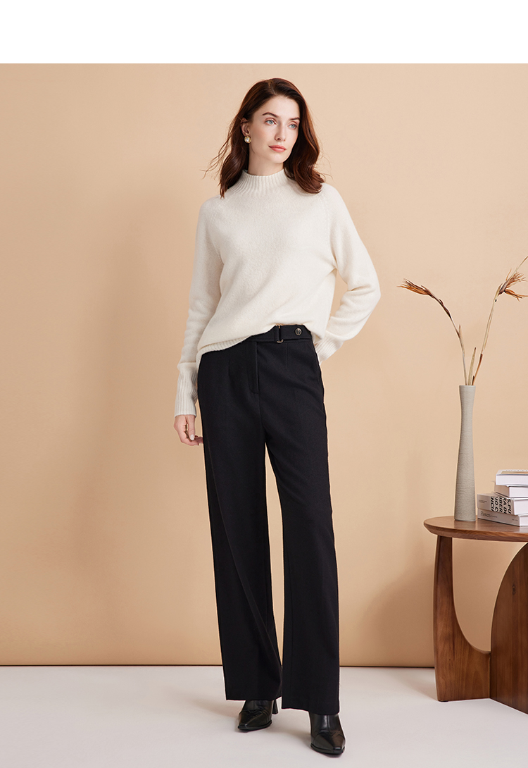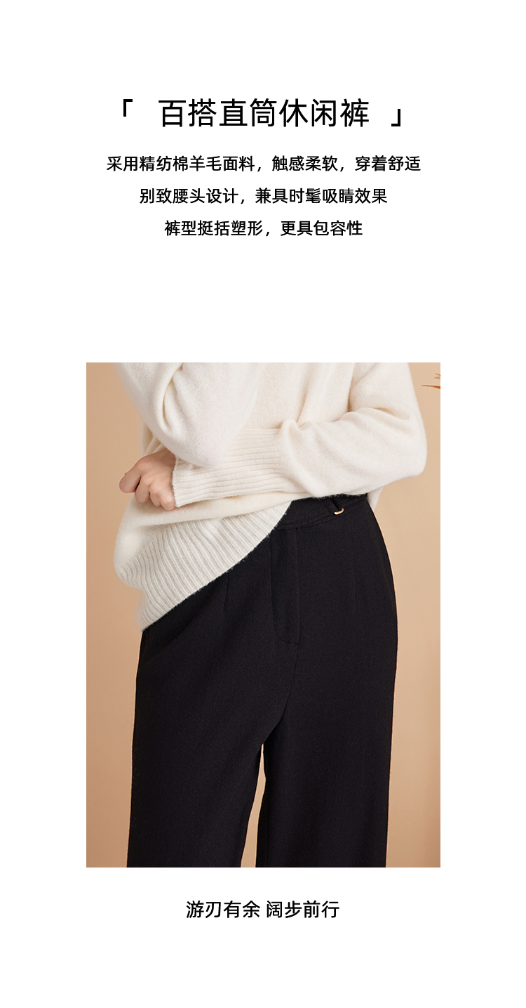 EITIE爱特爱秋季新款高腰通勤简约黑色百搭显瘦裤子7605306