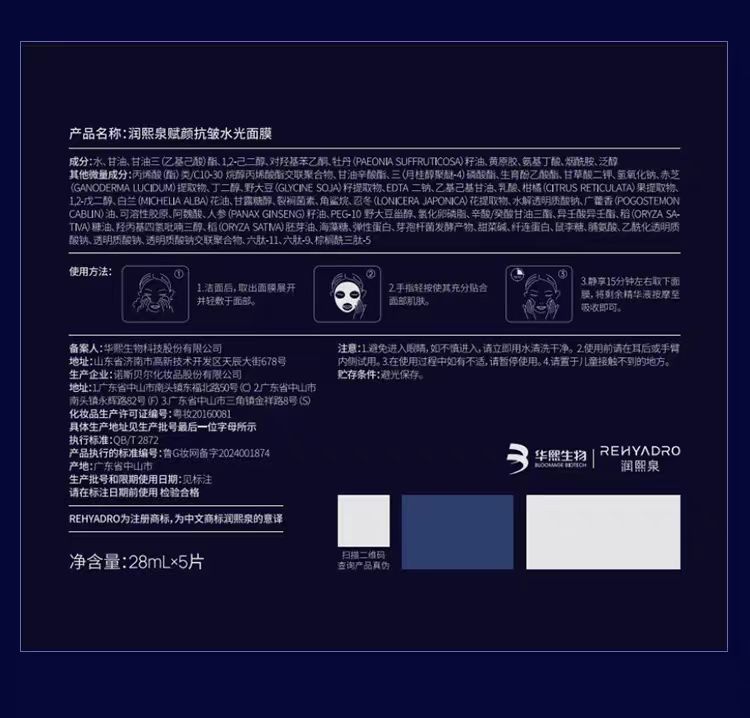 【产品名称】:润熙泉赋颜抗皱水光面膜