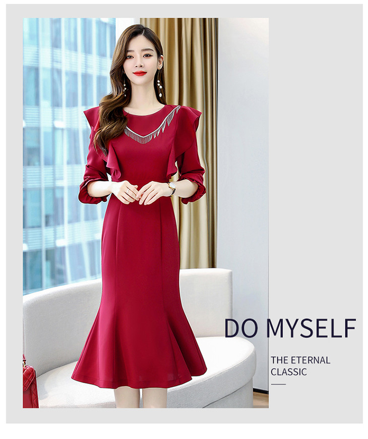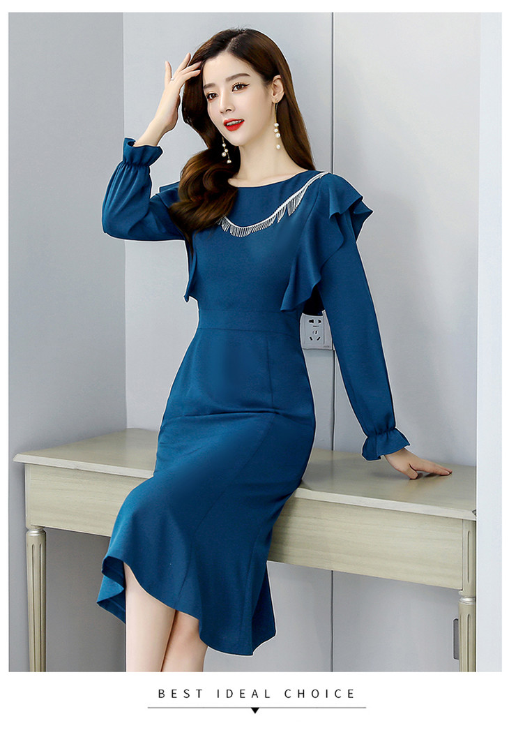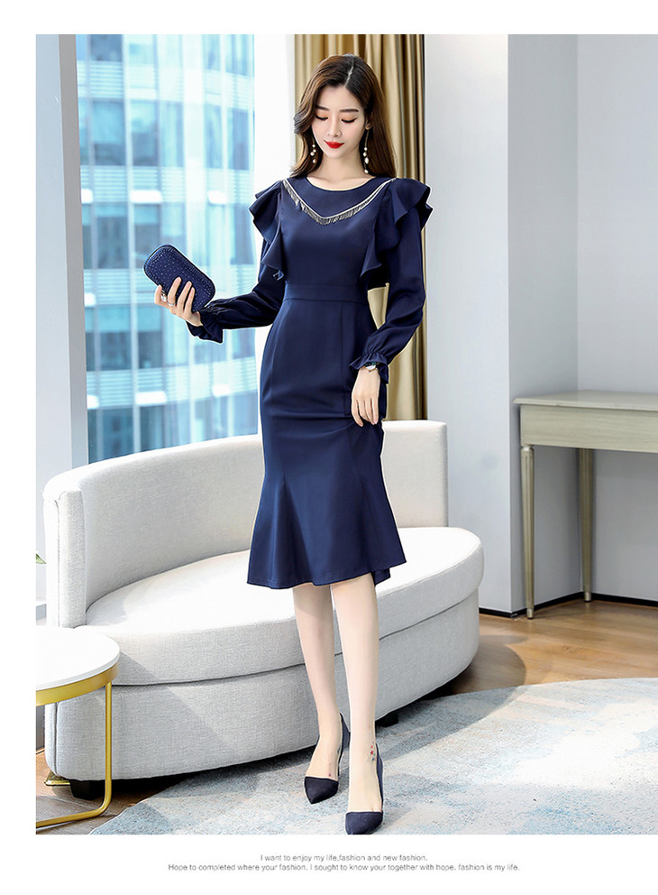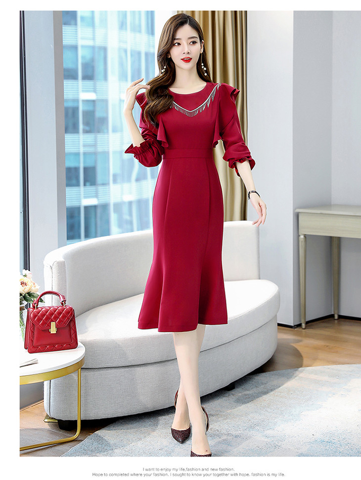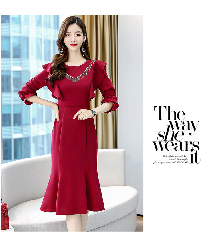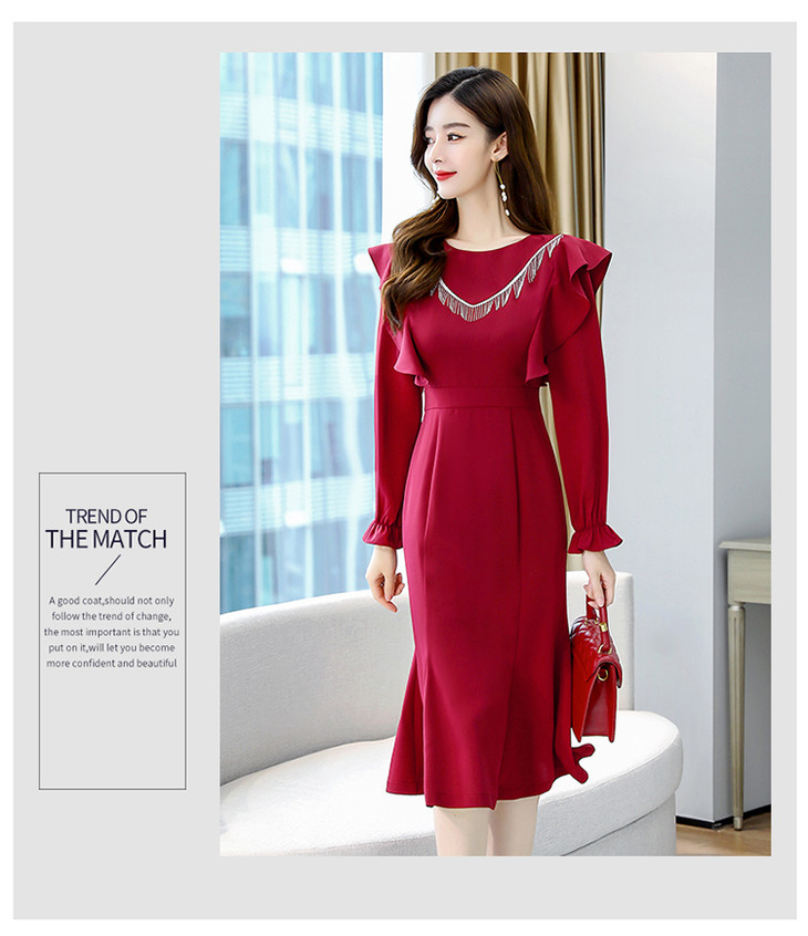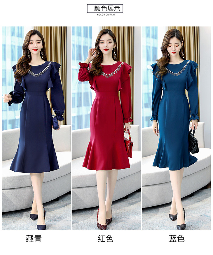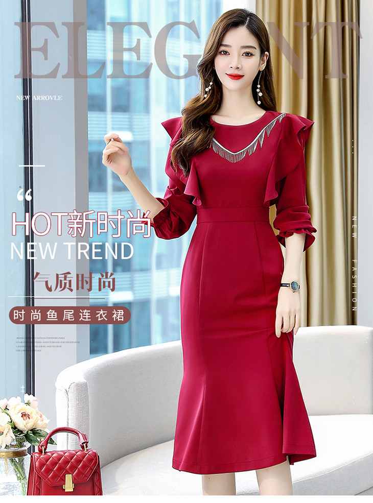 WZNH-AYD80911秋新款气质收腰显瘦连衣裙
