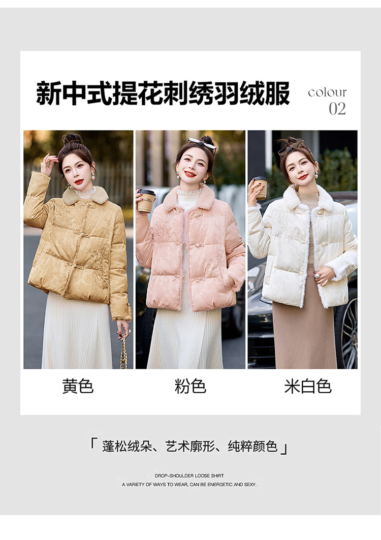 时尚新中式风国风刺绣羽绒服,显瘦好看气质外套HR-MEIQIN9668-1
