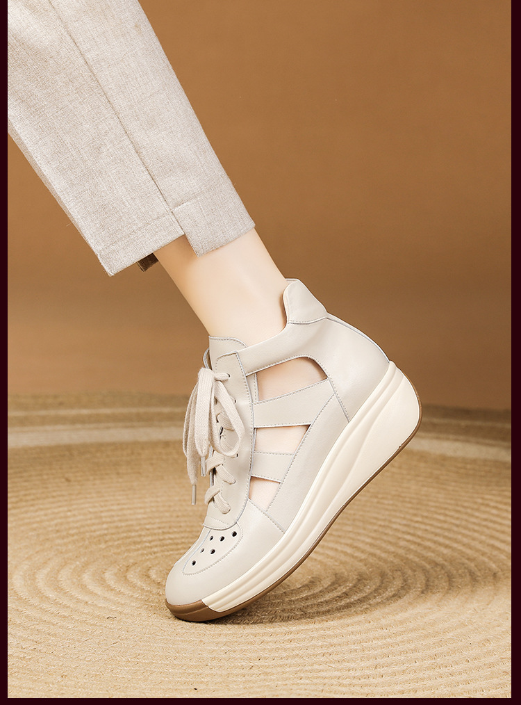 春季新款镂空马丁靴真皮短靴时尚复古风女靴侧拉链低筒镂空马丁靴9027-0