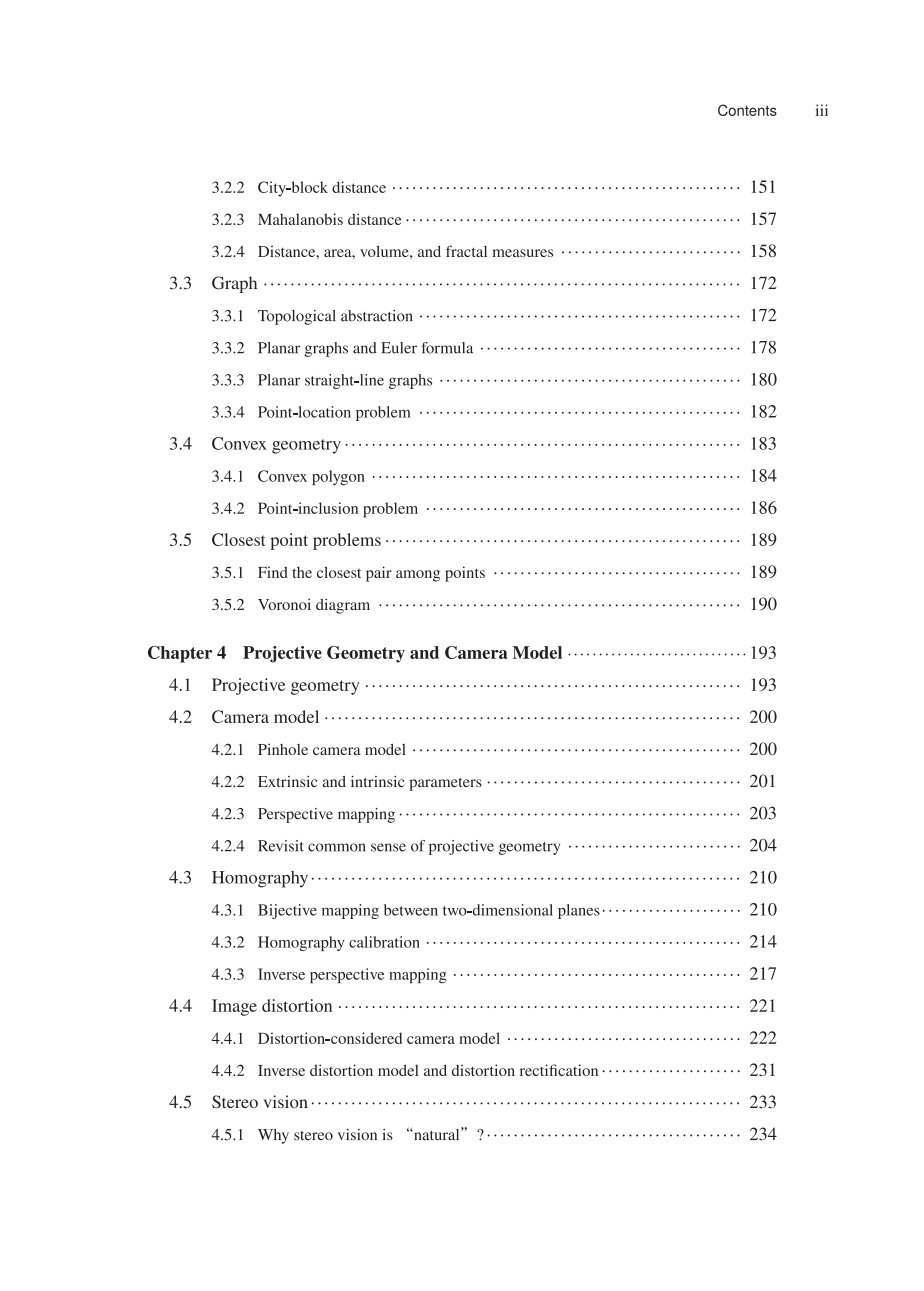 本书主要讲解计算机视觉的几何基础(核心数学基础),包括图像处理与模式识别的几何视角、三维射影几何学、摄像机模型、摄像机标定、立体视觉、三维视觉重构等。本书提供了具体且有趣的案例,并配有方便读者实践、颇具实用性的原创展示代码,让读者从实际问题与实践中学习计算机视觉几何基础。
