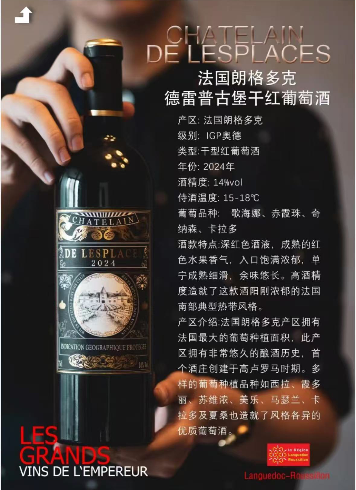 自营|法国朗格多克德雷普古堡干红葡萄酒,成熟的红色水果香气,入口饱满浓郁,单宁成熟细滑,余味悠长
