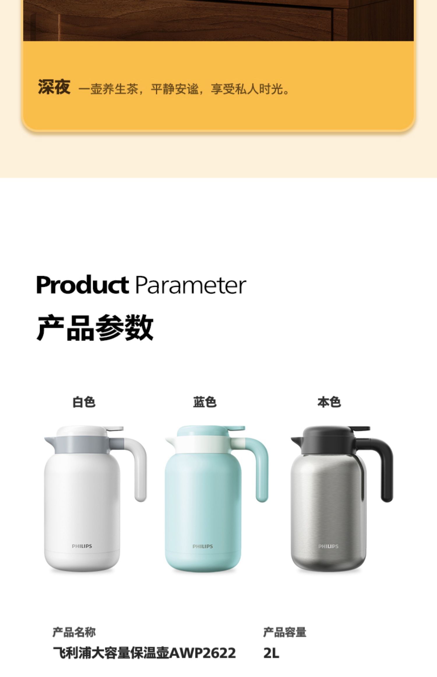 飞利浦(PHILIPS) 家居壶AWP2622BL蓝色 2l