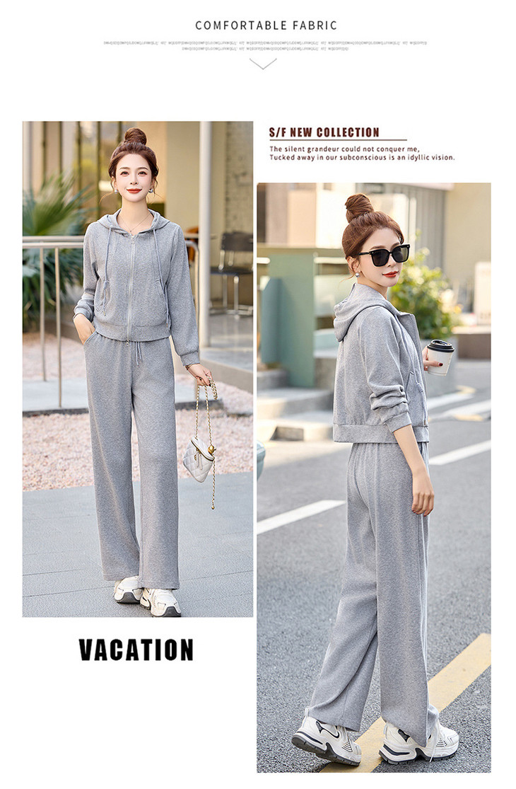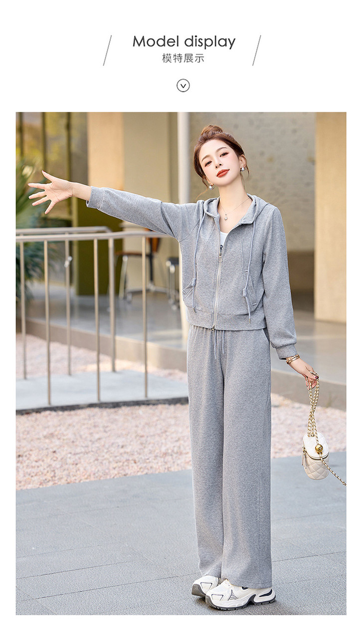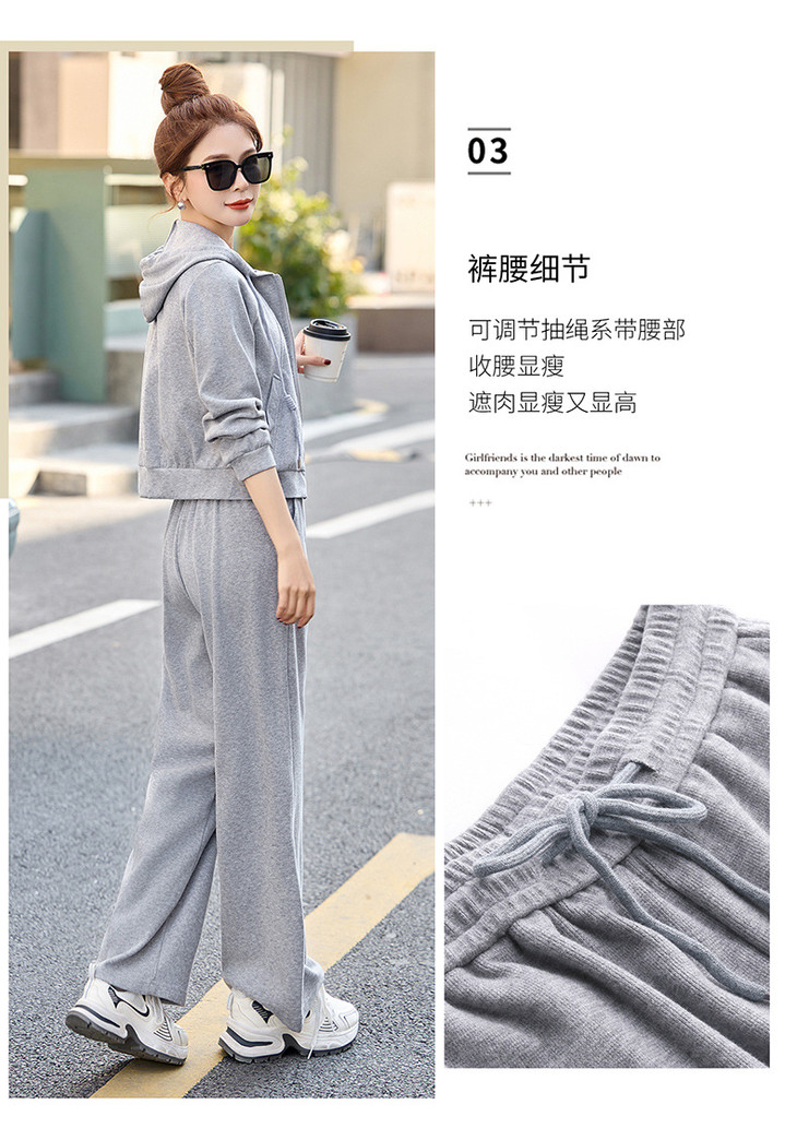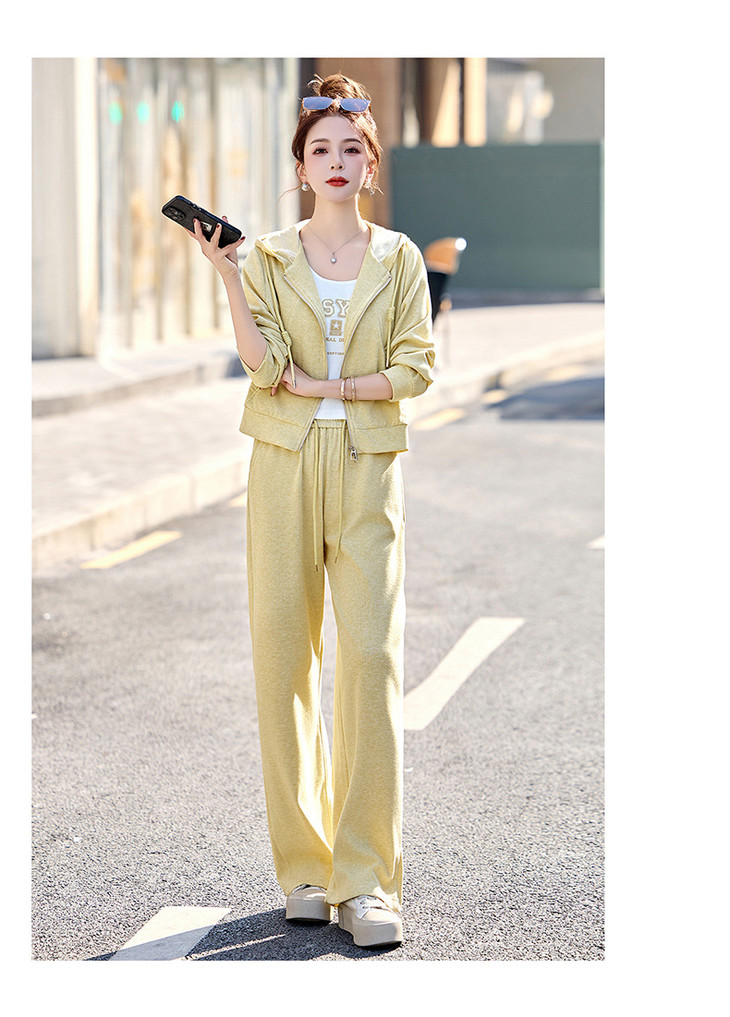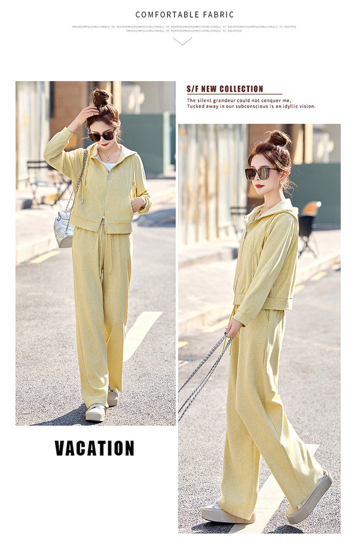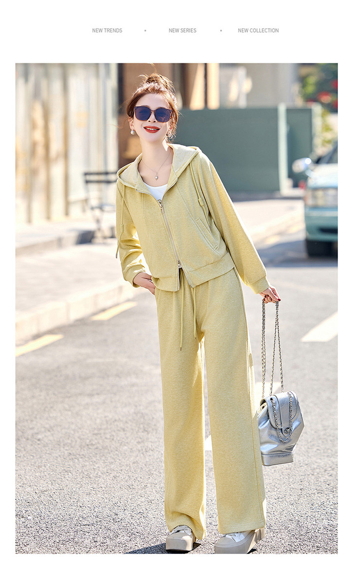 慵懒风黄色卫衣休闲套装,韩系减龄阔腿裤两件套HR-RR2048
