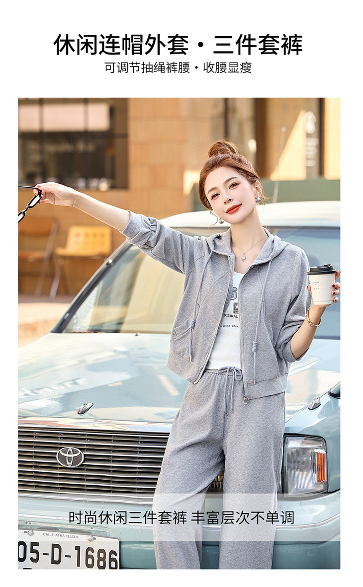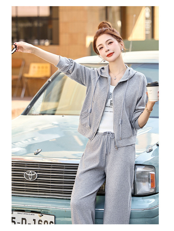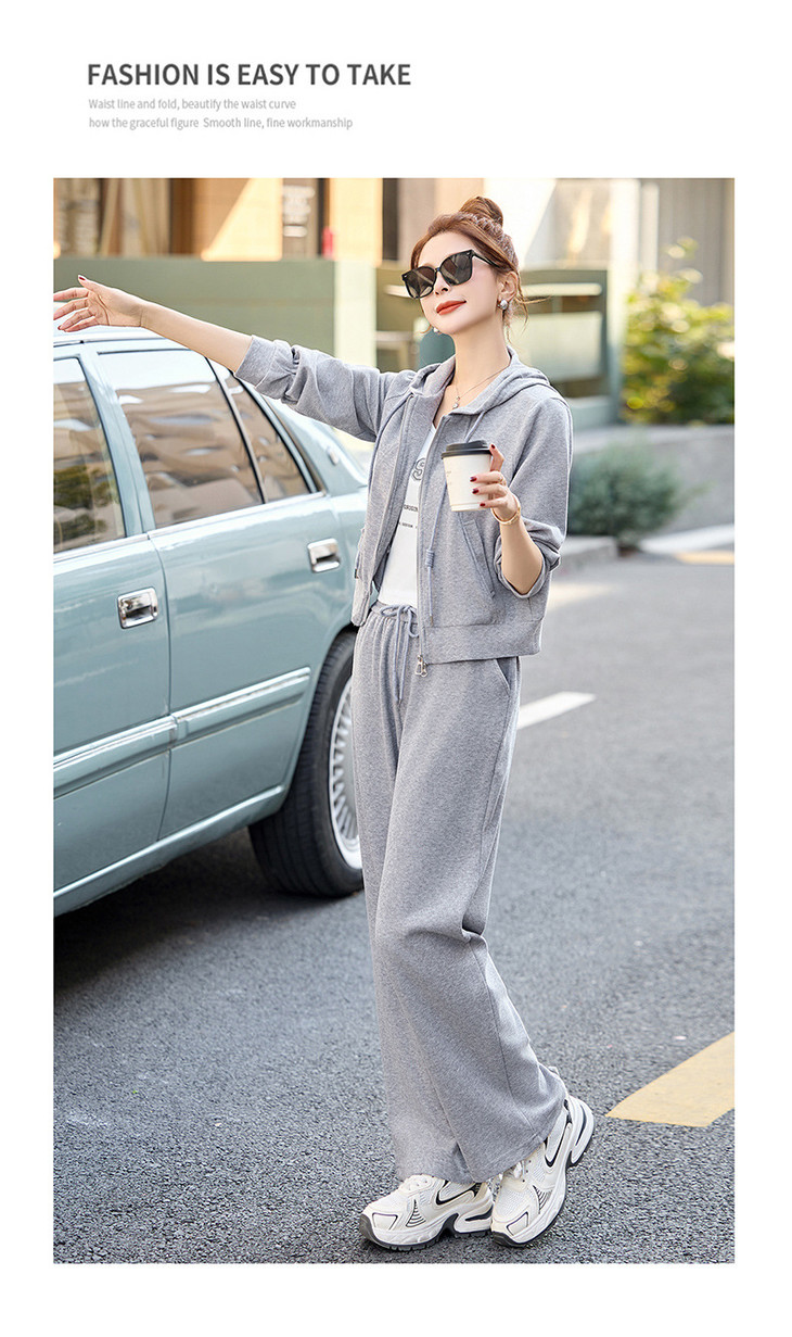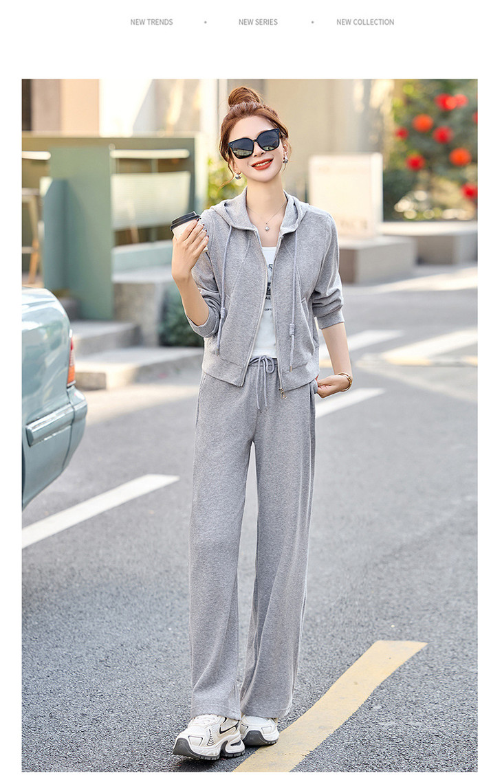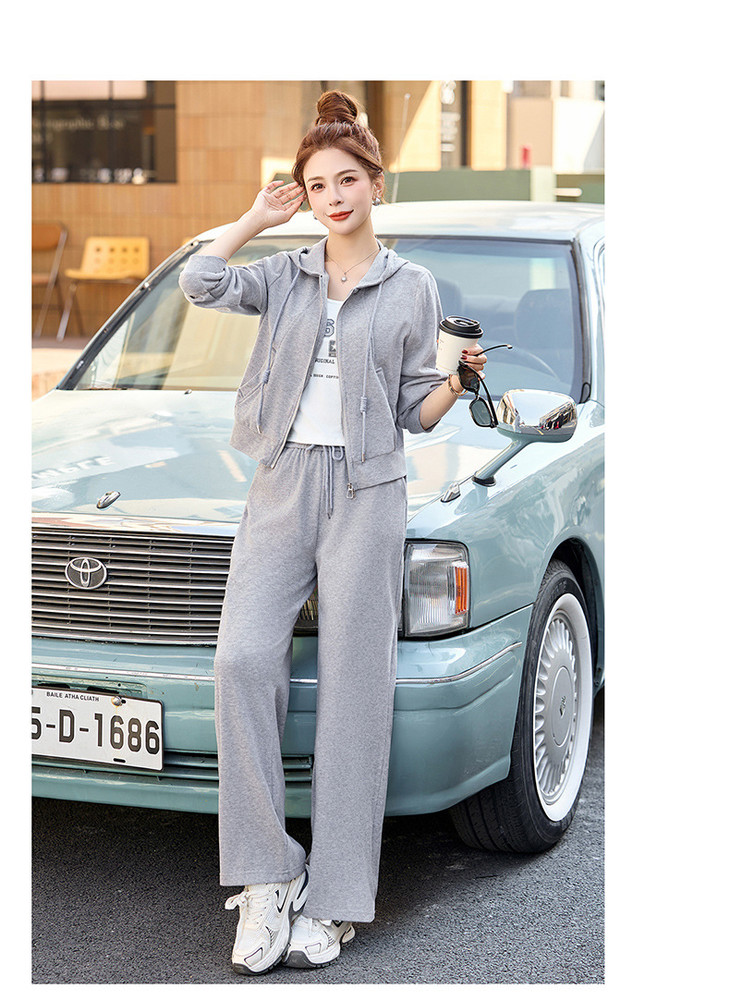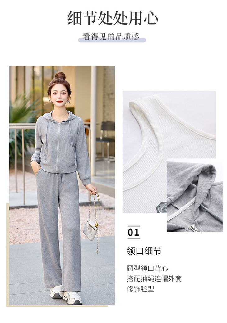 慵懒风黄色卫衣休闲套装,韩系减龄阔腿裤两件套HR-RR2048