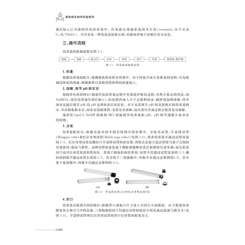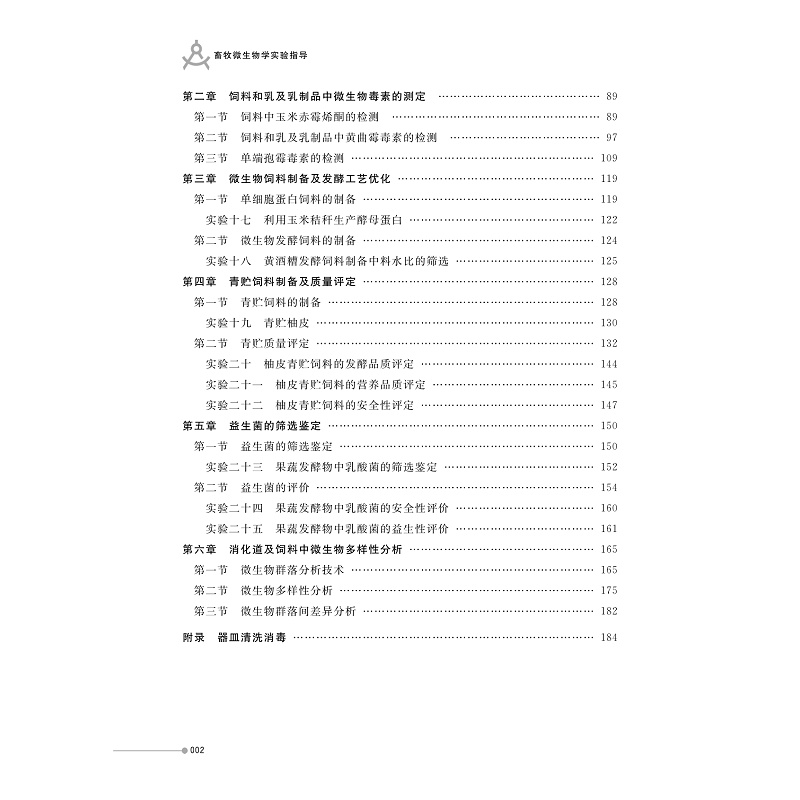 针对微生物在畜牧业的应用领域,针对畜牧业的产业需求,该实验指导设微生物分离和培养、微生物染色、微生物大小测定和计数、饲料及乳中微生物毒素测定、微生物饲料制备及发酵工艺优化、青贮饲料制备及质量评定、益生菌筛选及开发、消化道及饲料中微生物定量及多样性分析、粪污微生物处理效果评定和功能性乳品开发十个实验内容。从目的要求、原理、试验材料和试验方法与步骤等几个方面撰写每个实验内容,详细撰写试验方法和过程控制,以期在完成畜牧微生物学实验课堂操作外,能让专业人员、研究生和本科生依据此实验指导可自行开展探索性试验。