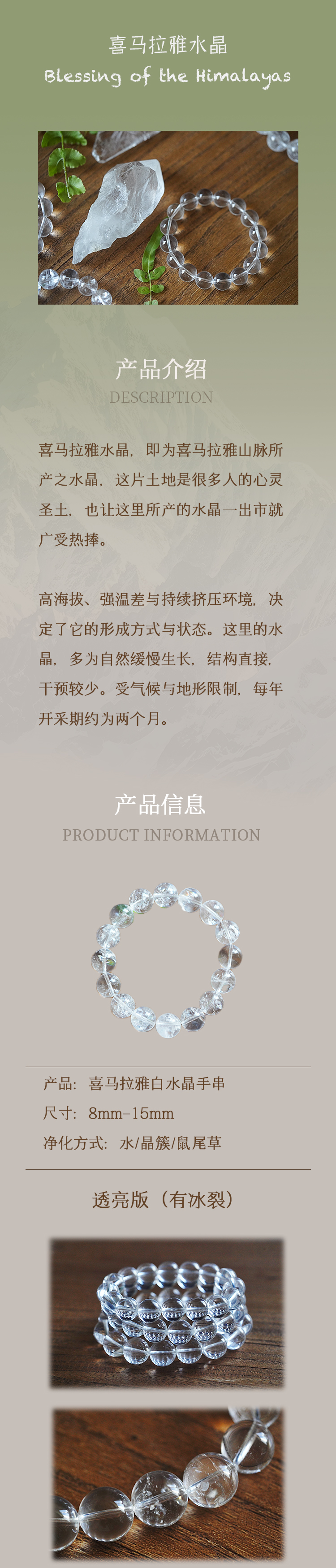 喜马拉雅白水晶手链 | 8-15mm 月下世界【透亮/彩虹随机发不接受指定 】「下单请备注手围、下单后72小时内发货」