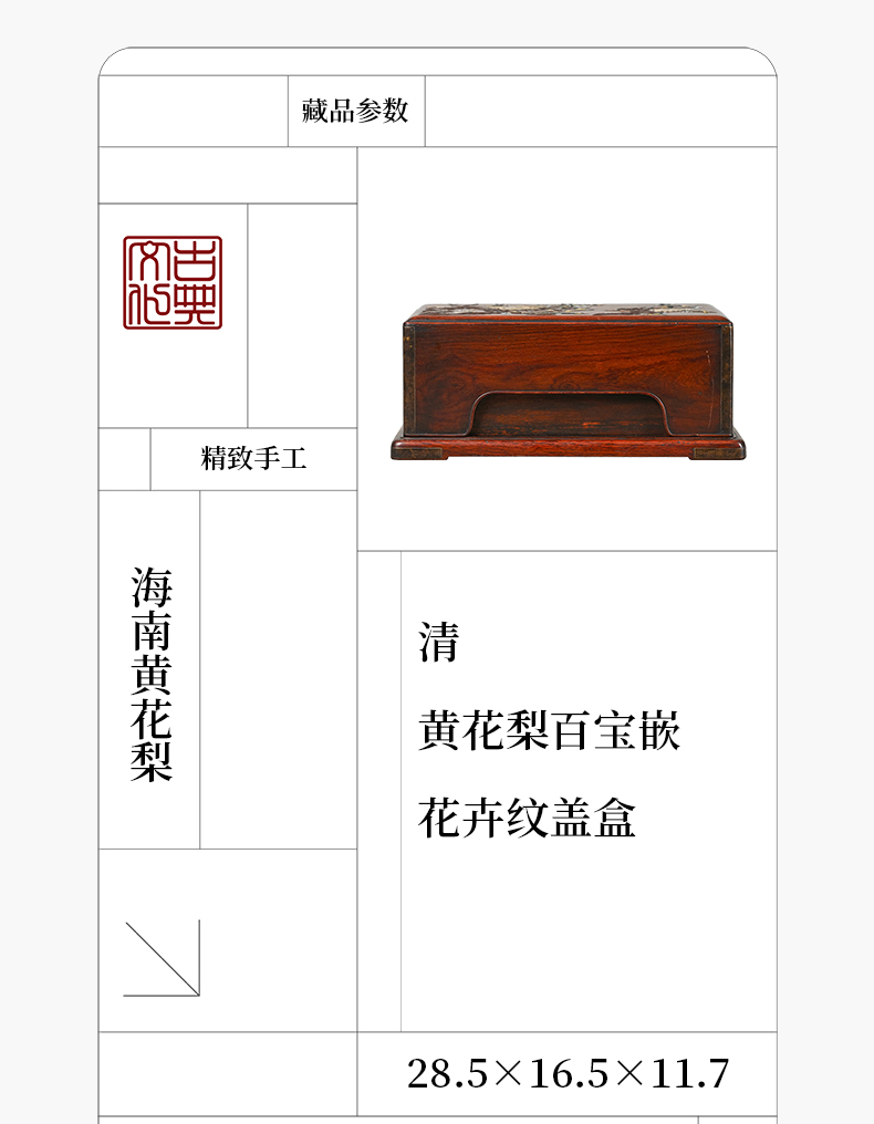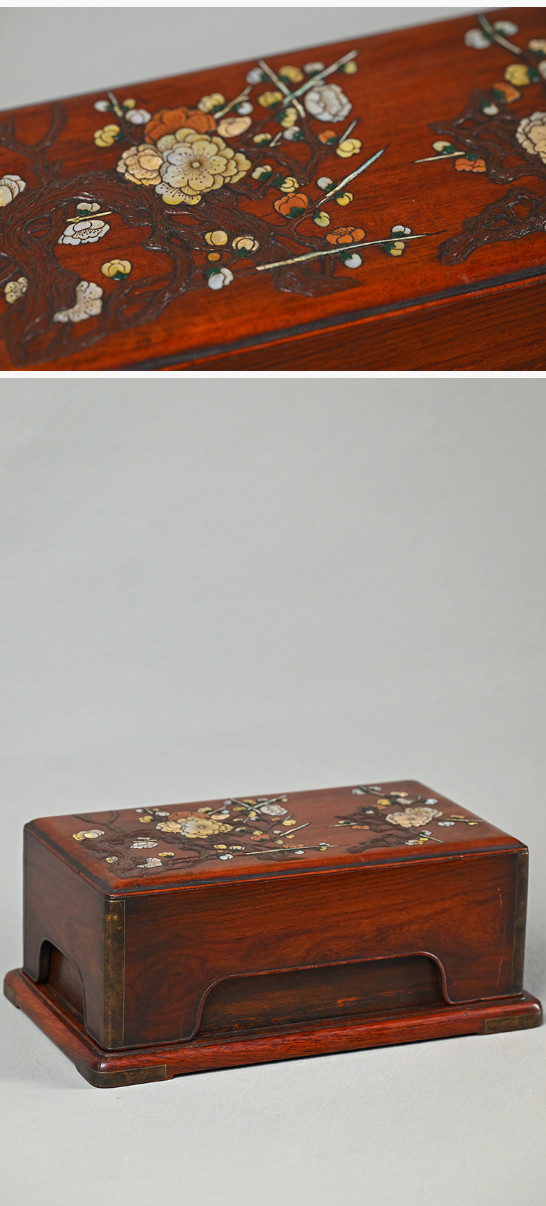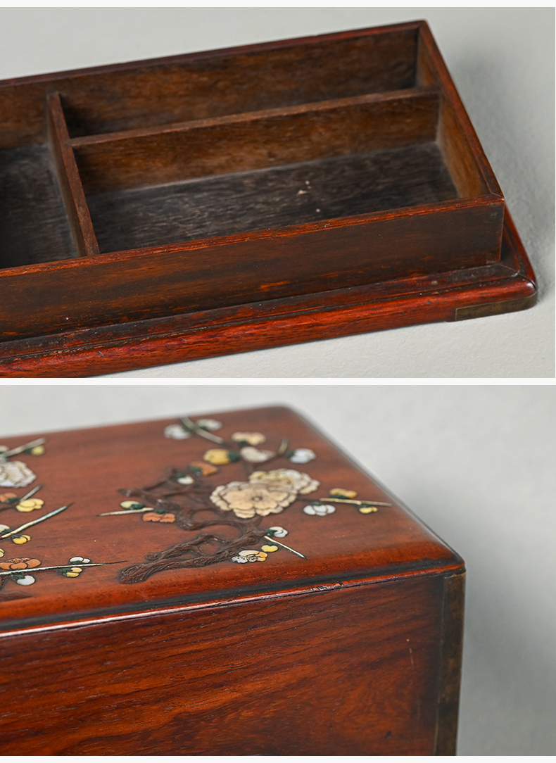 清 黄花梨百宝嵌花卉纹盖盒