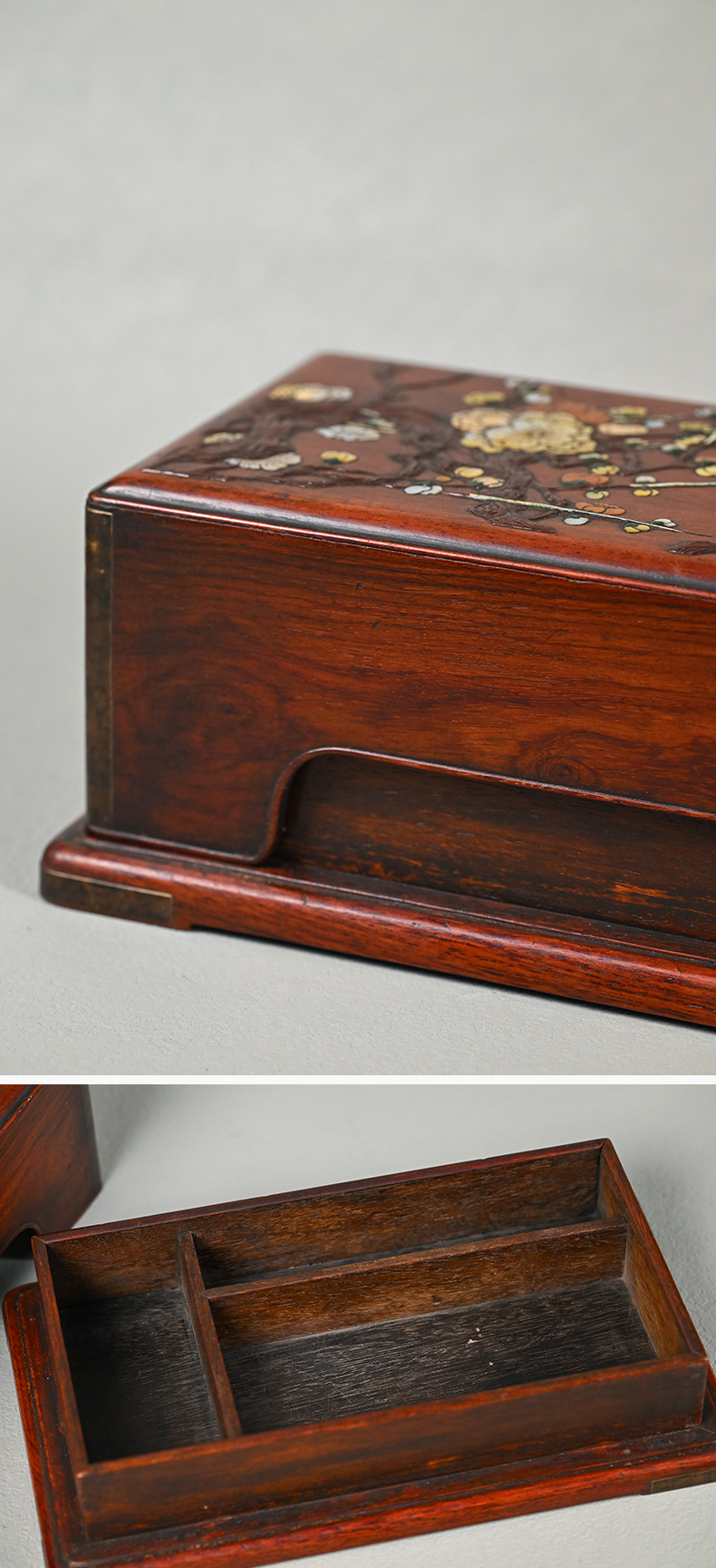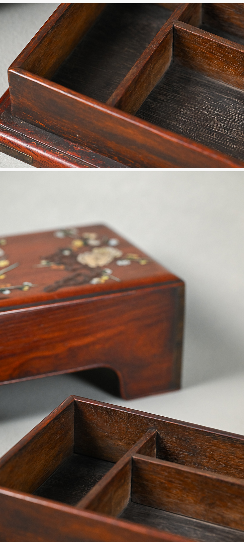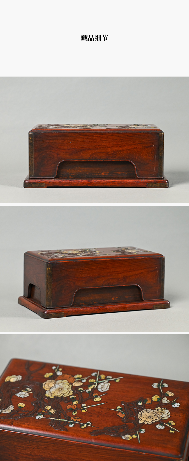 清 黄花梨百宝嵌花卉纹盖盒
