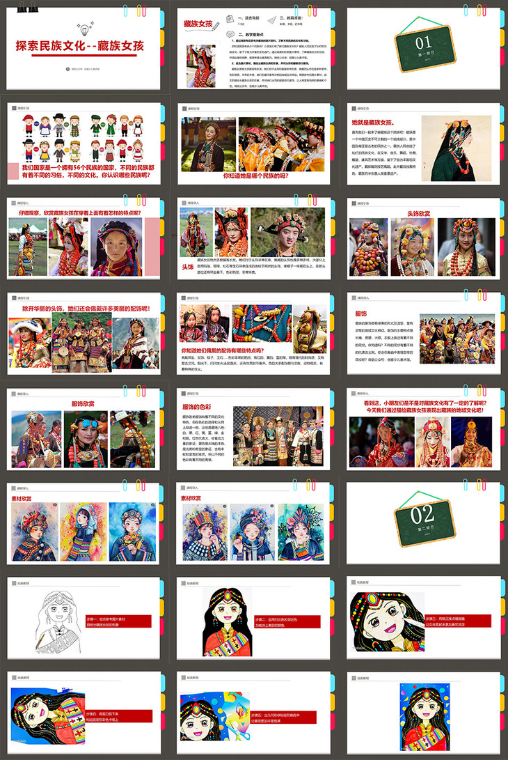 1、通过观察和欣赏有关藏族的图片资料,了解不同民族的文化和习俗。你知道我国有多少个民族吗?小朋友们有了解过藏族文化吗?藏族人民创造了灿烂的民族文化,留下了极为丰富的文化遗产。通过观察和欣赏图片素材,了解藏族文化和习俗,开阔自身的视野,提高审美与鉴赏能力。微信公众号:创意少儿美术馆。