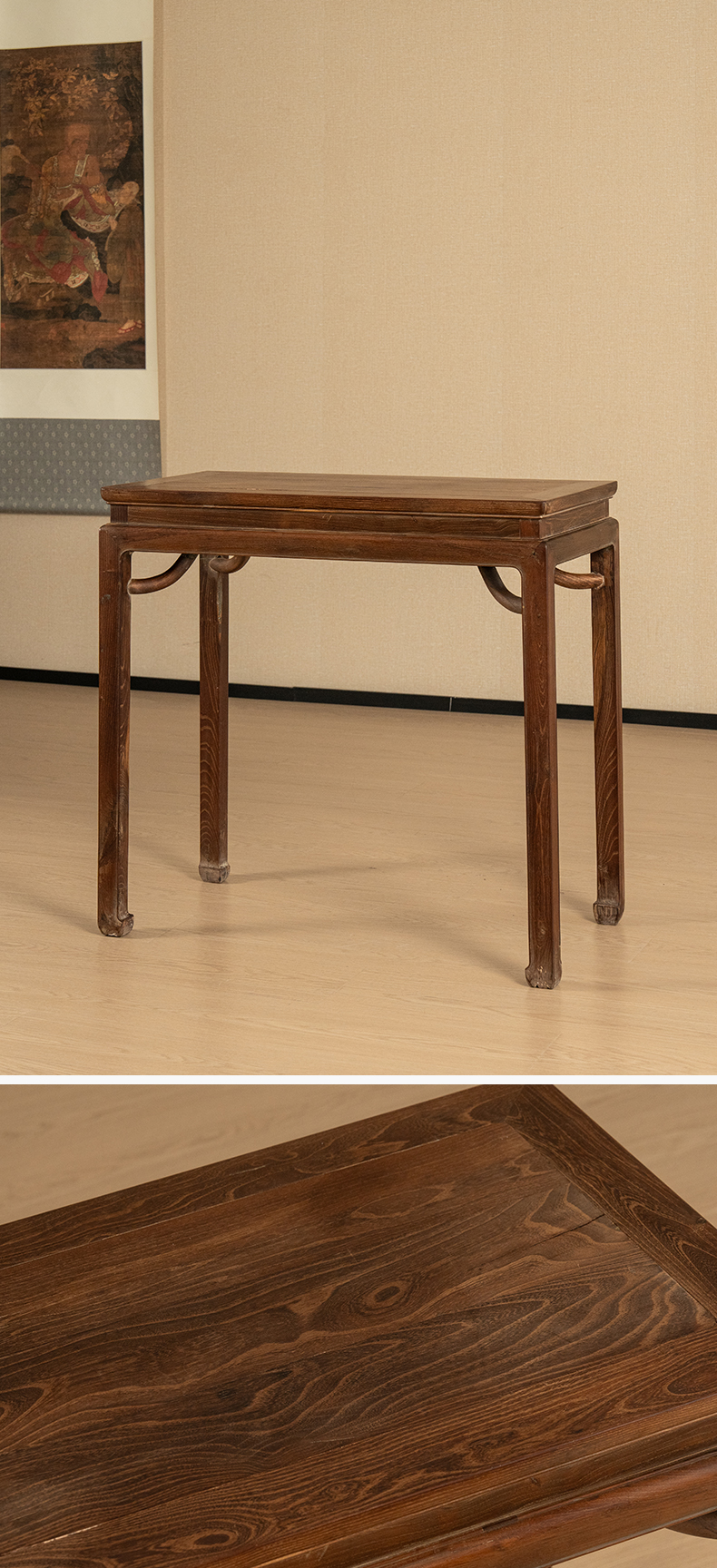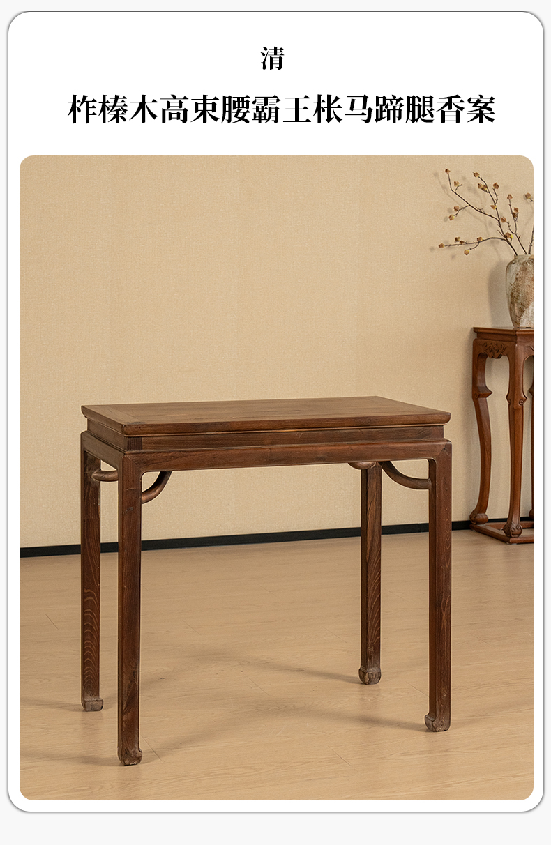 清 柞榛木高束腰霸王枨马蹄腿香案