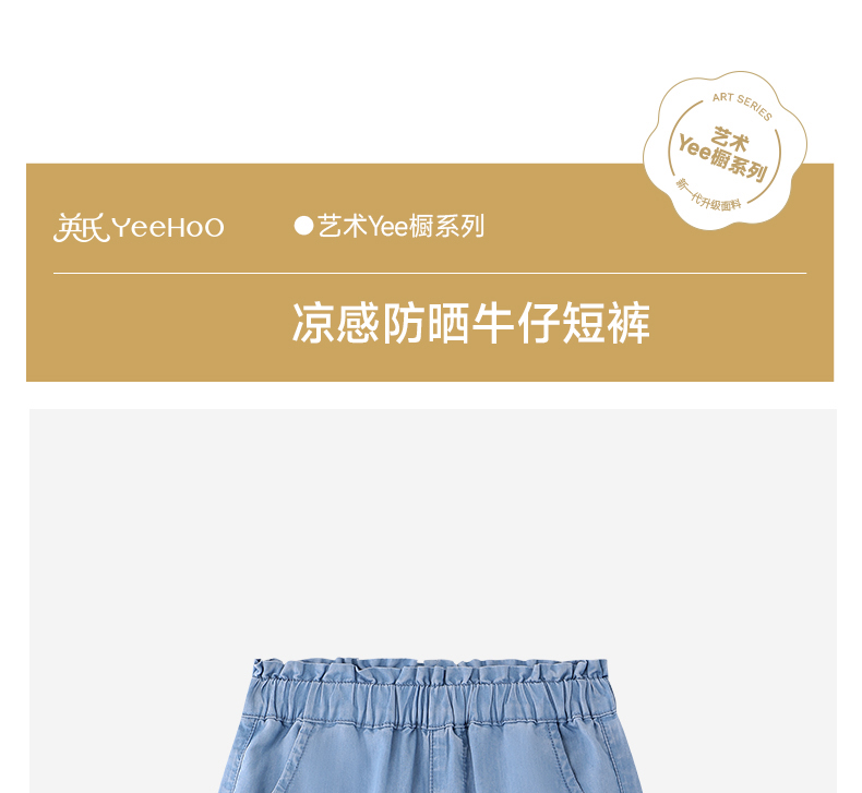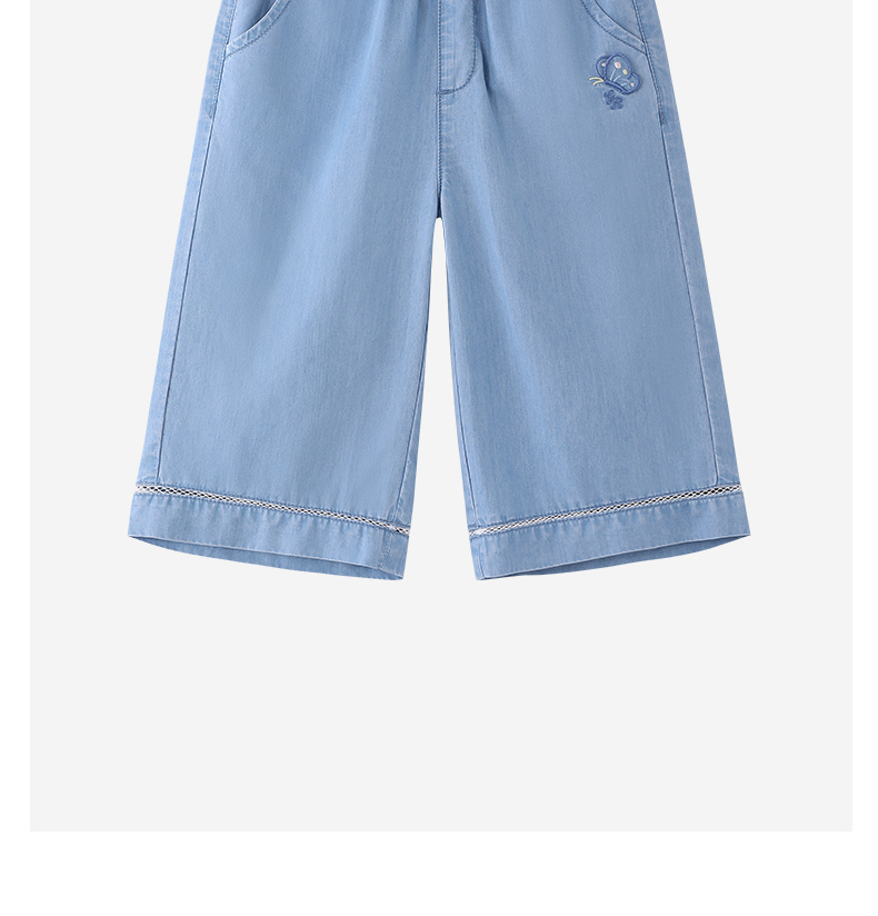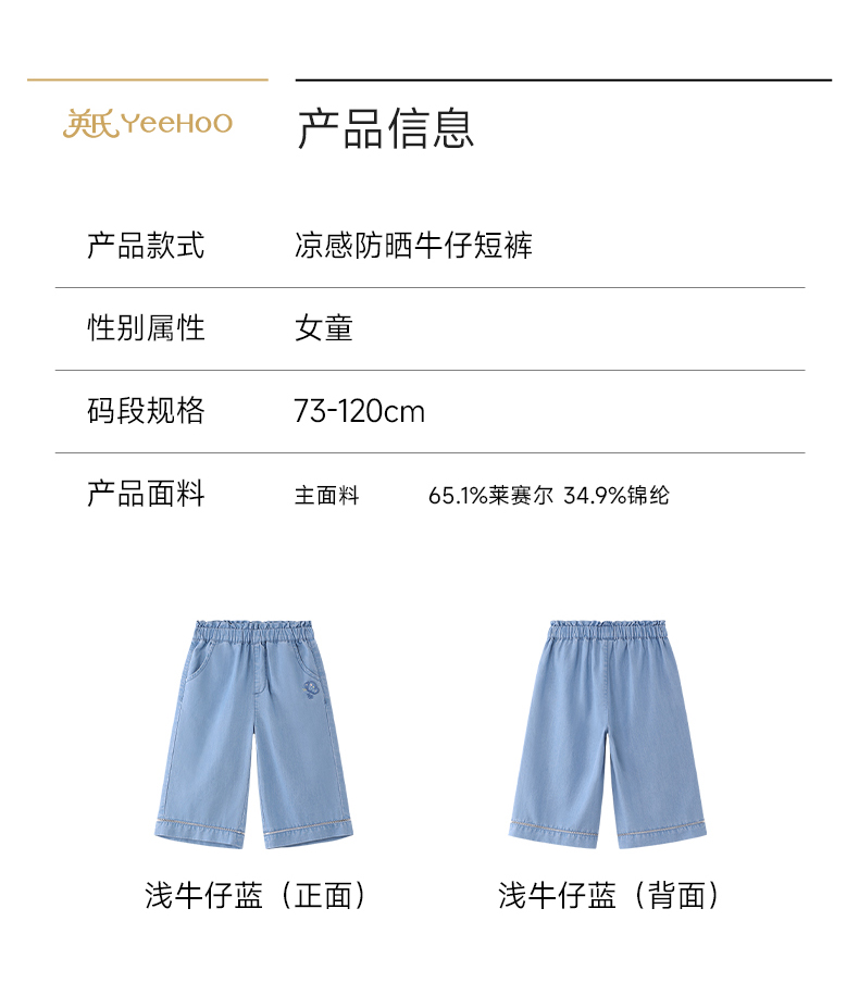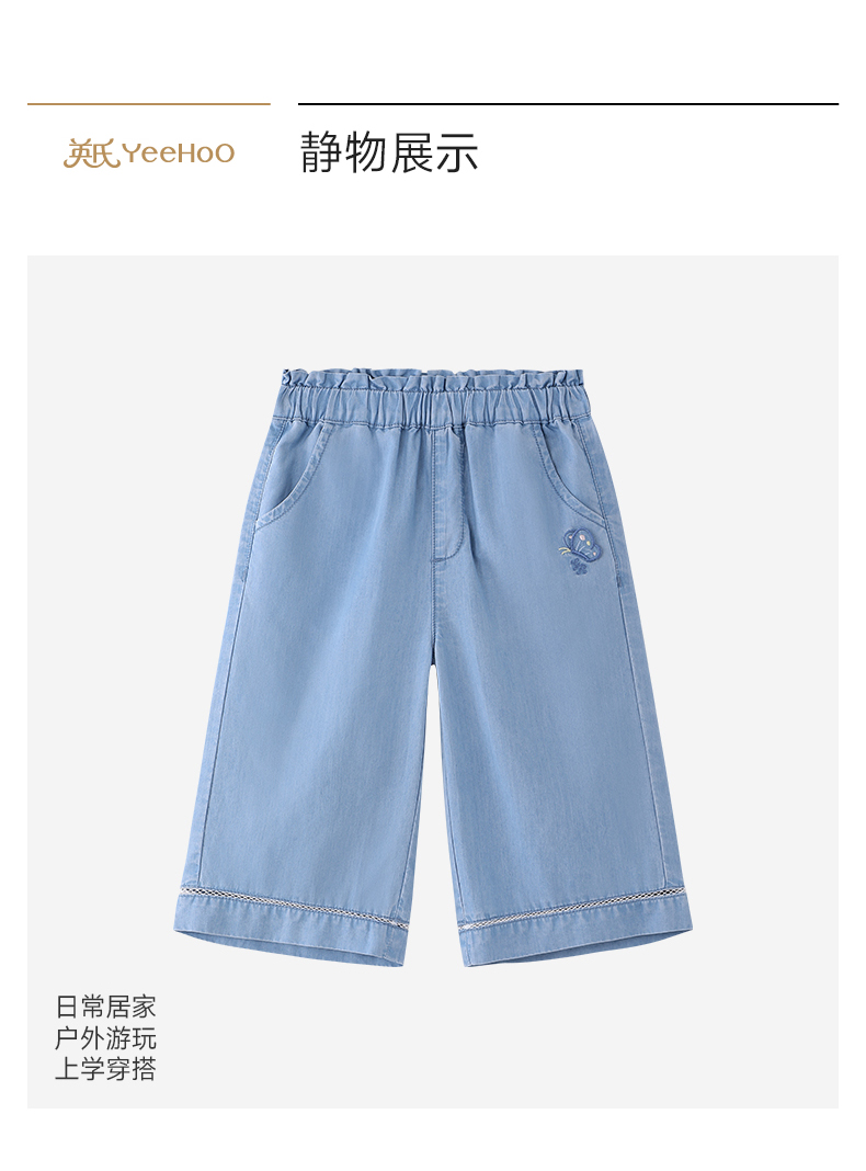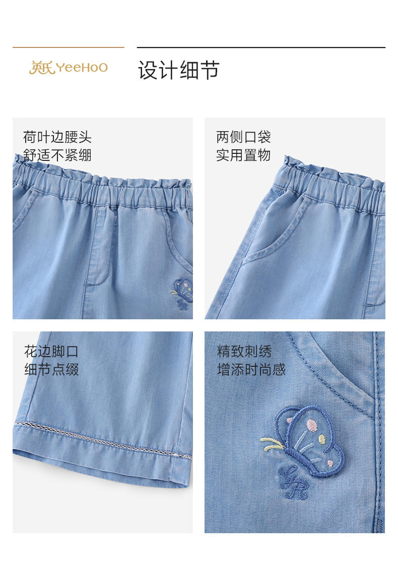 【商场同款】英氏儿童裤子女童夏季牛仔中裤浅蓝百搭休闲裤26新款