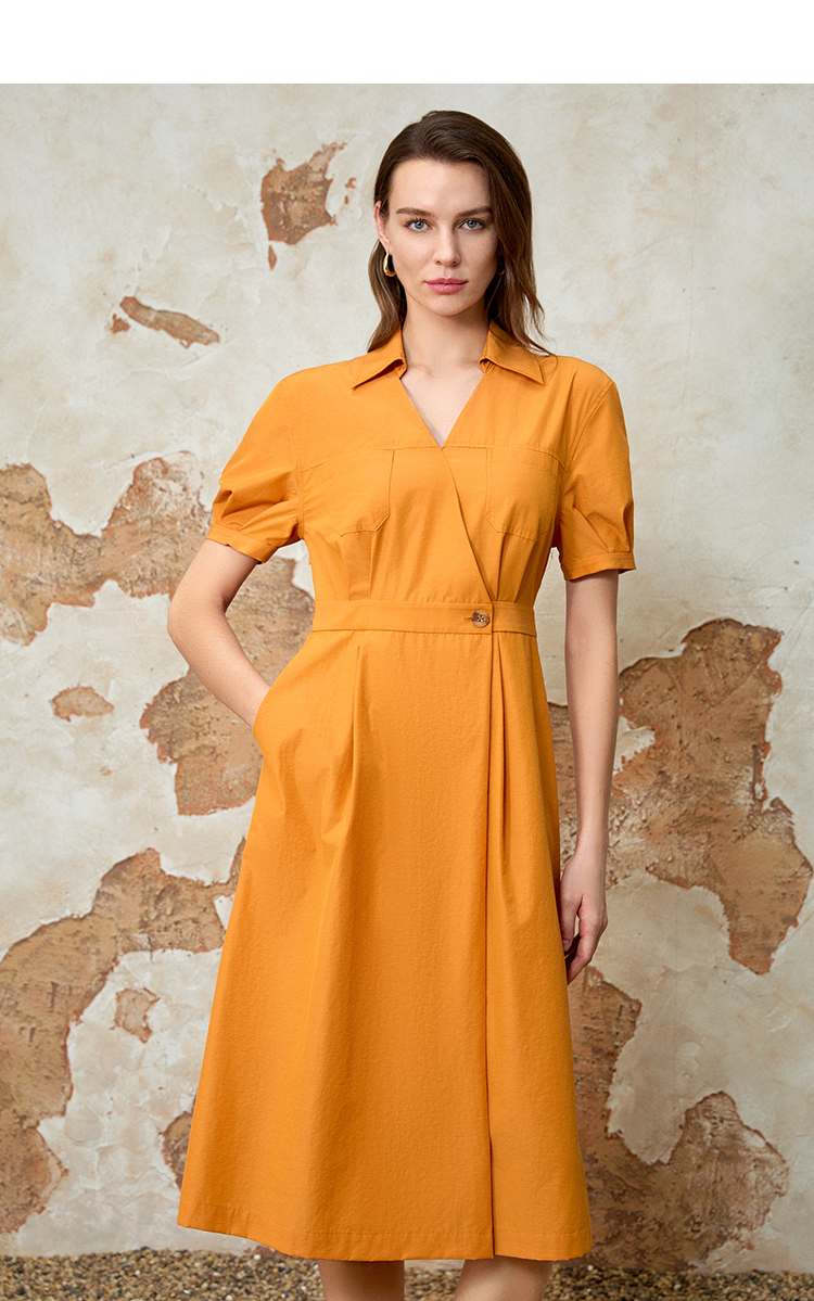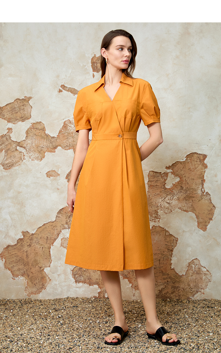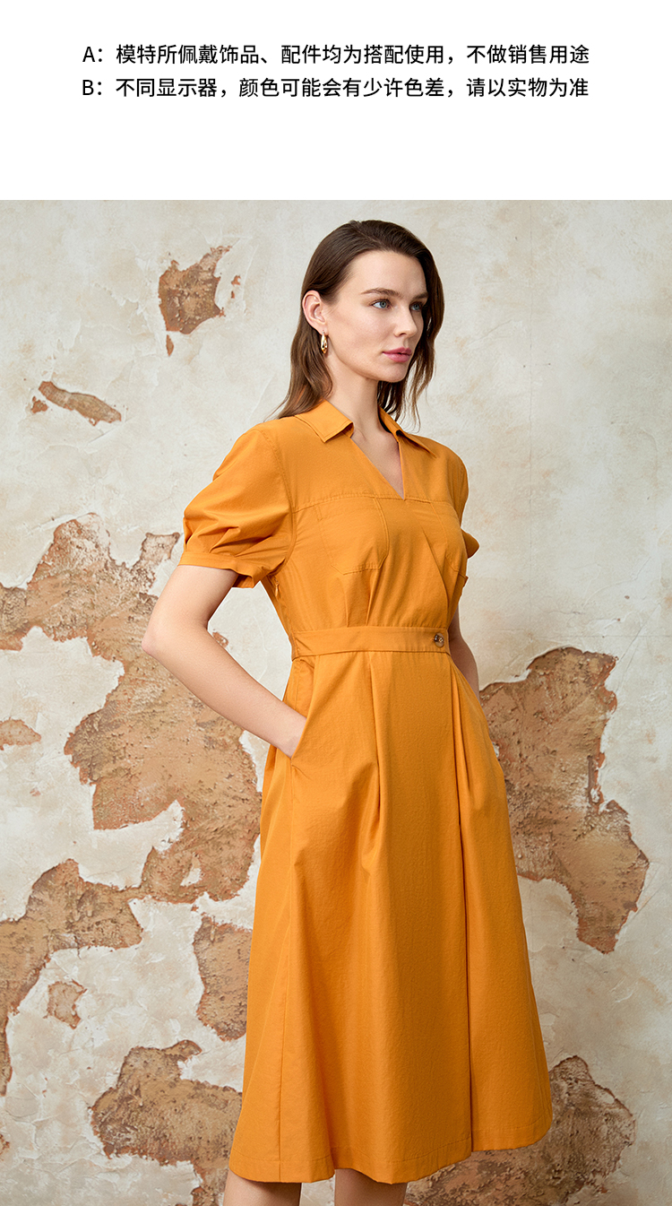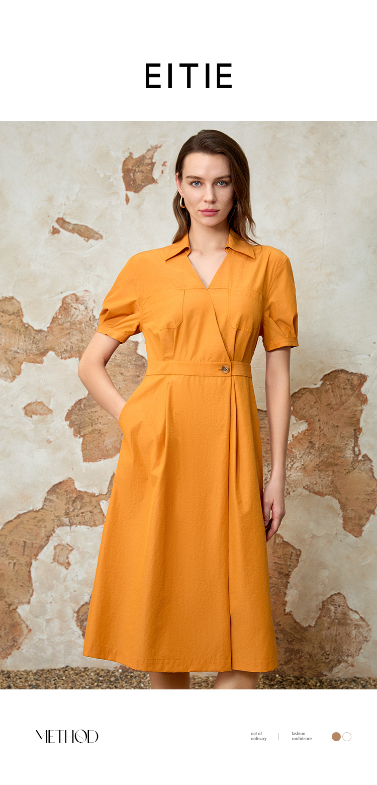 EITIE爱特爱通勤显瘦气质翻领收腰连衣裙夏新款8207950