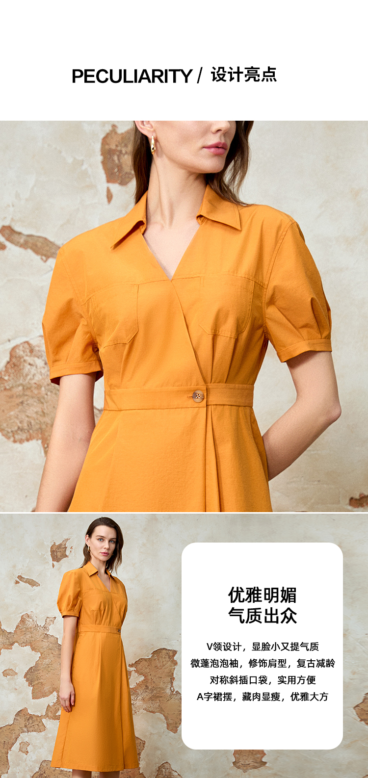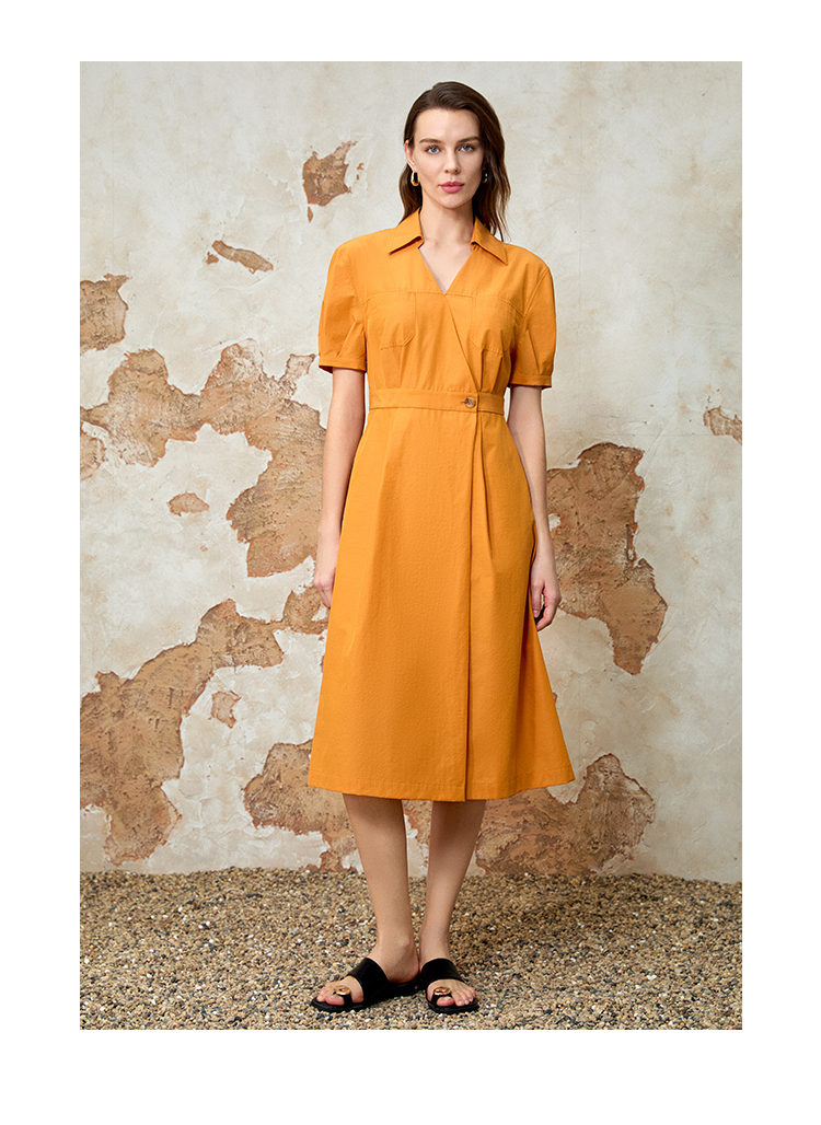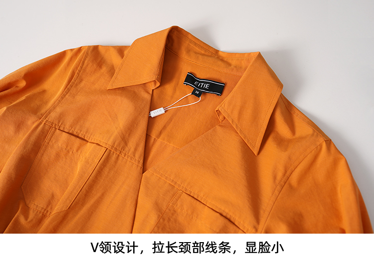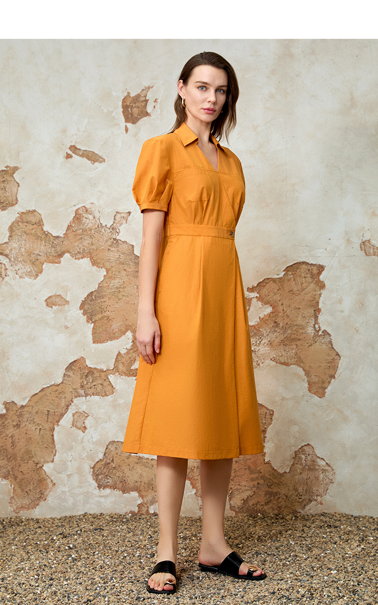 EITIE爱特爱通勤显瘦气质翻领收腰连衣裙夏新款8207950