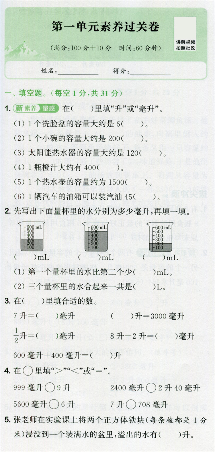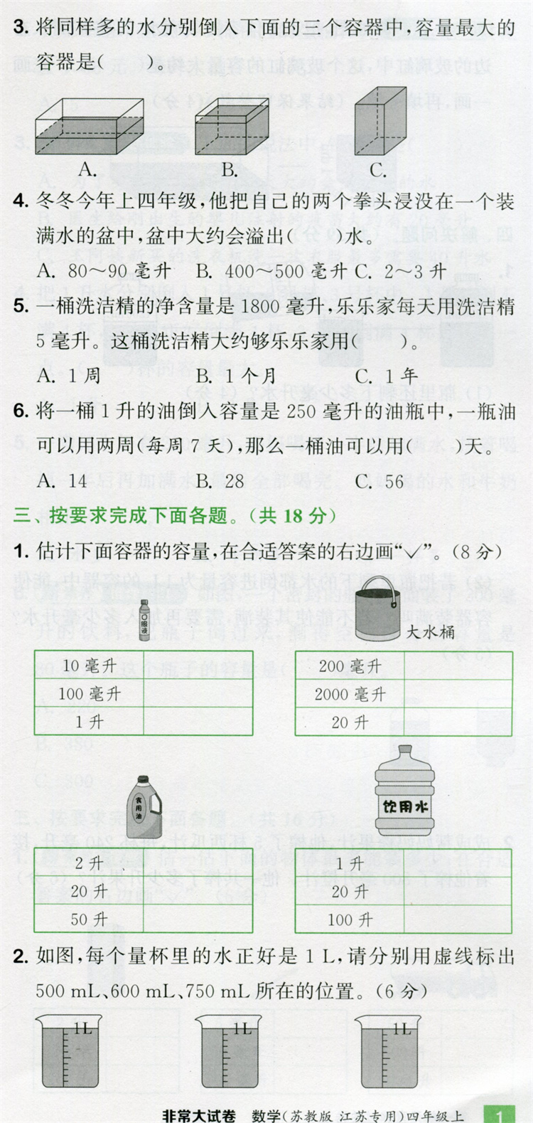 2025秋 非常大试卷 数学 四年级上册 苏教版 小学教辅 测试卷 拔尖试卷 同步训练 4上 含答案讲解视频 通成学典