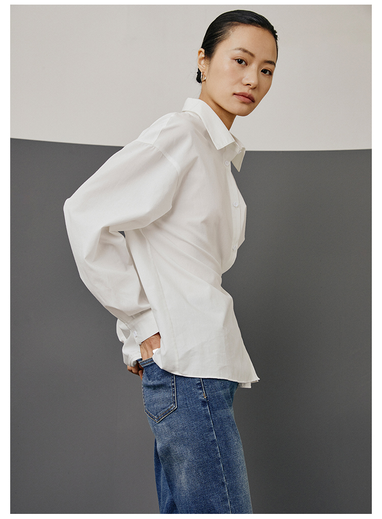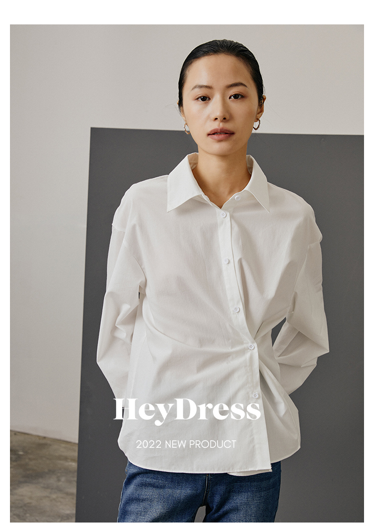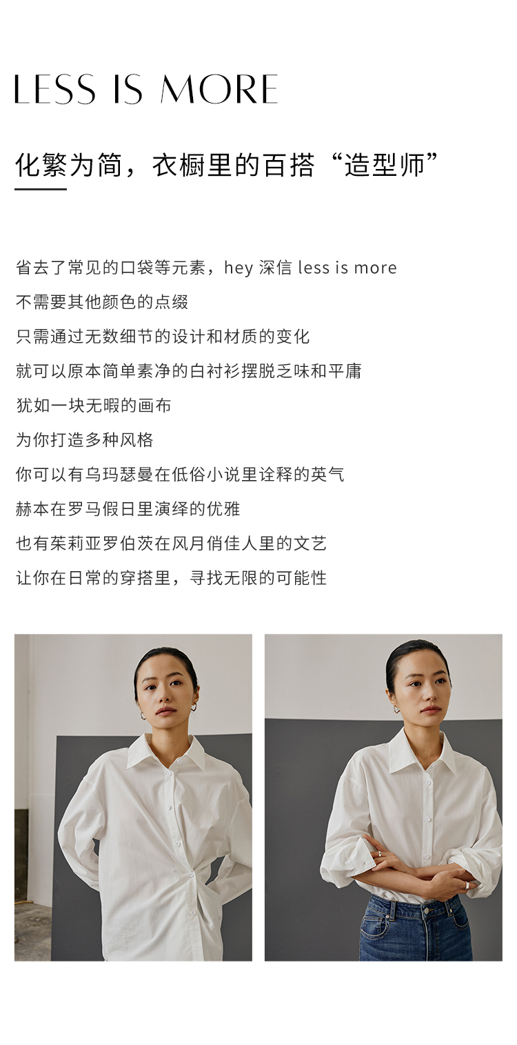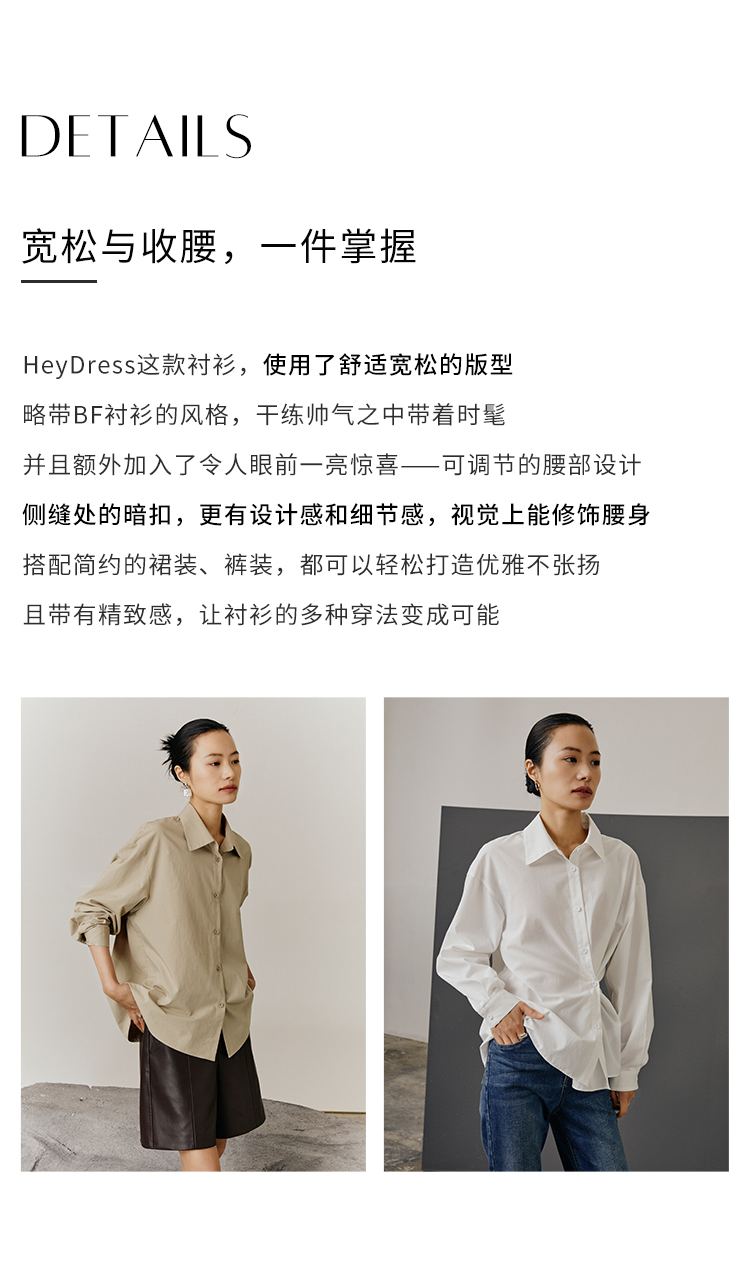 HeyDress收腰设计感白色衬衫女上衣小众宽松长袖衬衣