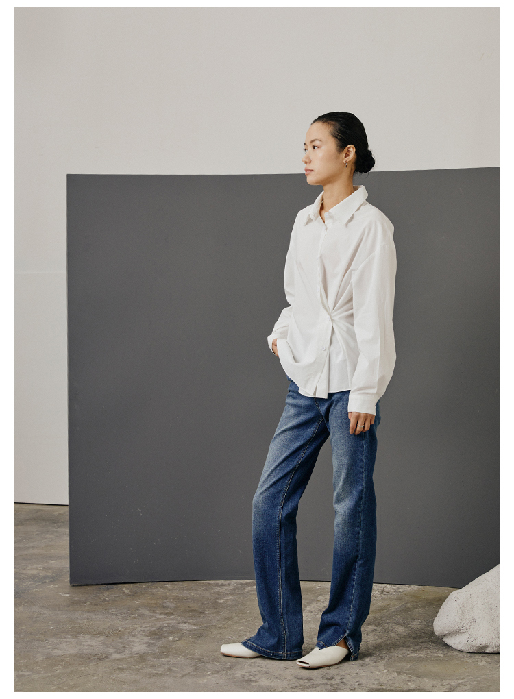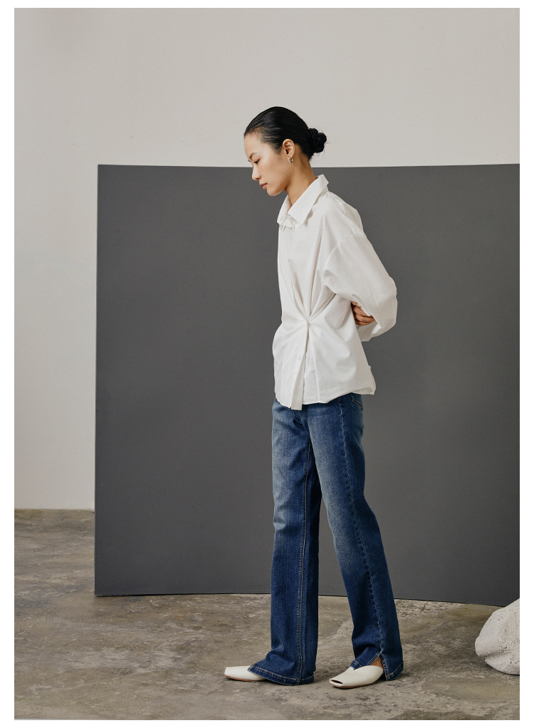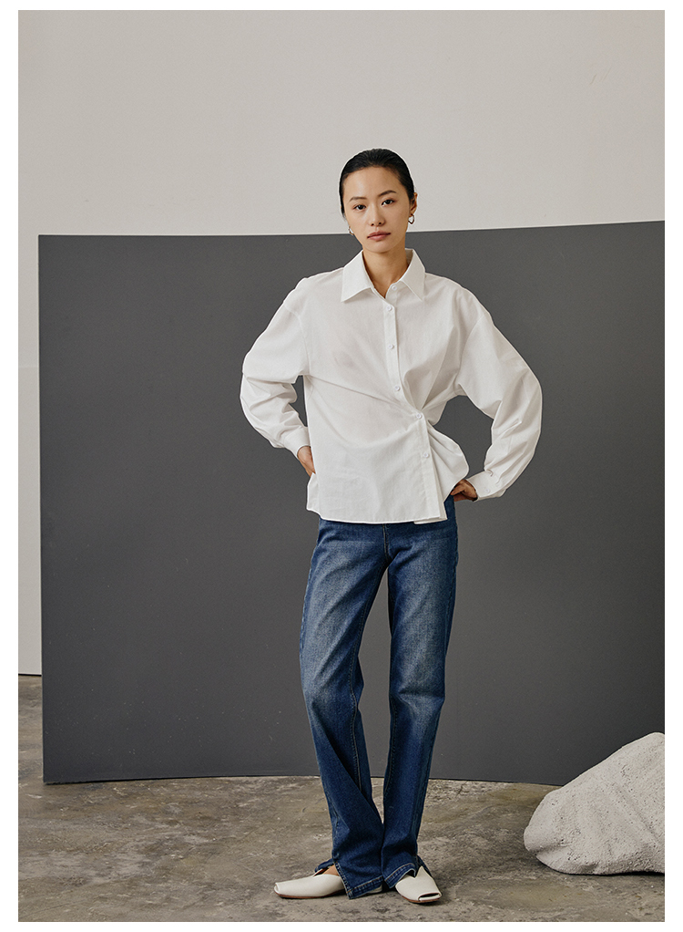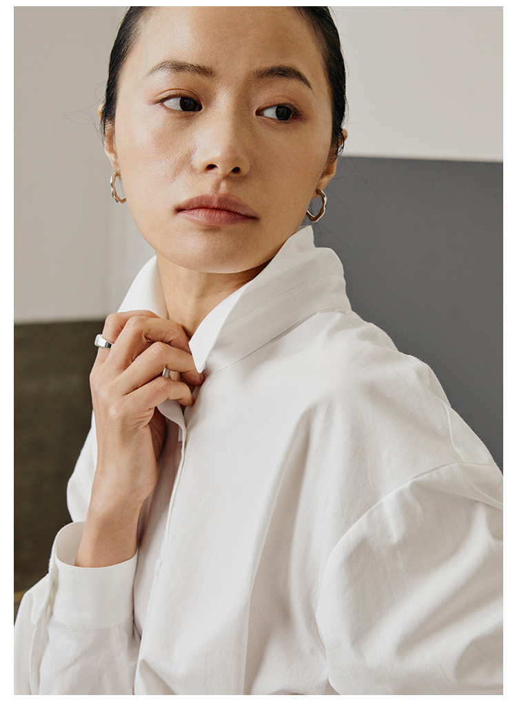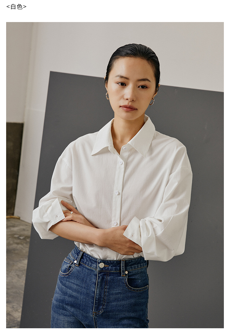 HeyDress收腰设计感白色衬衫女上衣小众宽松长袖衬衣