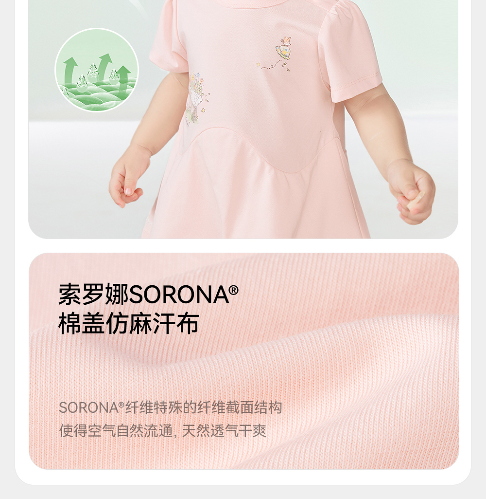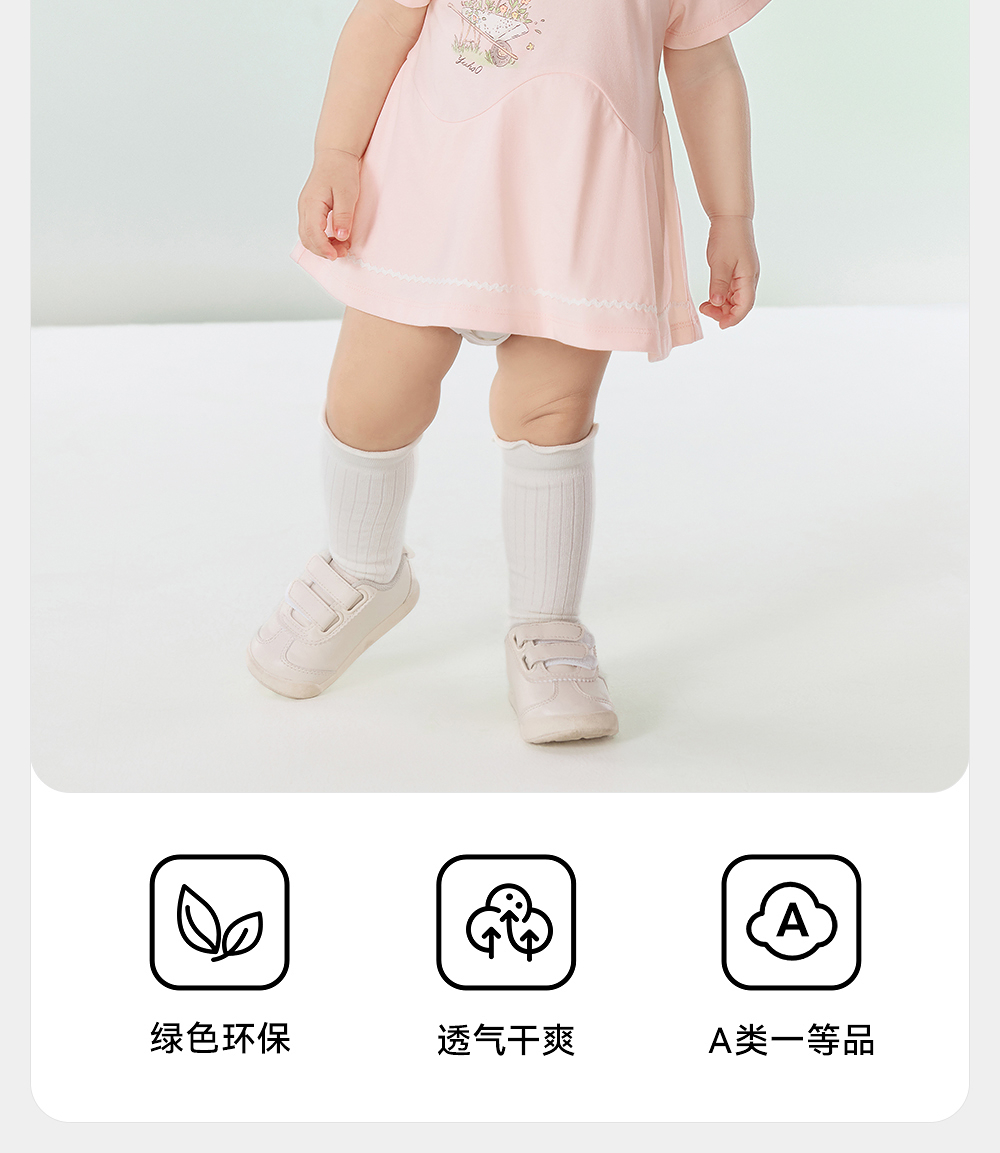 英氏婴儿衣服夏季轻薄透气女童连体衣可爱连衣裙包屁衣2025新款
