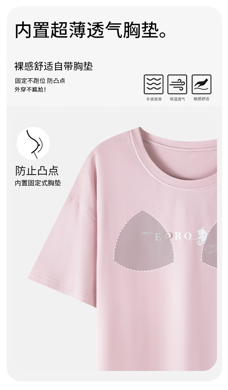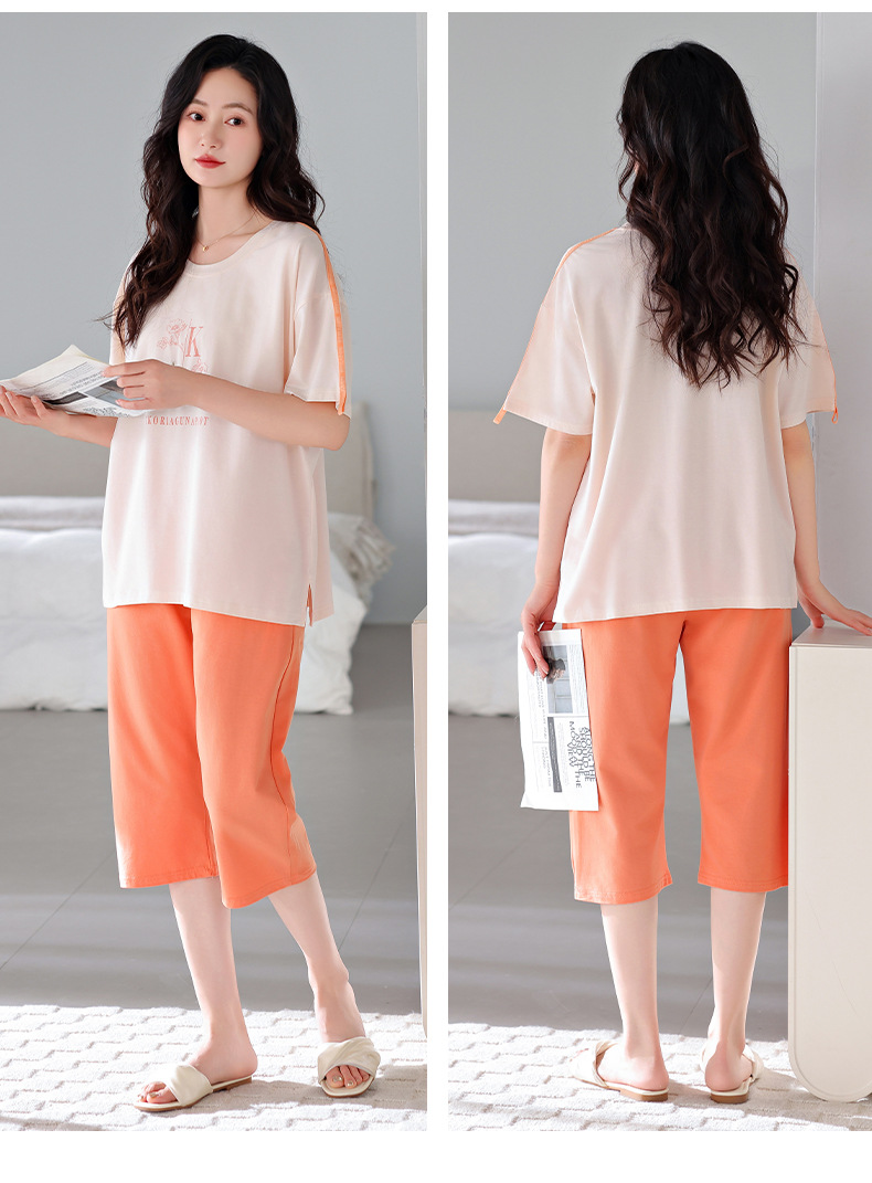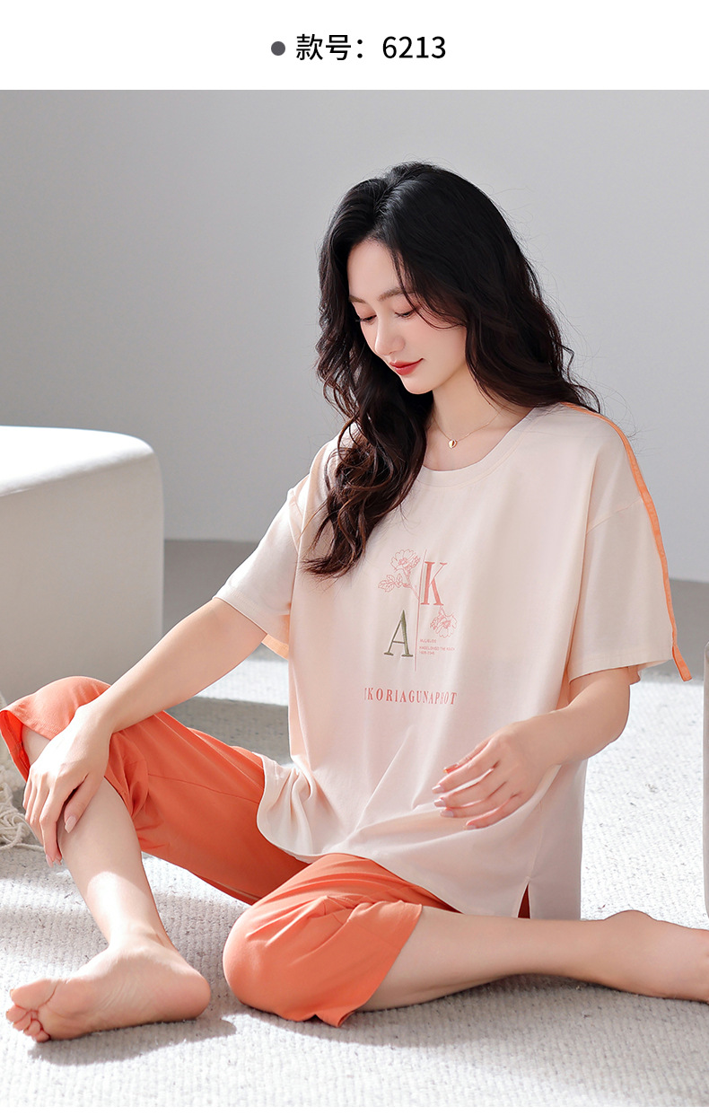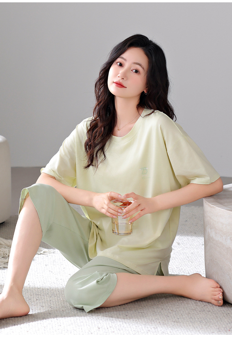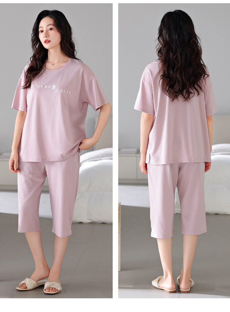 丁摩 睡衣女款夏胸垫薄款短袖七分裤家居服可外穿【棉+莫代尔】睡衣女夏5ZF-6212