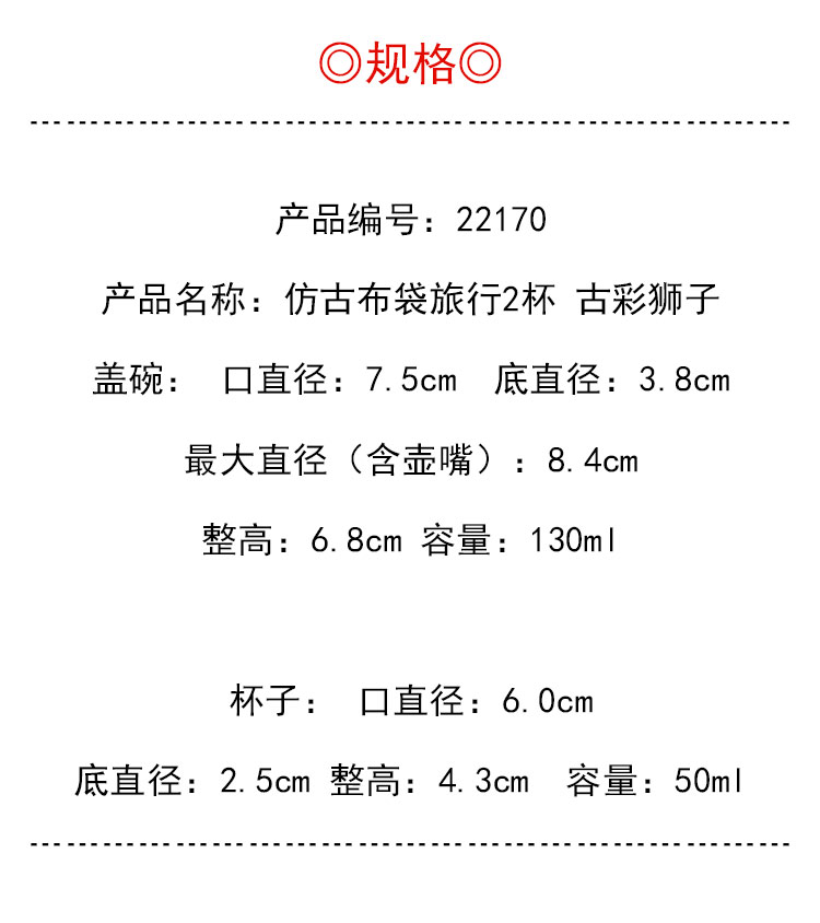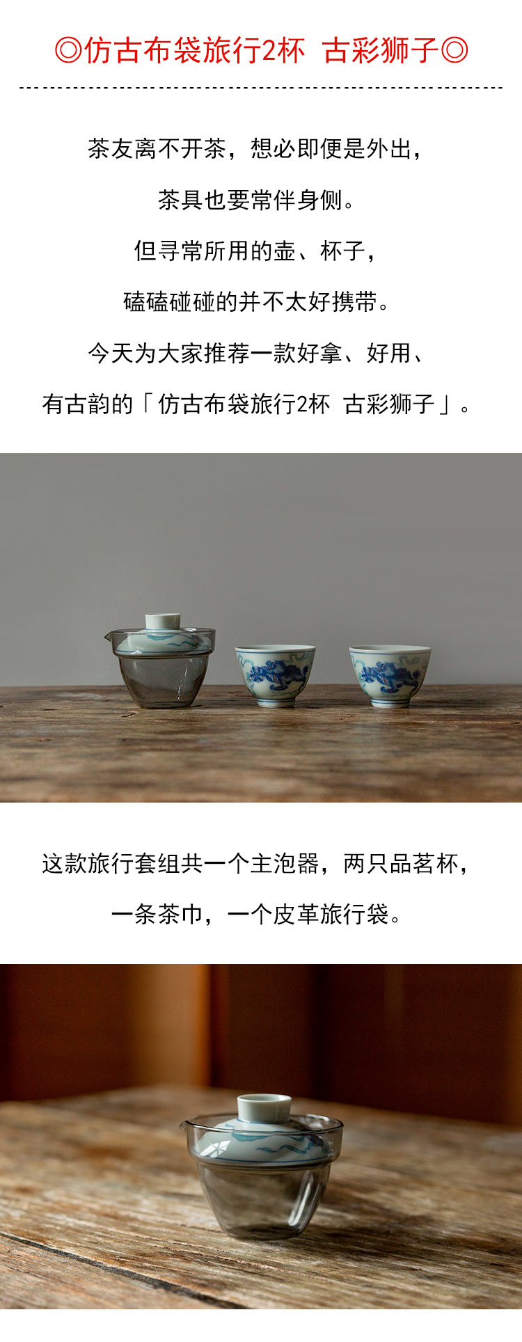 茶香记 仿古布袋旅行2杯 古彩狮子 携带方便 不烫手 古韵雅致