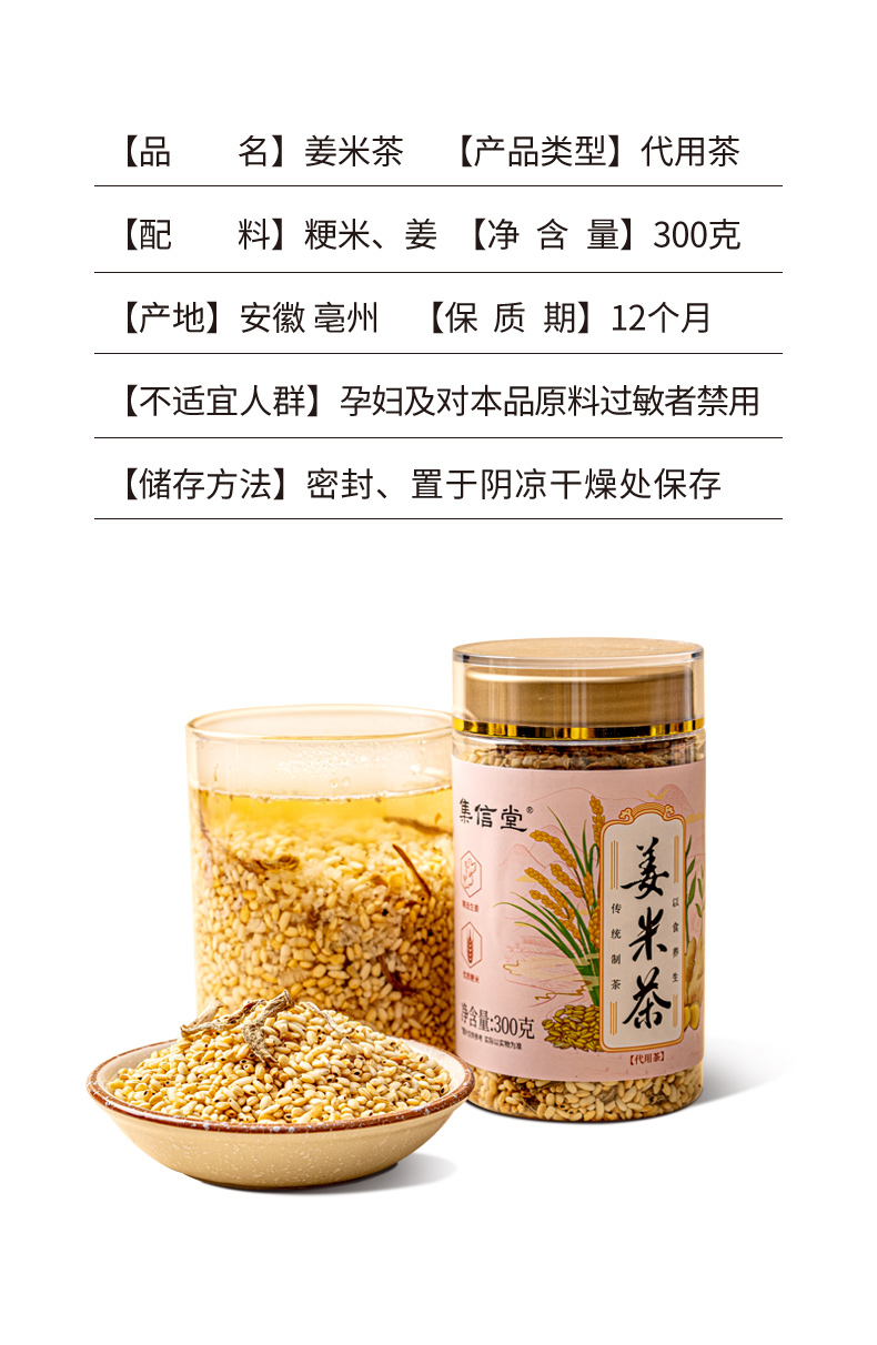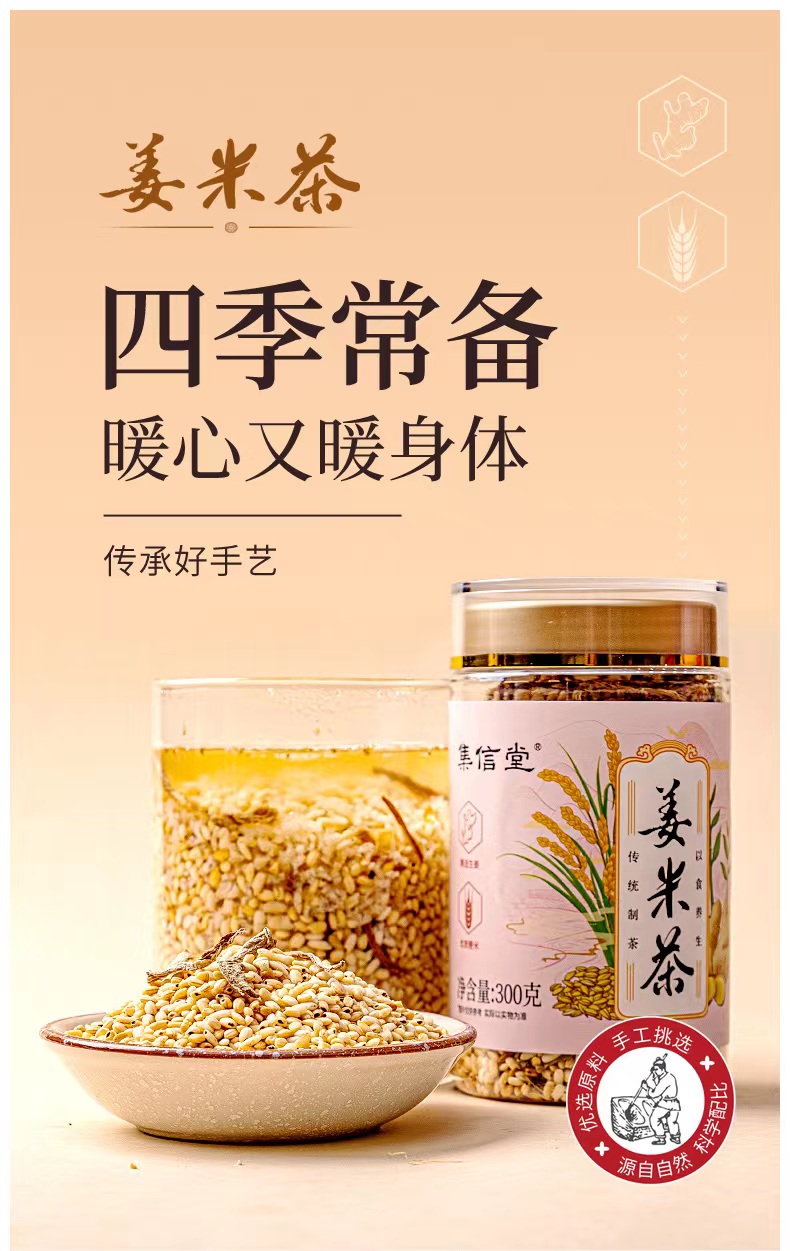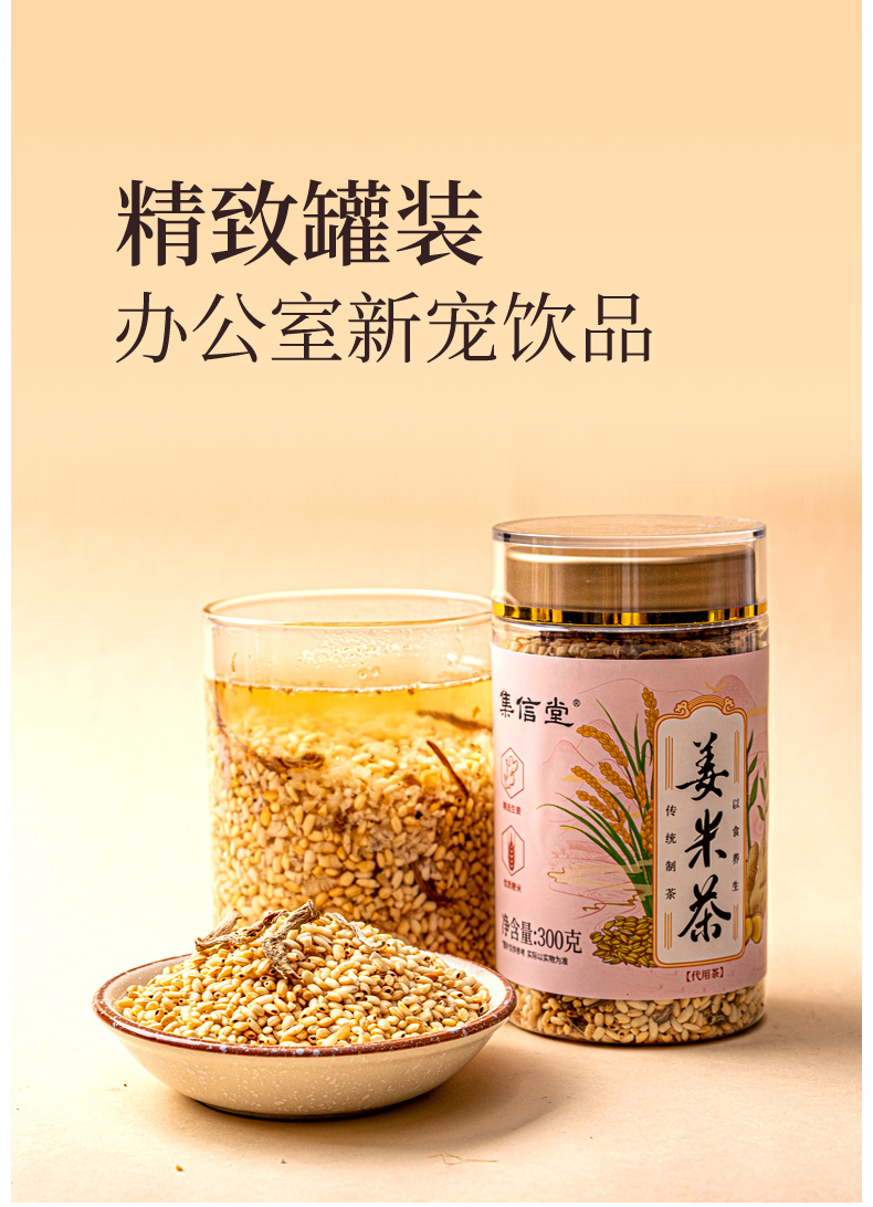 VIP专享| 集信堂姜米茶 手工炒制 浓郁米香 回味甘甜 暖心常备 300g/罐