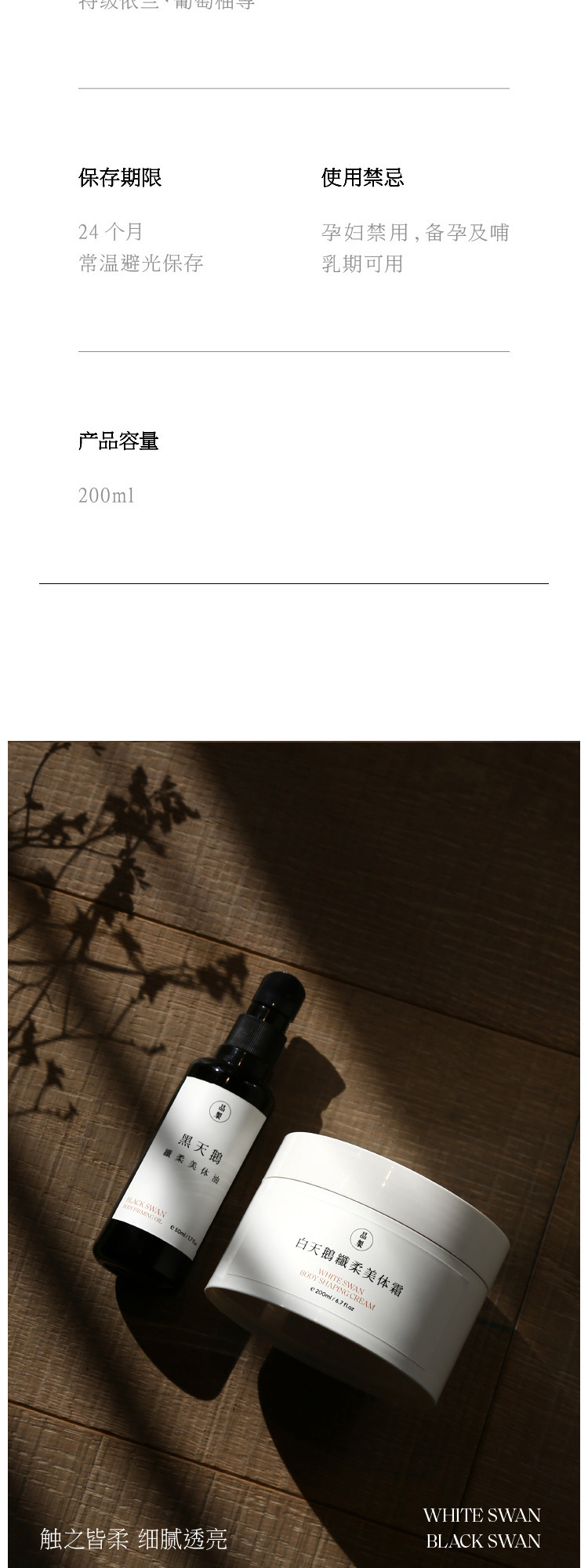 晶製黑白天鹅身体养护系列50ml200ml植物身体乳身体油美体油