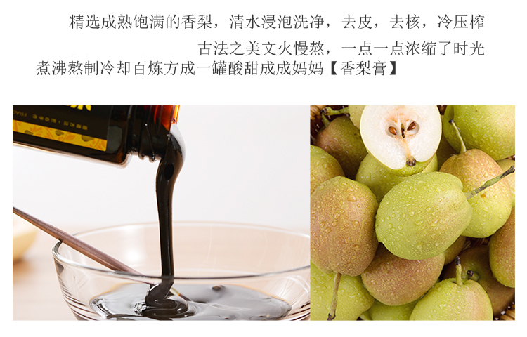 【产品亮点】古方熬制、九炼九滤、地道选材、品质保证、原汁原味、拒绝添加、良心品质、梨香甘润