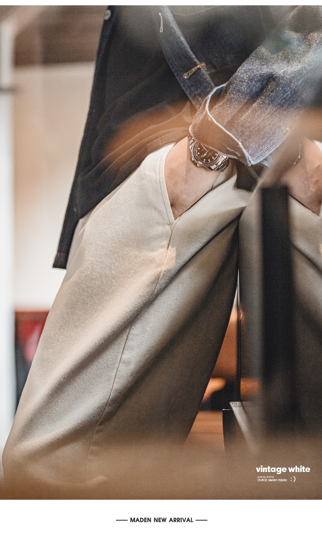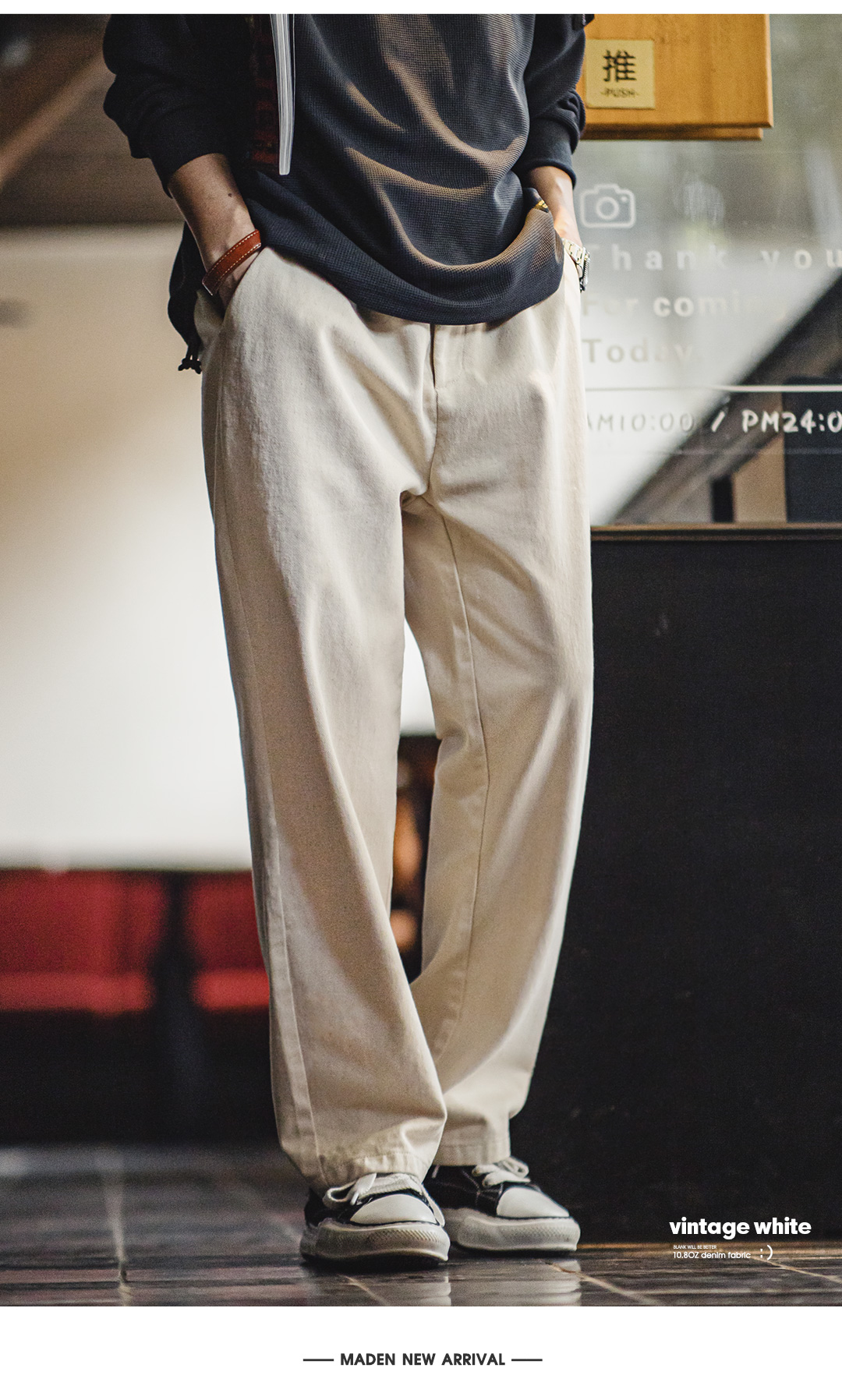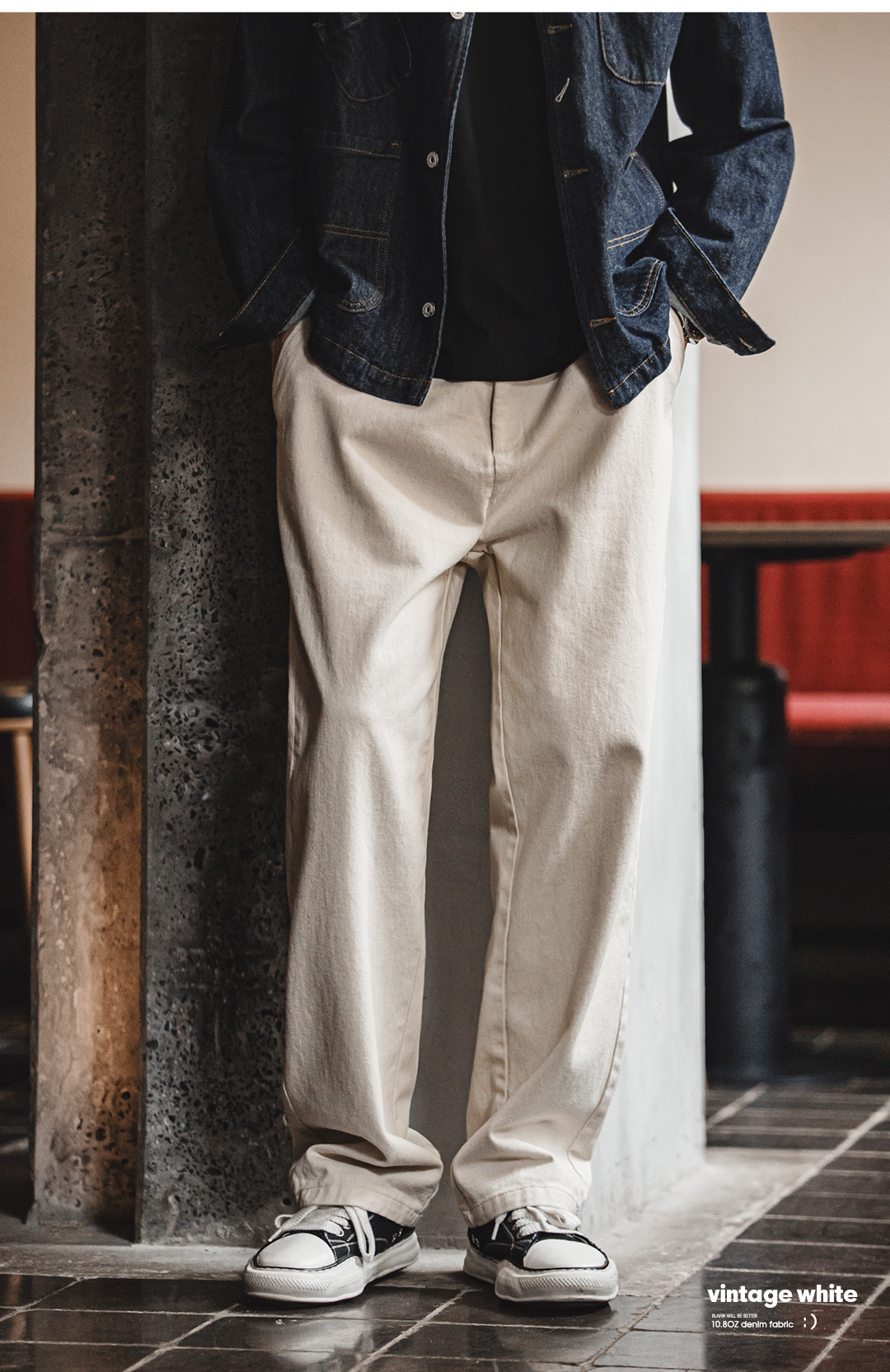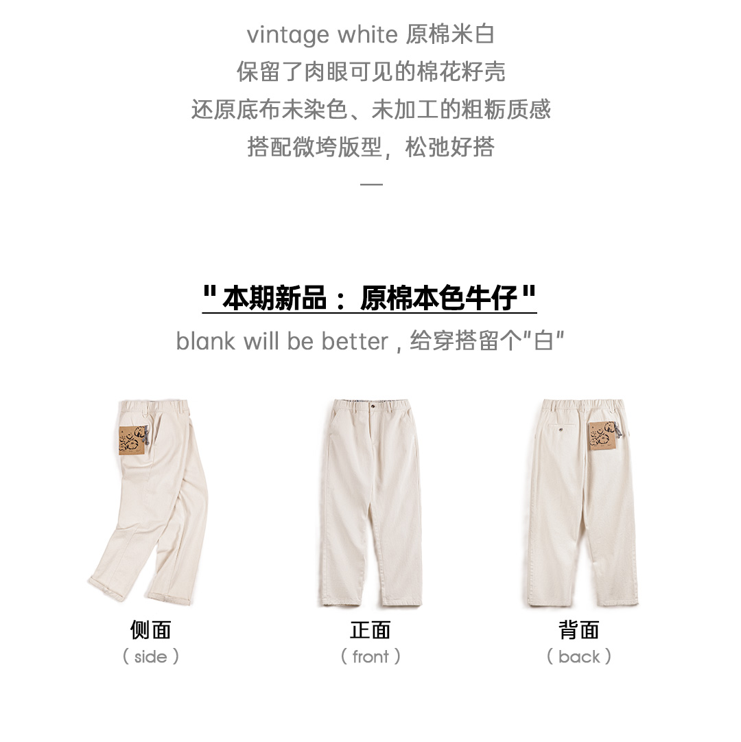马登工装美式复古米白色牛仔裤棉籽壳cleanfit宽松直筒休闲裤男春