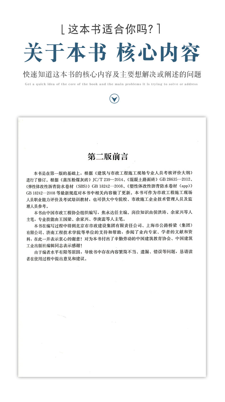 本书可作为市政工程施工现场人员职业能力评价及考试培训教材,也可供大中专院校、市政施工企业技术管理人员及监理人员参考。