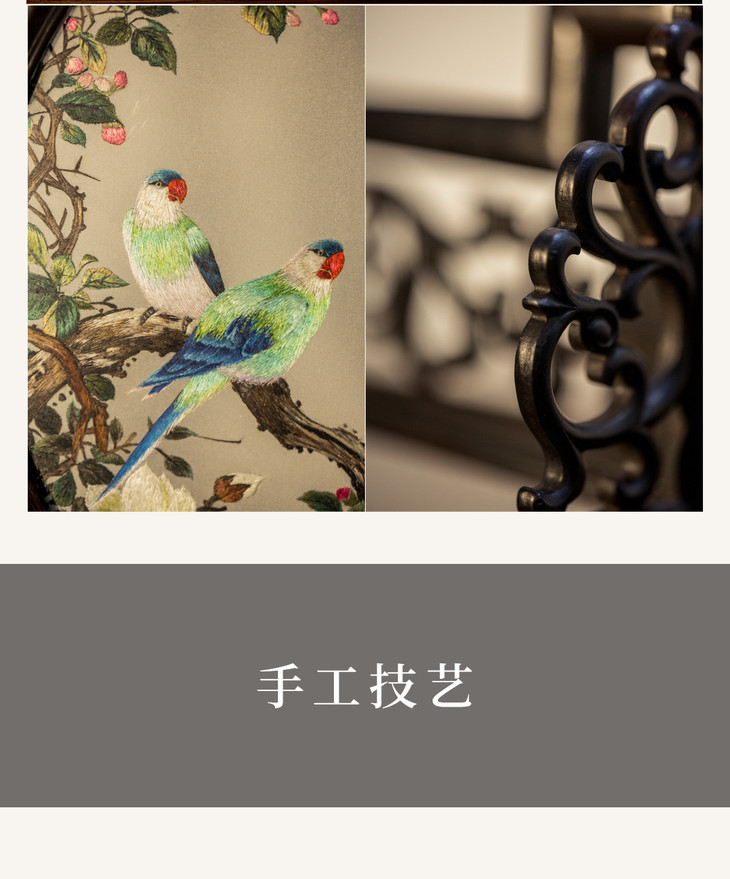 「苏绣」玉兰鹦鹉图