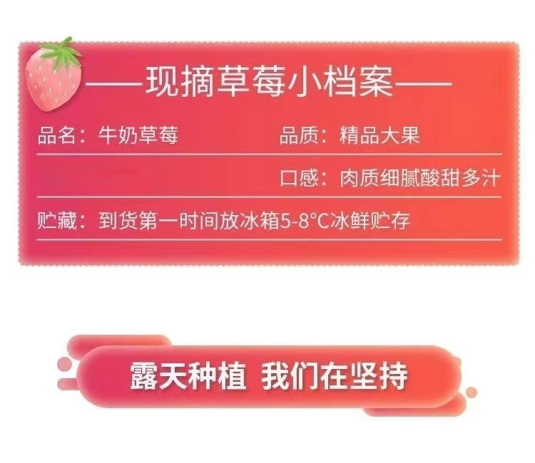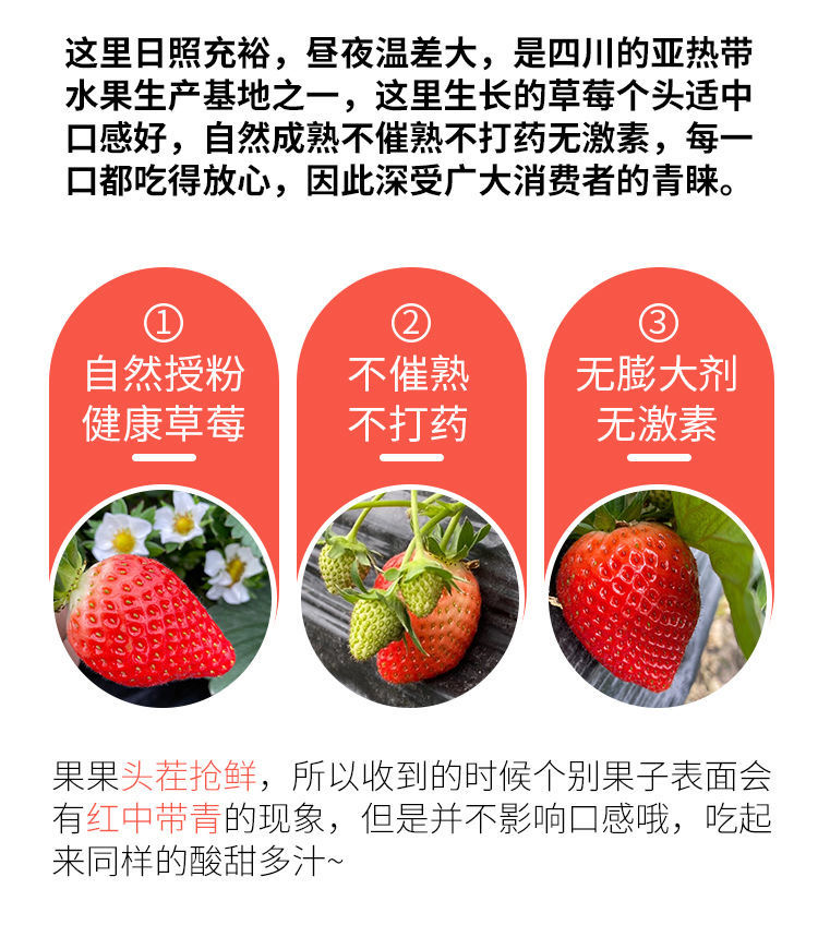 温馨小提示:草莓的话收到请尽快食用,不能放太久;坏果3枚以内不做赔付,超过3枚以上按比例赔付