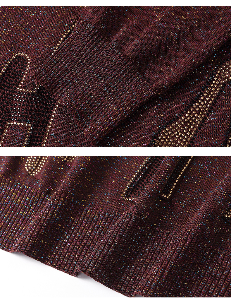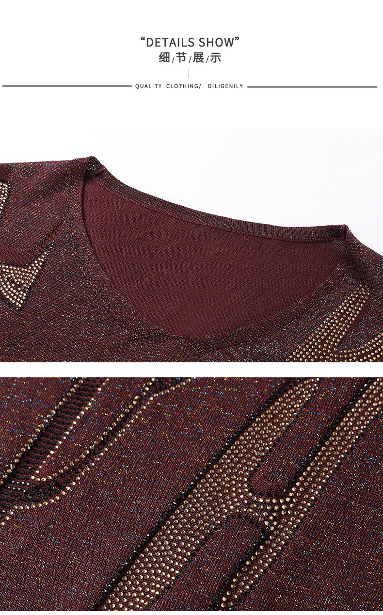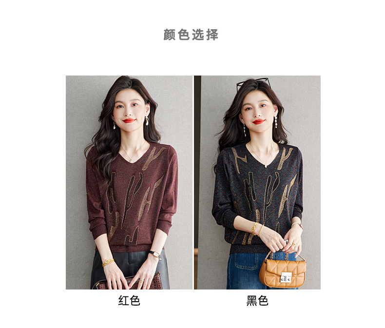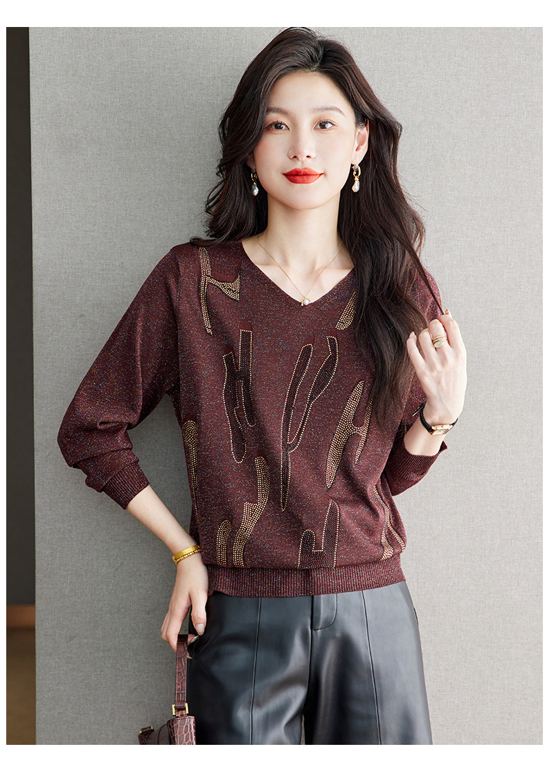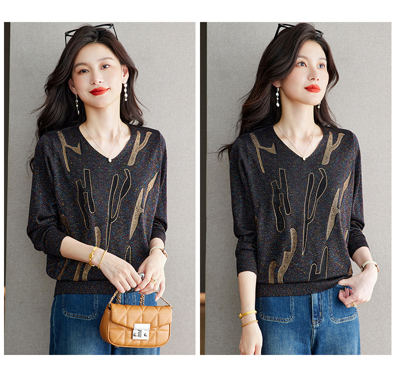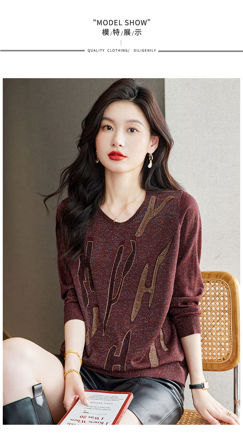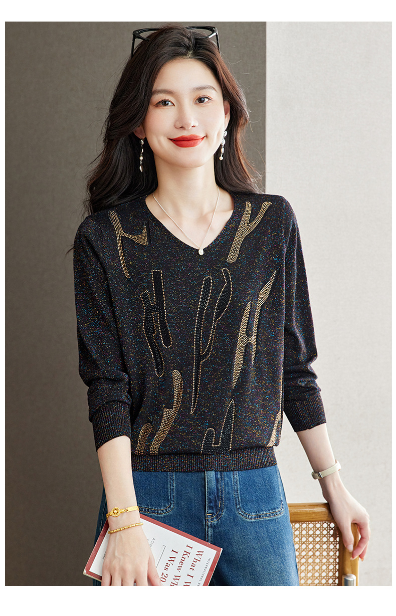 M2747-158高级感V领毛衣女秋冬打底衫2025宽松休闲针织衫内搭别致烫钻上衣