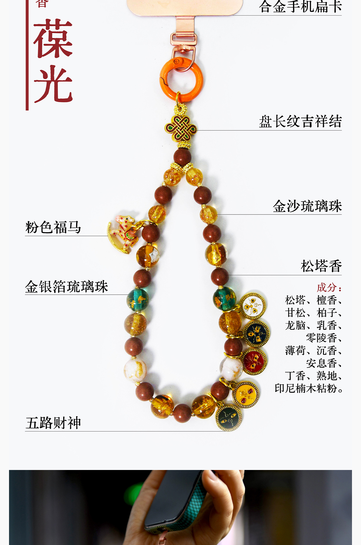 正安 《五路金鞍财香》手机链系列(2026丙午年财碌通、福运通、百事通)