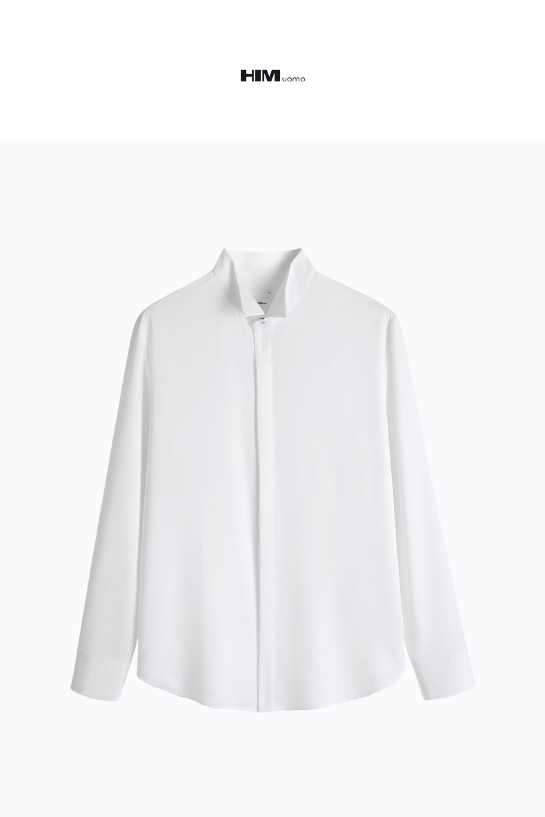 HIM漢崇 舒适简约暗门襟衬衫时尚优雅宴会婚礼长袖衬衣 2025秋季