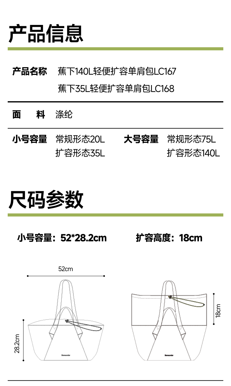 【25年新品】蕉下短途旅行包袋女LC167LC168轻便大容量登机包托特包待产单肩行李包