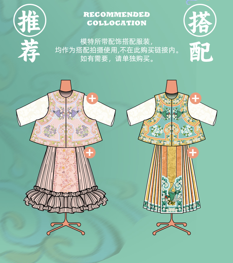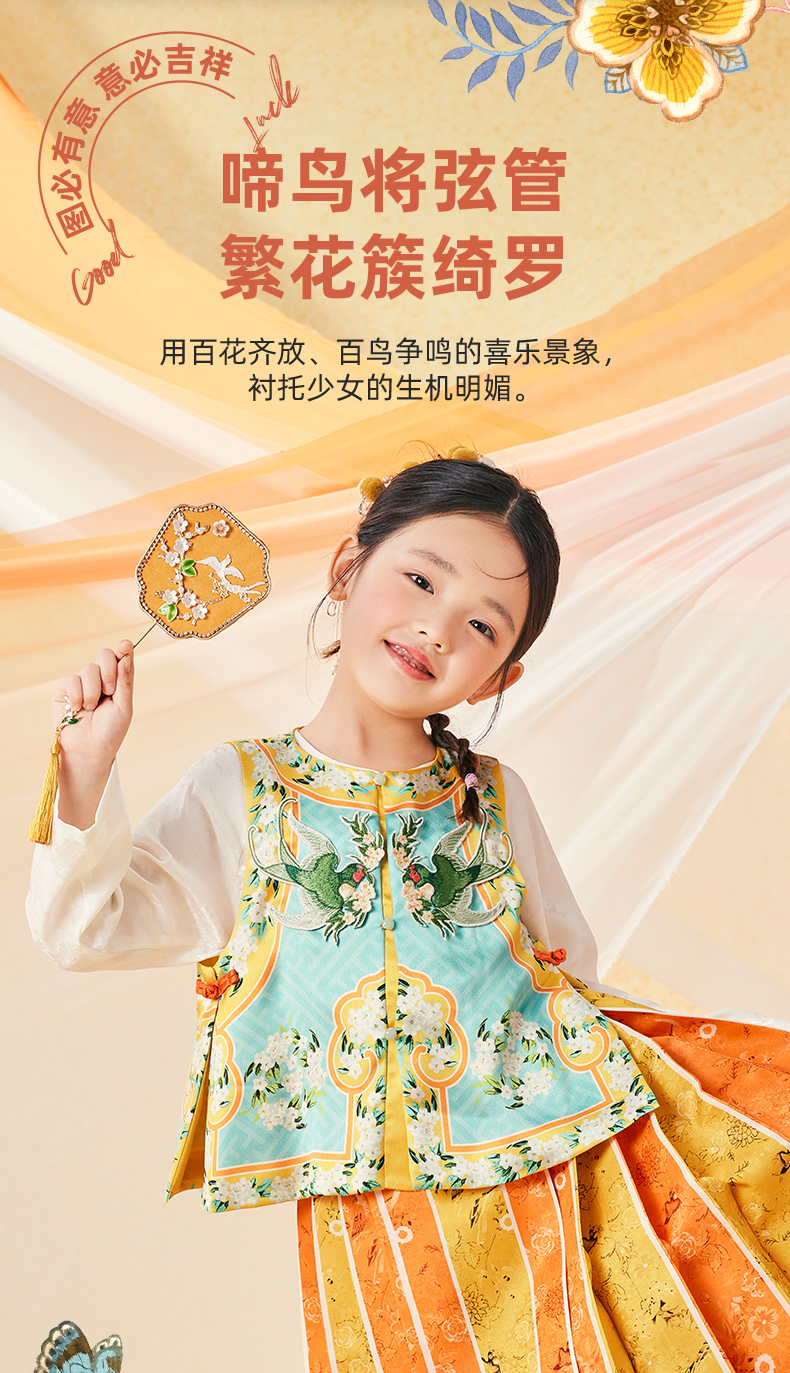 【年衣】童装女童旗袍春秋新款新中式国风女孩言笑燕燕中式马甲+中式甜心上衣+言笑燕燕马面裙