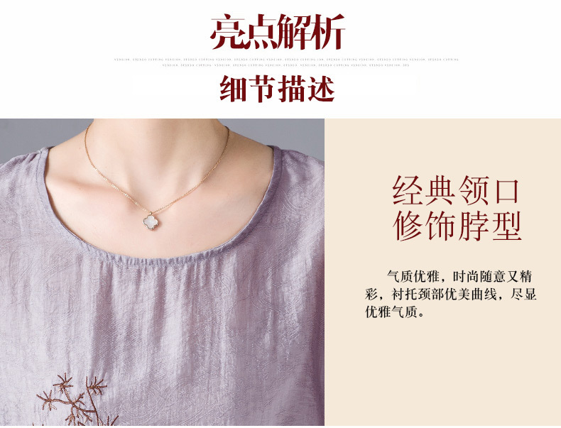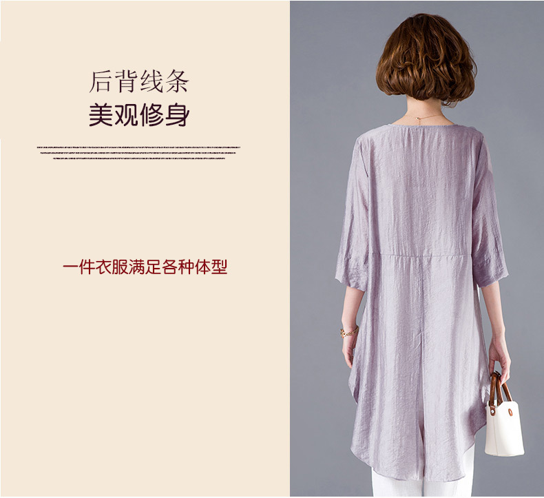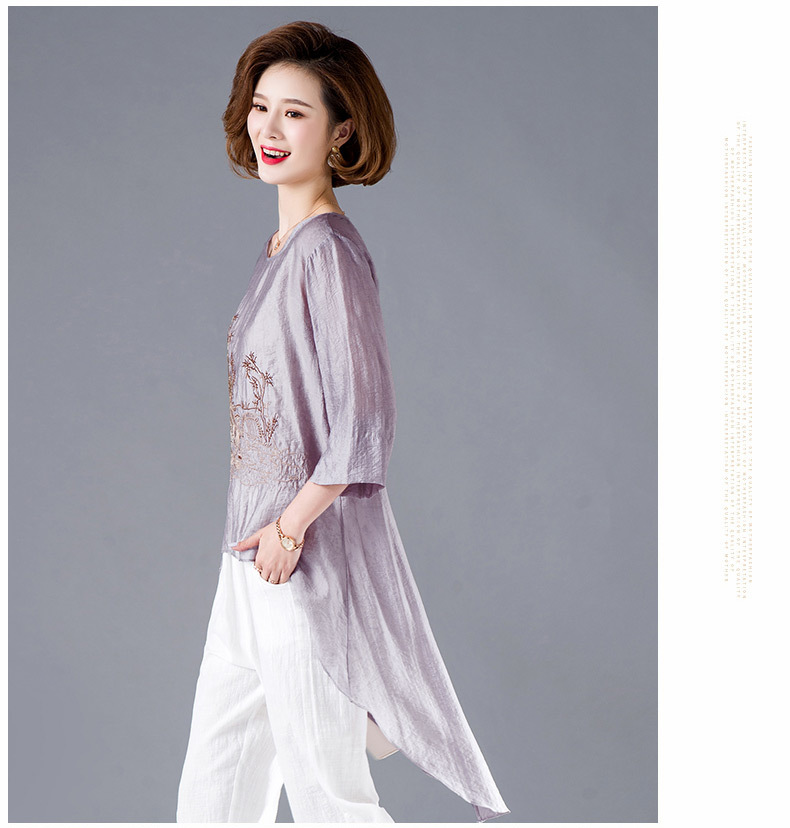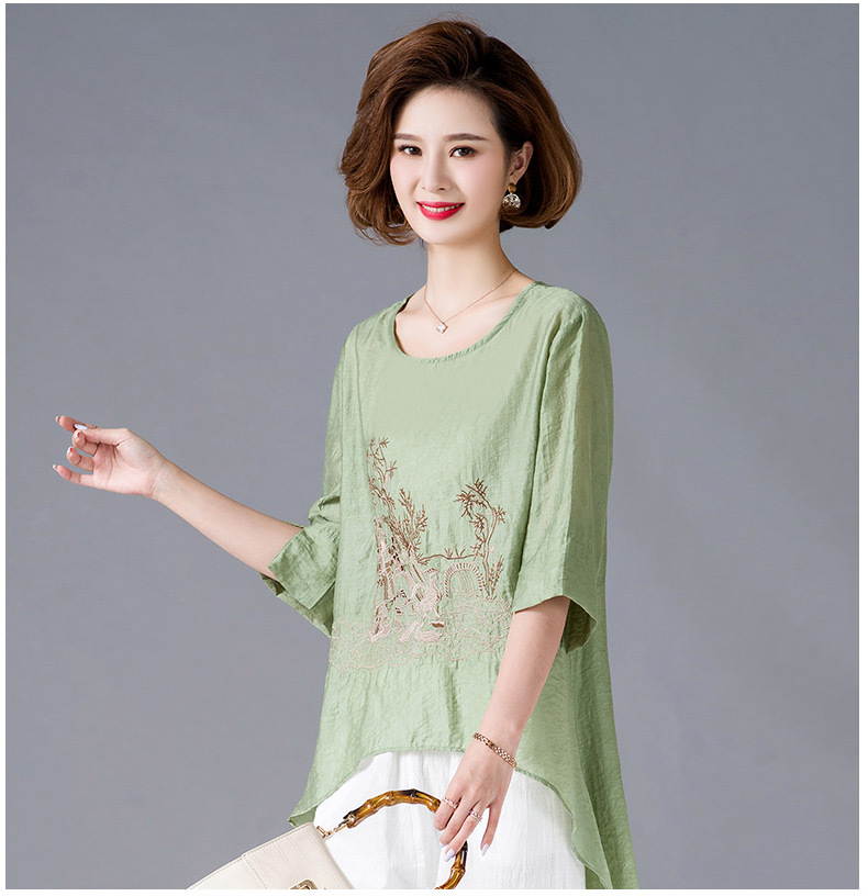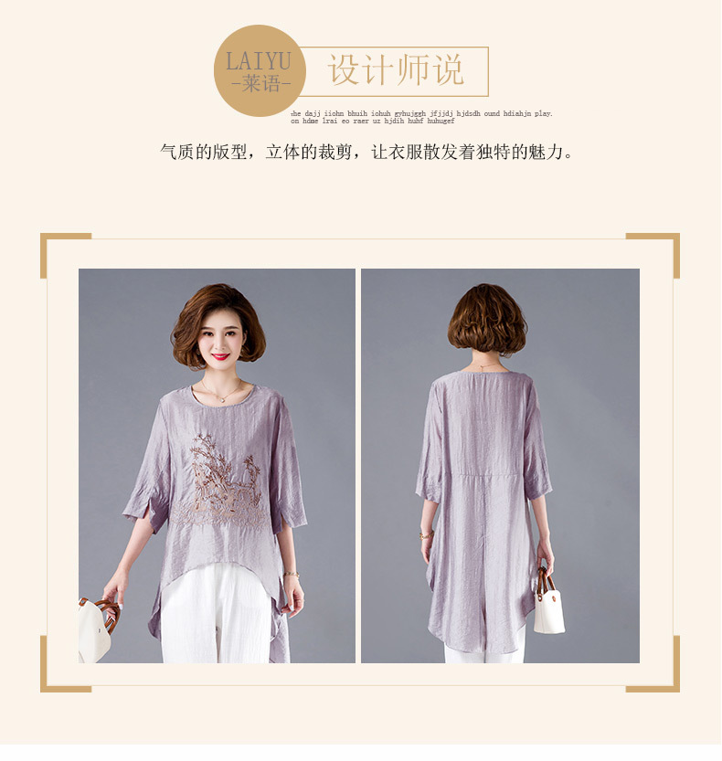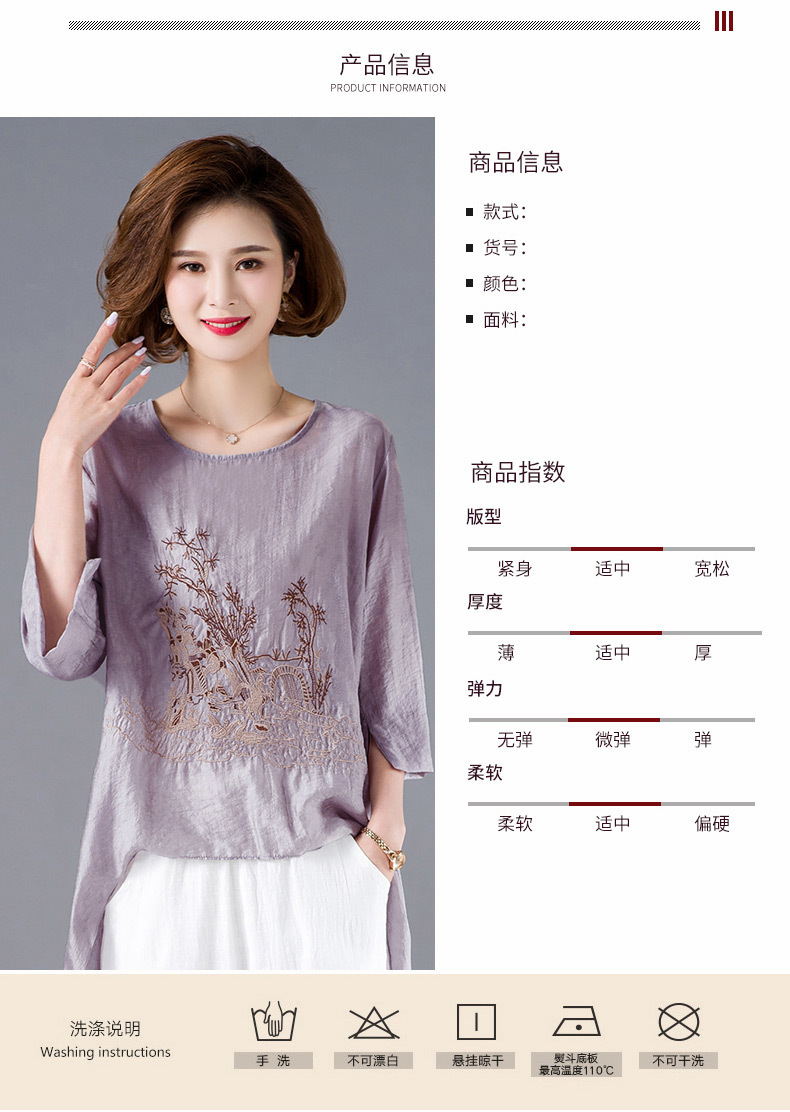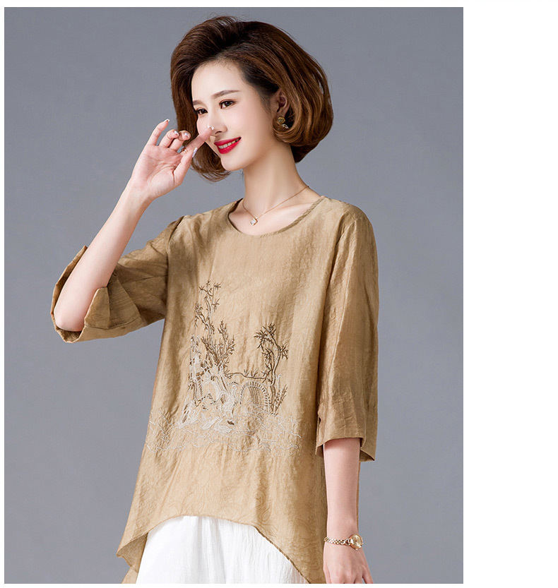 MQ-CF1981夏装中长款短袖纯苎麻圆领绣花上衣YY