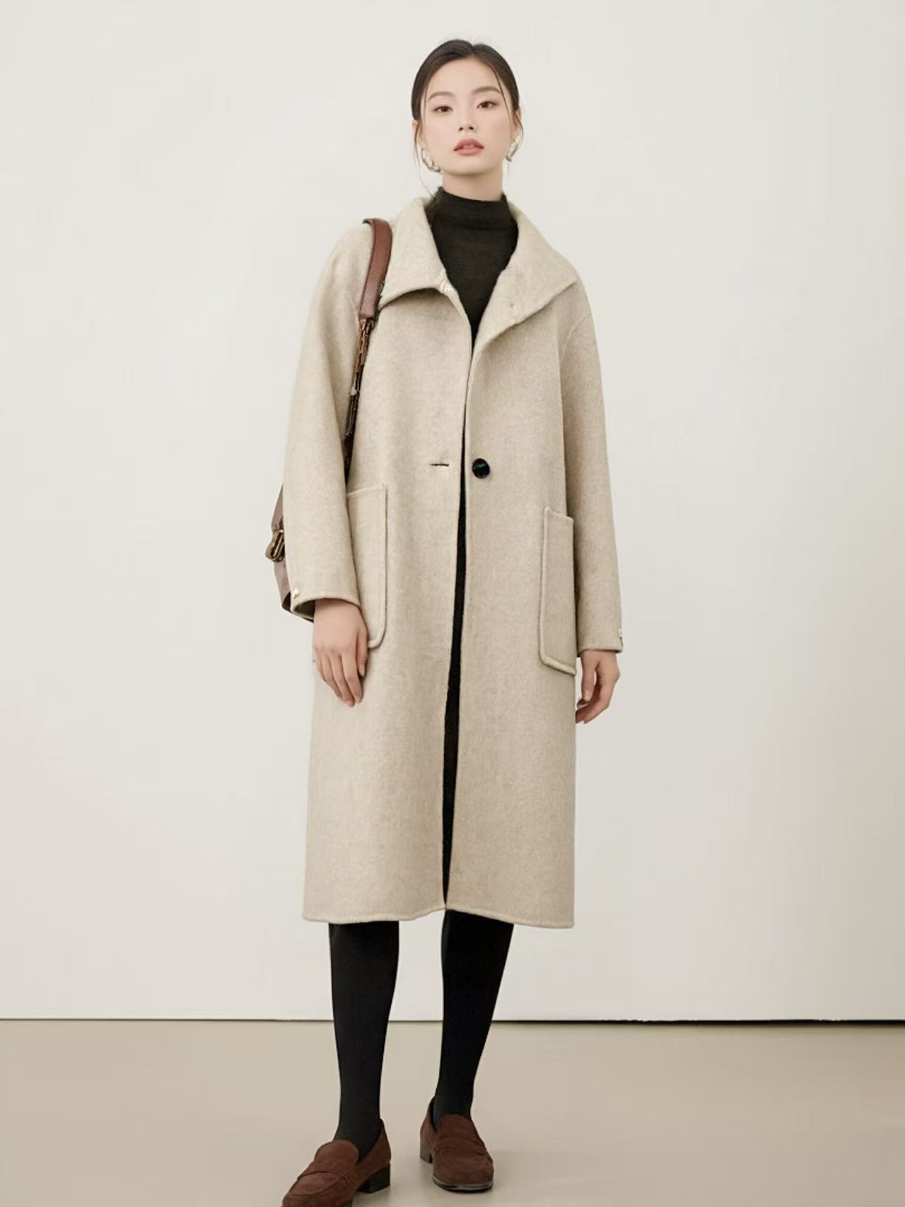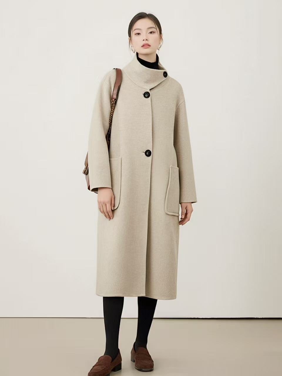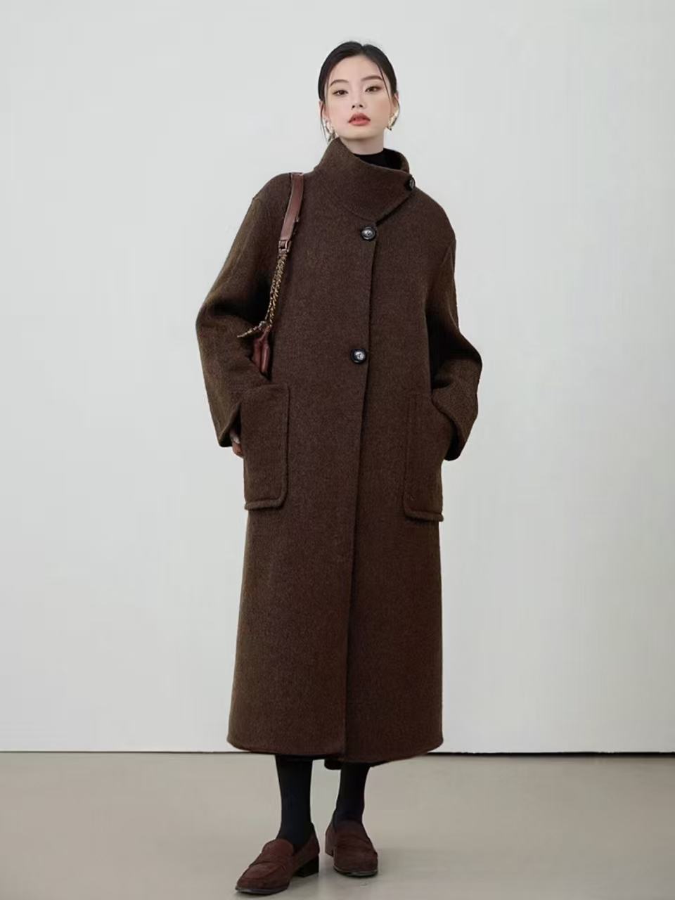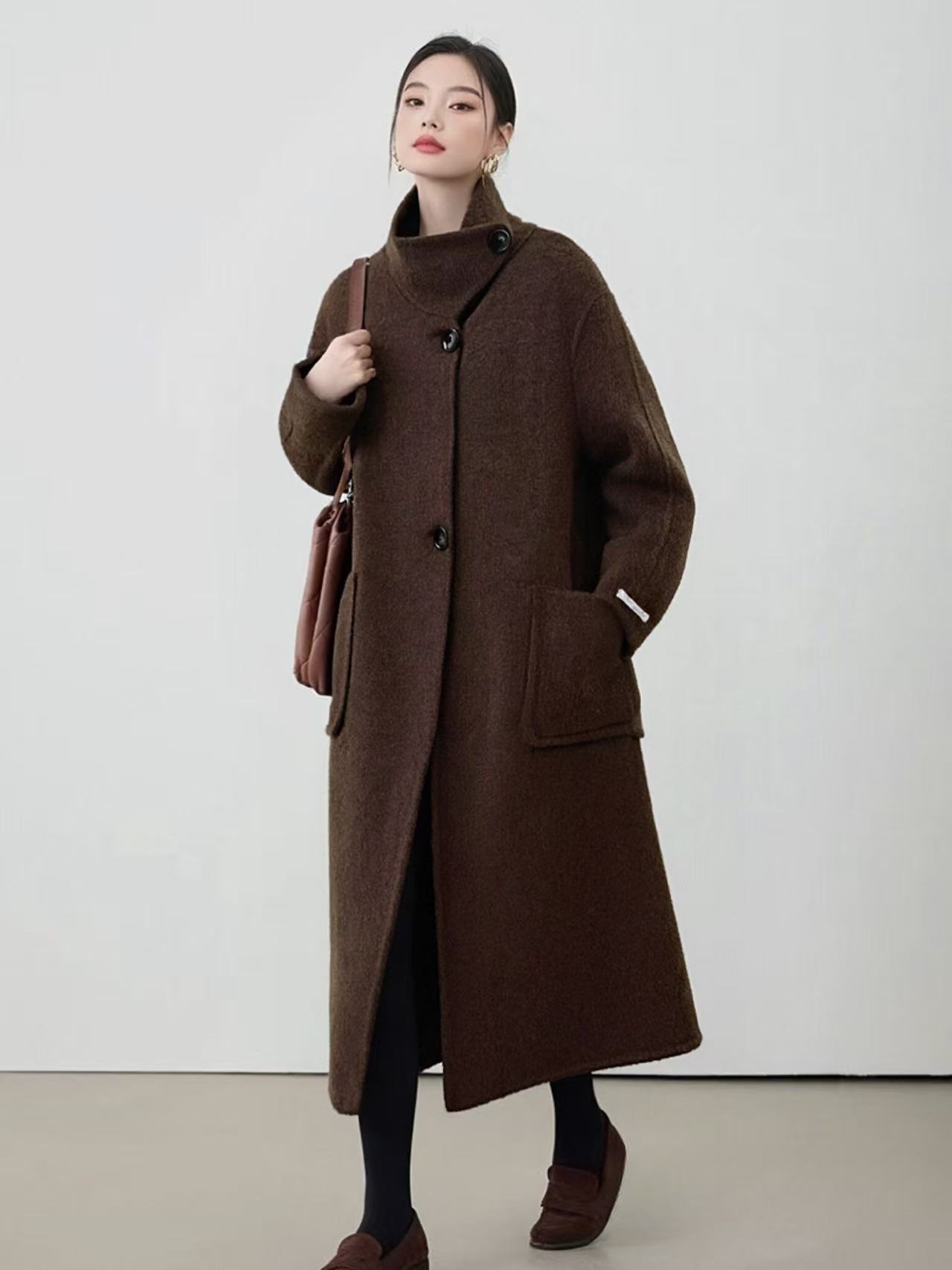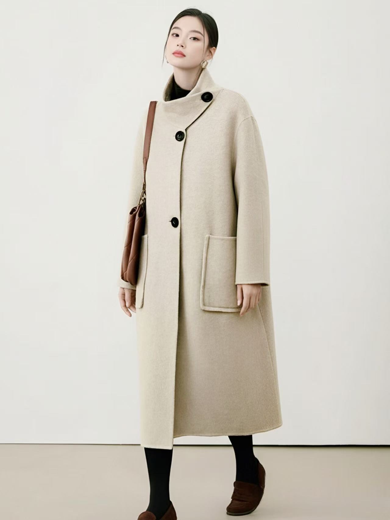【轻奢双面尼】2529(100%羊毛)韩系赫本风斜扣双面尼大衣外套-喜出