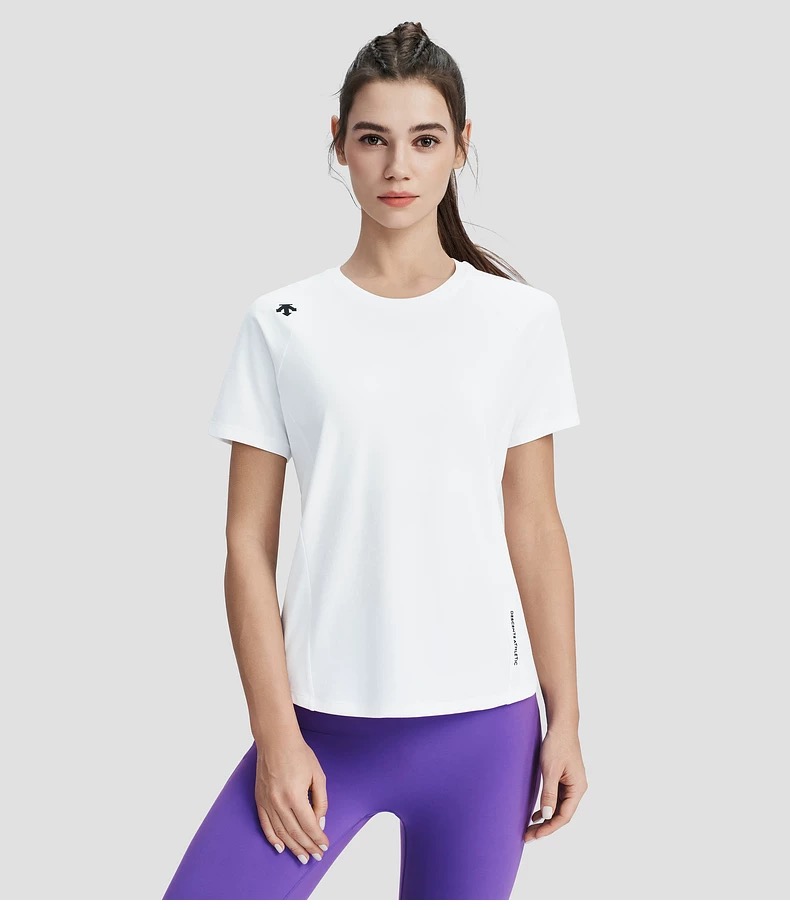 85 货号070512085 bk 箭头女士修身正肩T恤ESSENTIAL系列迪桑特经典TOUGH面料制成的短袖针织衫,面料 轻盈柔韧且触感柔软,拥有优于棉质的舒适穿着体感。右肩经典硅胶铭牌装饰,运动或日常生活均可穿着。款式简约百搭,领口松紧针织织带