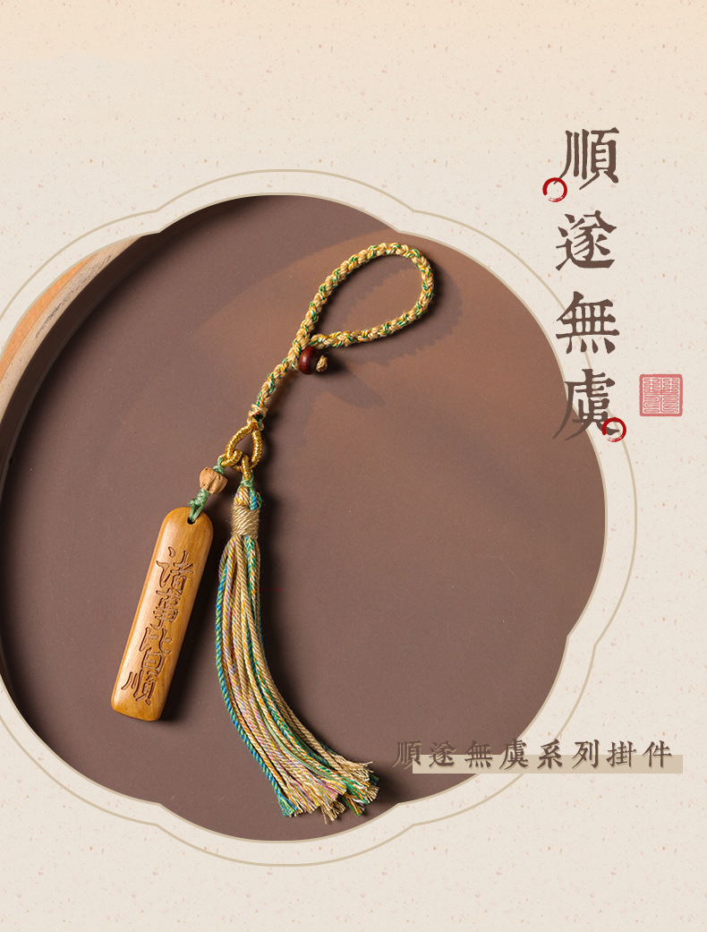 太清木雕诸事皆顺平安喜乐黑柿木钥匙扣挂饰